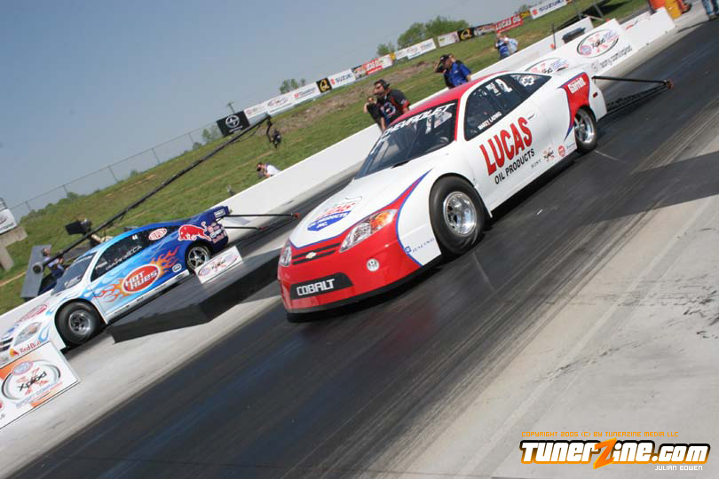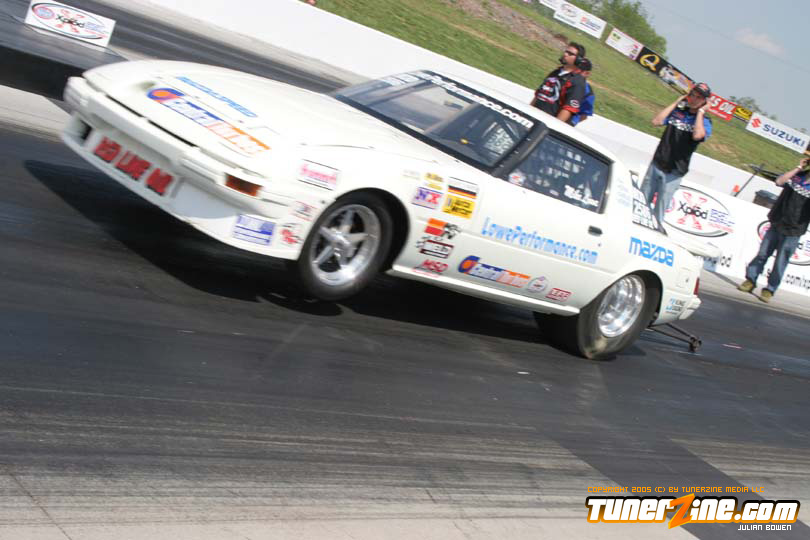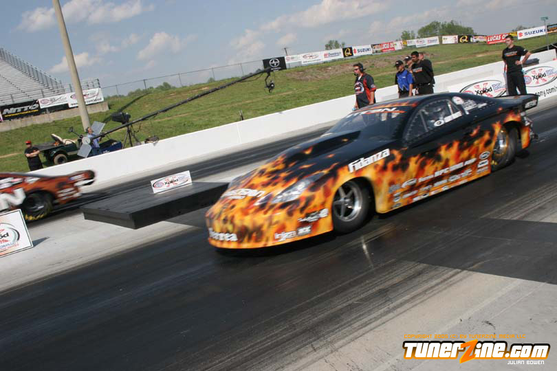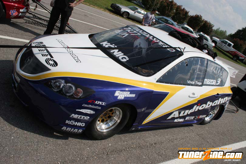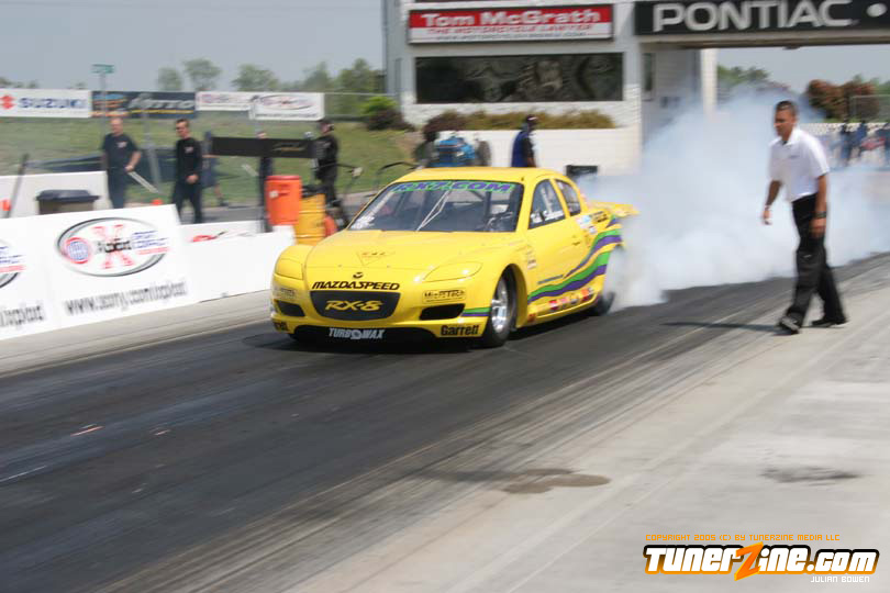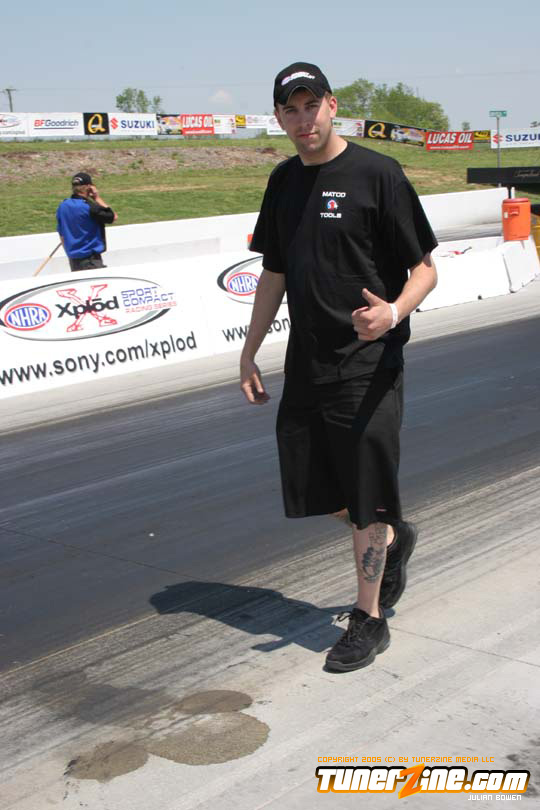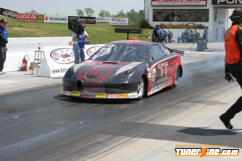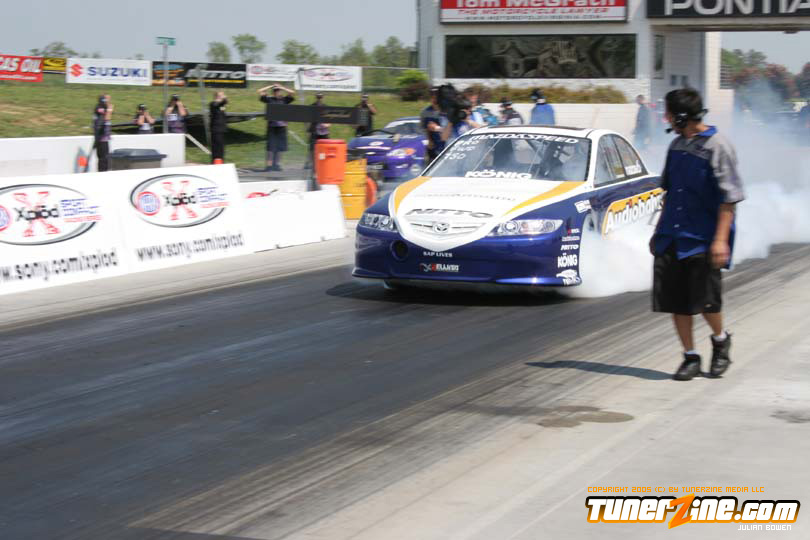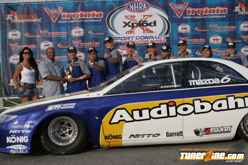 Ed Bergenholtz Bergenholtz in his Audiobahn Mazda earned his second win of the year by defeating Marty Ladwig. His holeshot start was all he needed to win the race. Ladwig, driving his Chevy Cobalt, tried reeling Bergenholtz in, but Bergenholtz’s speed of 191.70 second was too much to overcome. He finished with a time of 8.04. Ladwig’s time was 7.88 at a speed of 182.70 mph.