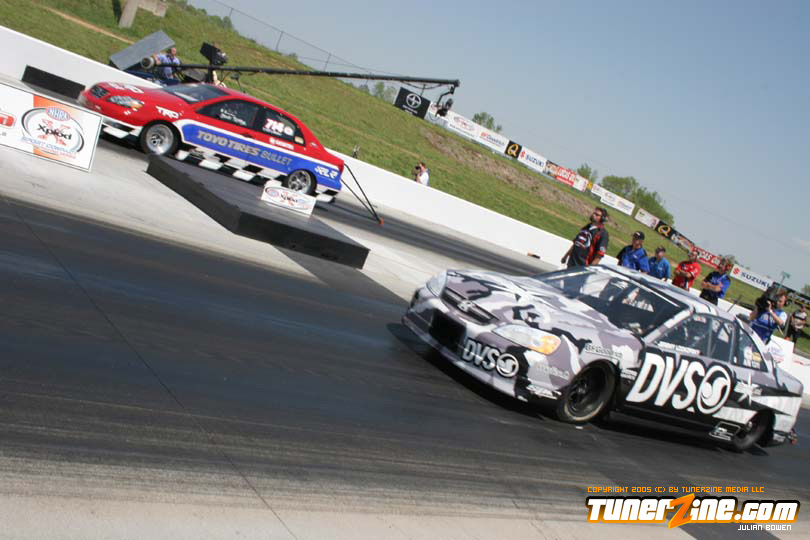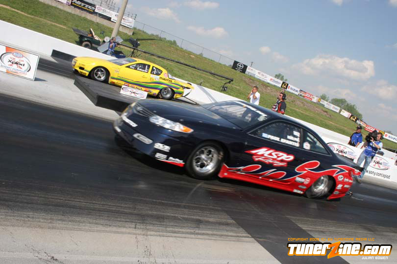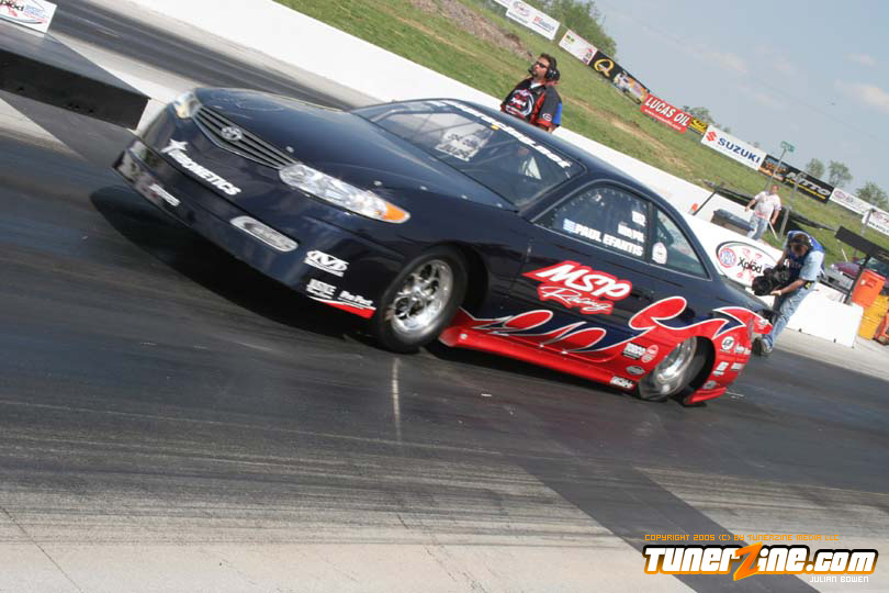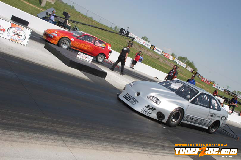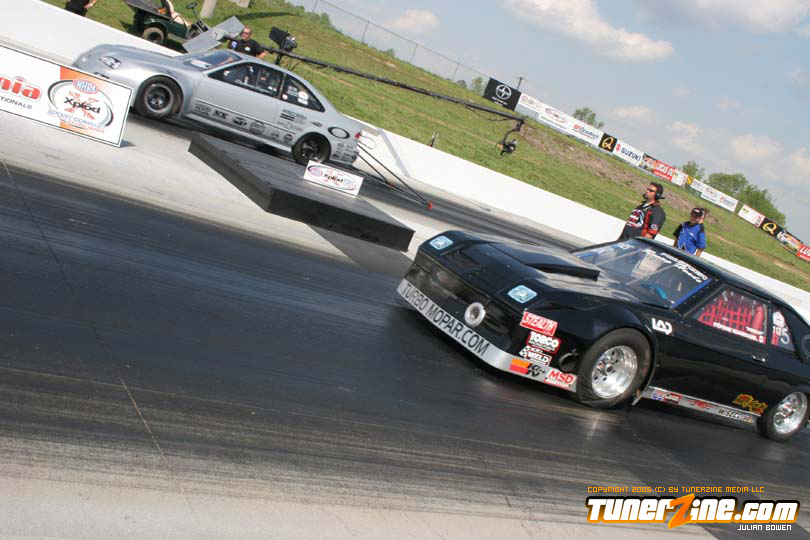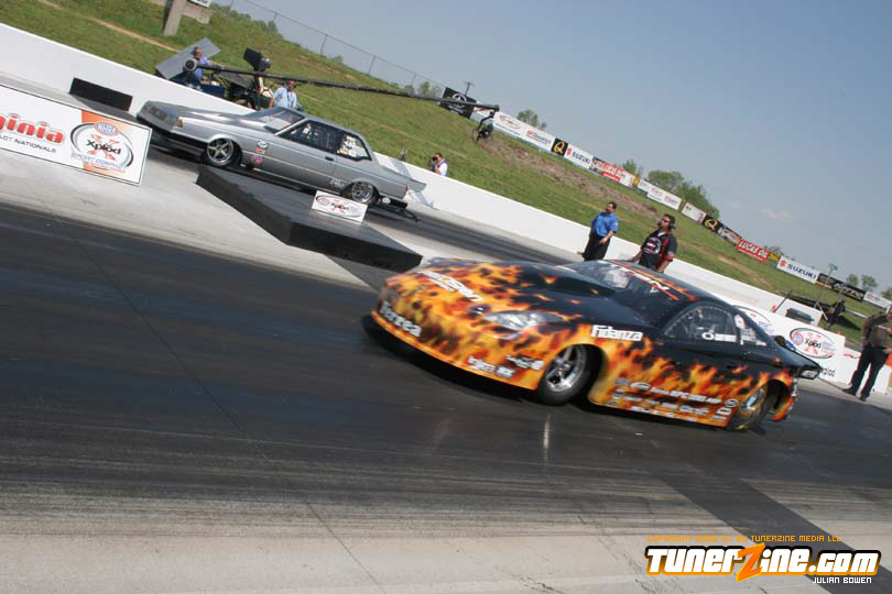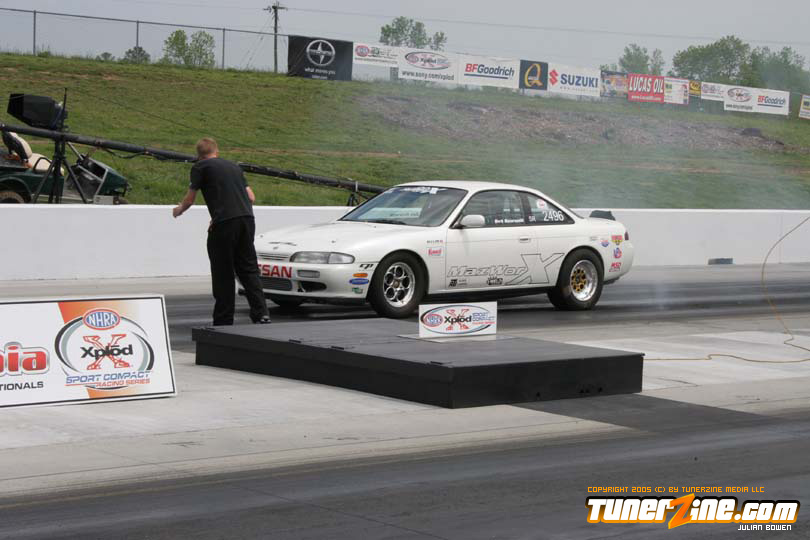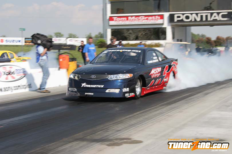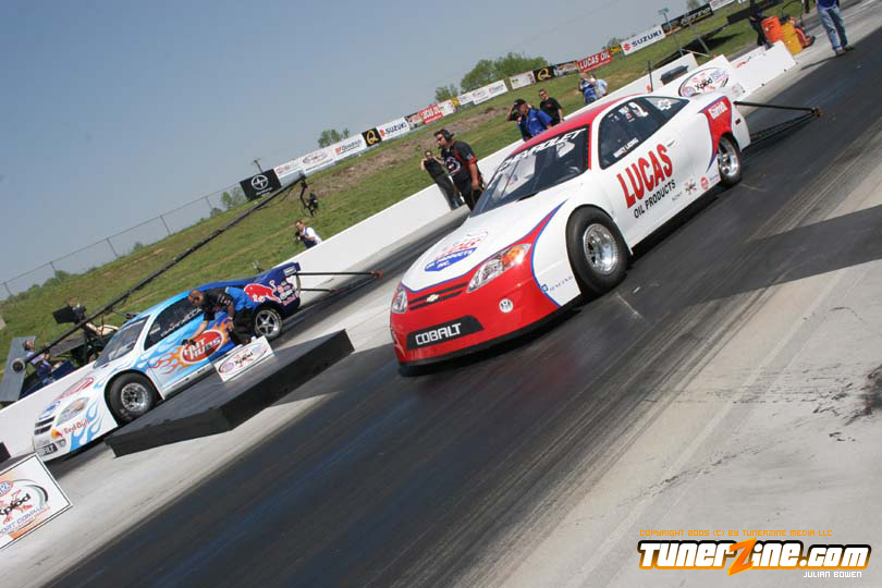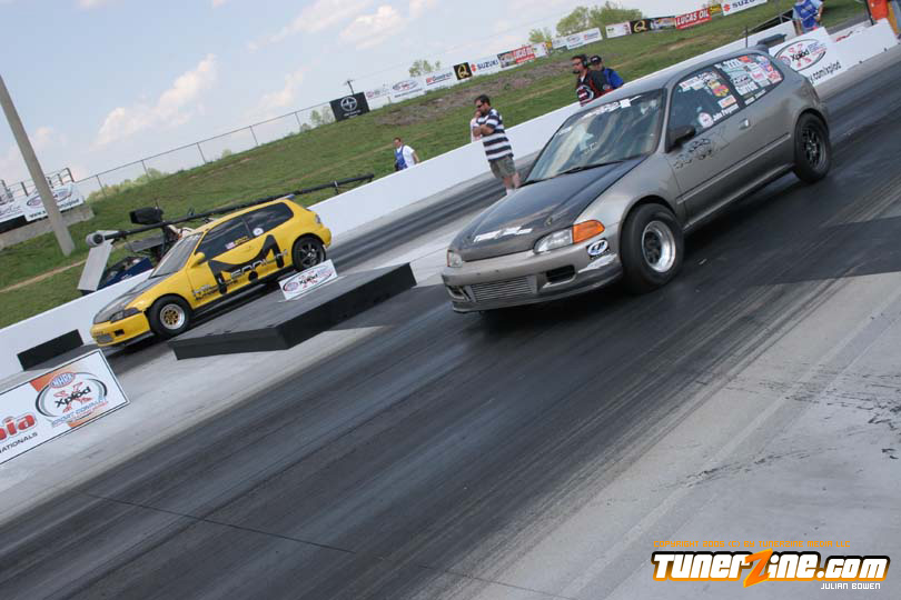 Ed Bergenholtz Bergenholtz in his Audiobahn Mazda earned his second win of the year by defeating Marty Ladwig. His holeshot start was all he needed to win the race. Ladwig, driving his Chevy Cobalt, tried reeling Bergenholtz in, but Bergenholtz’s speed of 191.70 second was too much to overcome. He finished with a time of 8.04. Ladwig’s time was 7.88 at a speed of 182.70 mph.