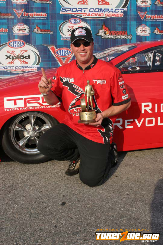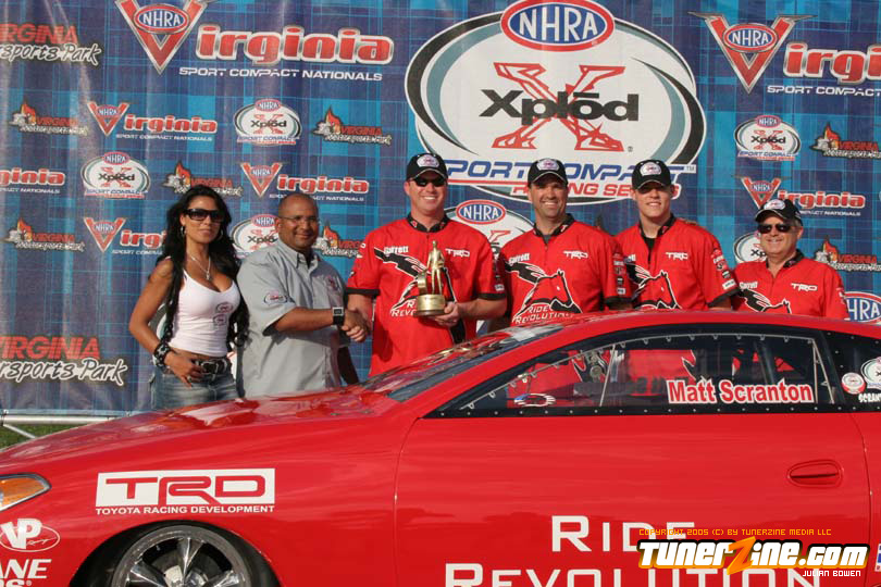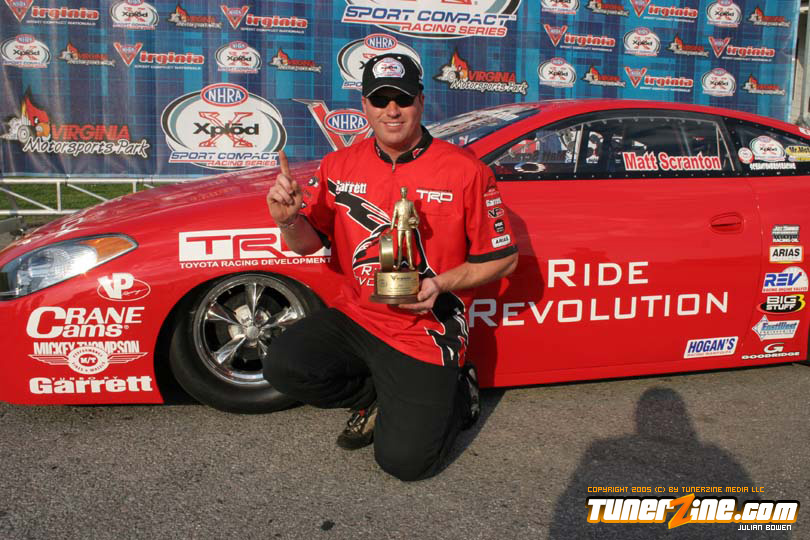 Matt Scranton Scranton, driving his Ride Revolution Toyota Solara, beat newcomer to the Pro RWD class Gary White in the final round. In earning his fourteenth win Scranton tied Jesus Padilla for most career wins. He beat White, who was driving his Toyota Celica, with a time of 6.93 seconds at 192.19. White had to slow up halfway down the track after loosing control.