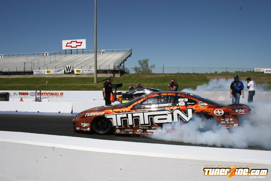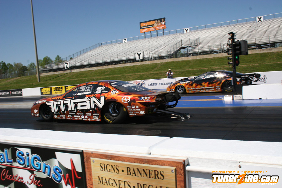 Personett gathered his 15th career win by defeating his teammate Gary White. This win puts him tied at the top for most career wins. He is tied with former Pro RWD driver Matt Scranton and Modified driver Paul Efantis. Driving his Titan Motorsports Scion tC he was able to easily win when White had a red light start. Personett easily finished with a time of 7.25 seconds at 205.19 mph