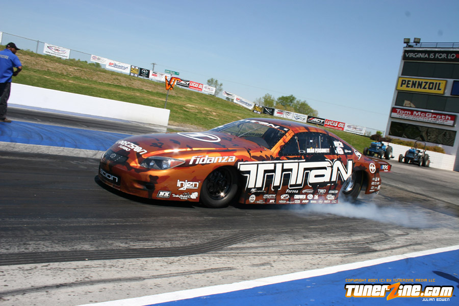 Personett gathered his 15th career win by defeating his teammate Gary White. This win puts him tied at the top for most career wins. He is tied with former Pro RWD driver Matt Scranton and Modified driver Paul Efantis. Driving his Titan Motorsports Scion tC he was able to easily win when White had a red light start. Personett easily finished with a time of 7.25 seconds at 205.19 mph