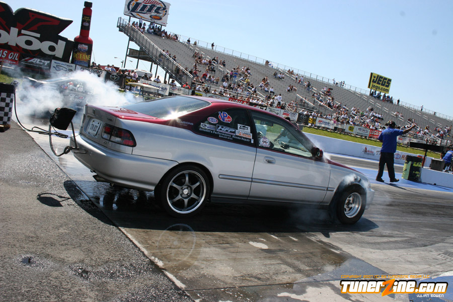 Prayoonto was the No. 1 qualifier and he used that to his benefit in his Clutchmasters Honda Insight. He was able to hold off his Honda Tuning Magazine rival Jeremy Lookofsky. Prayoonto is now 5-1 against Lookofsky in final rounds. He gained his fifth career win driving to a time of 9.51 seconds at 143.46 seconds.
