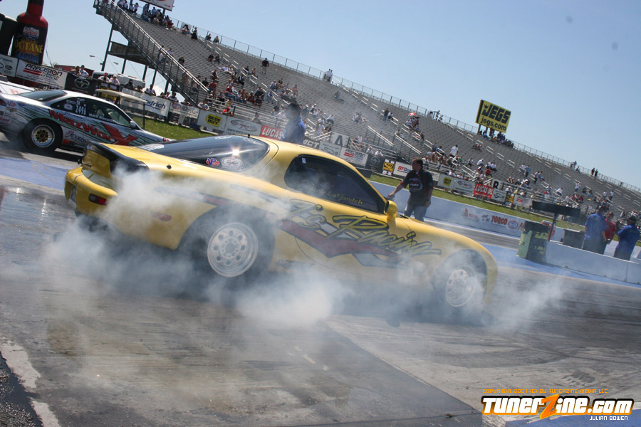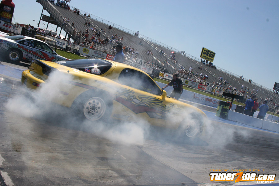 Scheepers, in his Mazdaspeed RX8, raced to his first back-to-back win in Modified. Following up his win from Moroso earlier in the month he defeated fellow Mazda driver Dee Karagiannis. Karagiannis broke during the run and Scheepers easily won with a time of 7.59 seconds at 179.71 mph.