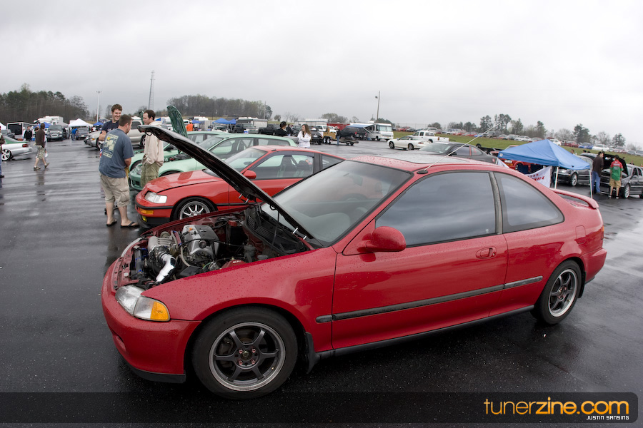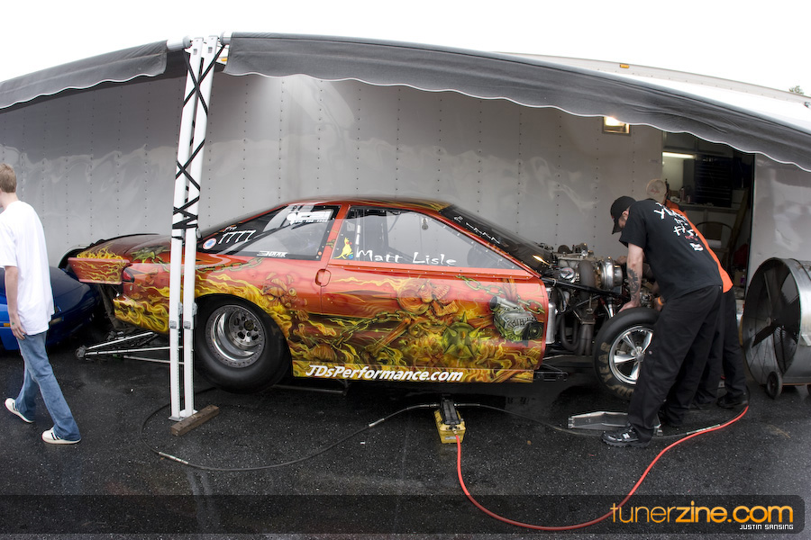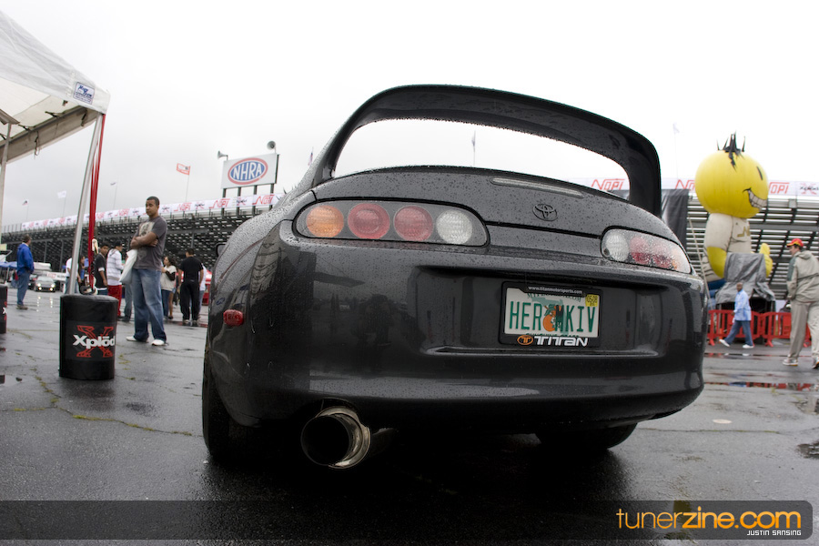 Our feature model and resident Tunerzine friend, Jessica Barton, took her Supra up to the event as well, but clearly saw no track time. For those that don’t realize, her Titan Motorsports built Supra is raced on a weekly basis by Jessica herself. She’s been well into the 9’s and looking to go even faster.