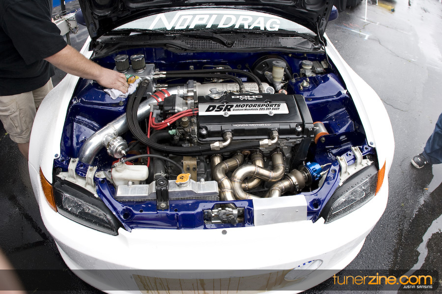 YOParts.com has started huge support for the drag racing scene within the sport compact industry. We can’t thank them enough to offering not only support to the racers, but to the race series as well. Here we see Prayoonto Racing’s Sport FWD Integra driven by Jonathan Reynolds receiving a full make over for 2008. The front end is one of the nicest pieces we’ve ever seen for the DC2 and we just absolutely love the graphics.