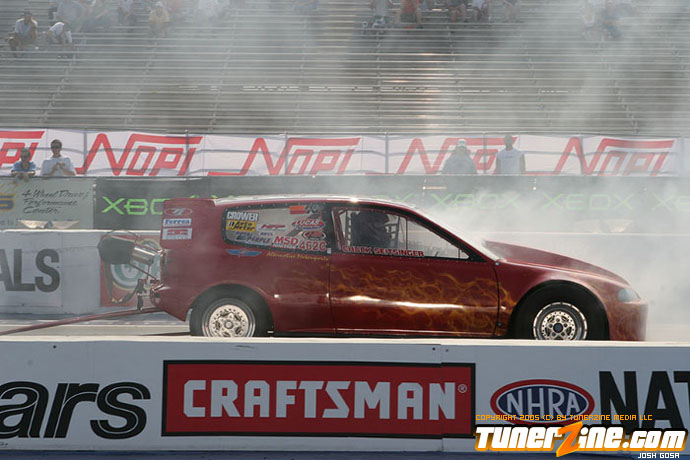 The NOPI NDRA events continue to gather the crowd at each stop along the way in their 2005 season. This stop at St Louis brought out some beautiful girls in the bikini contest, but the drag racing action was where it was at.