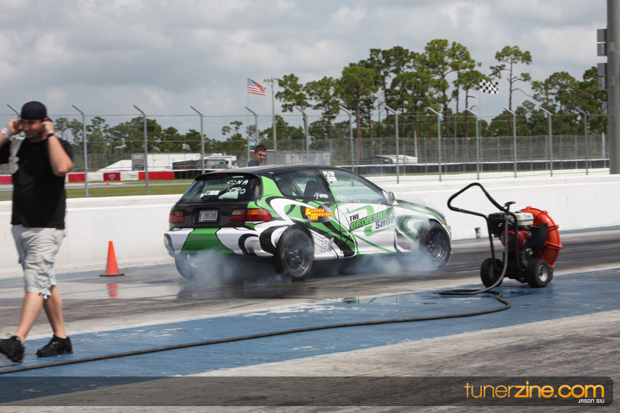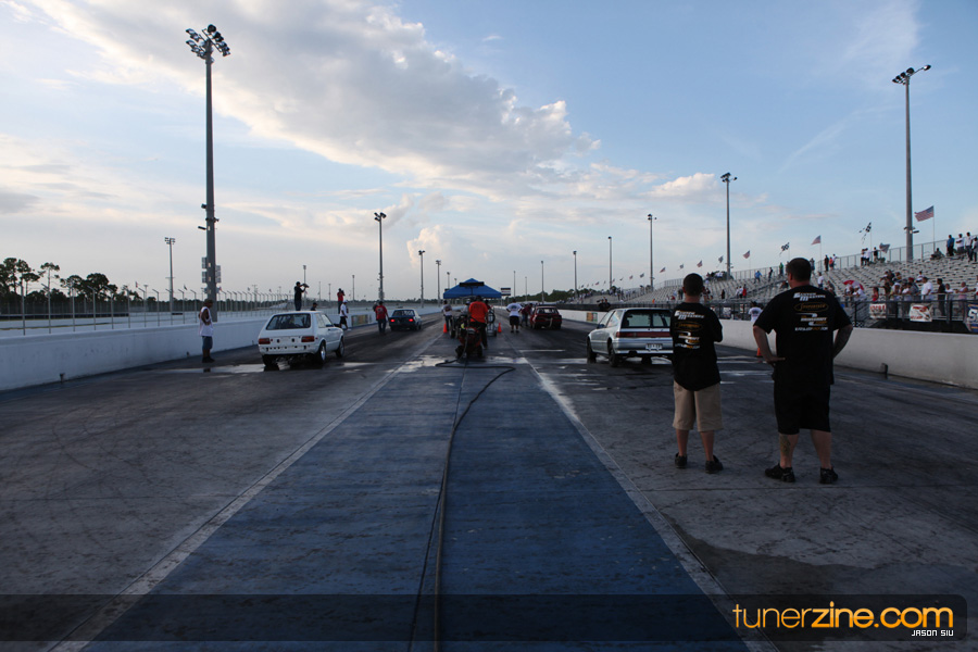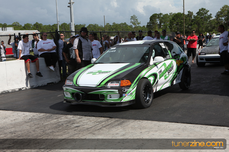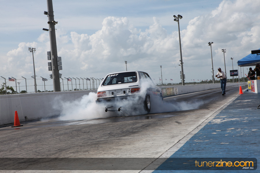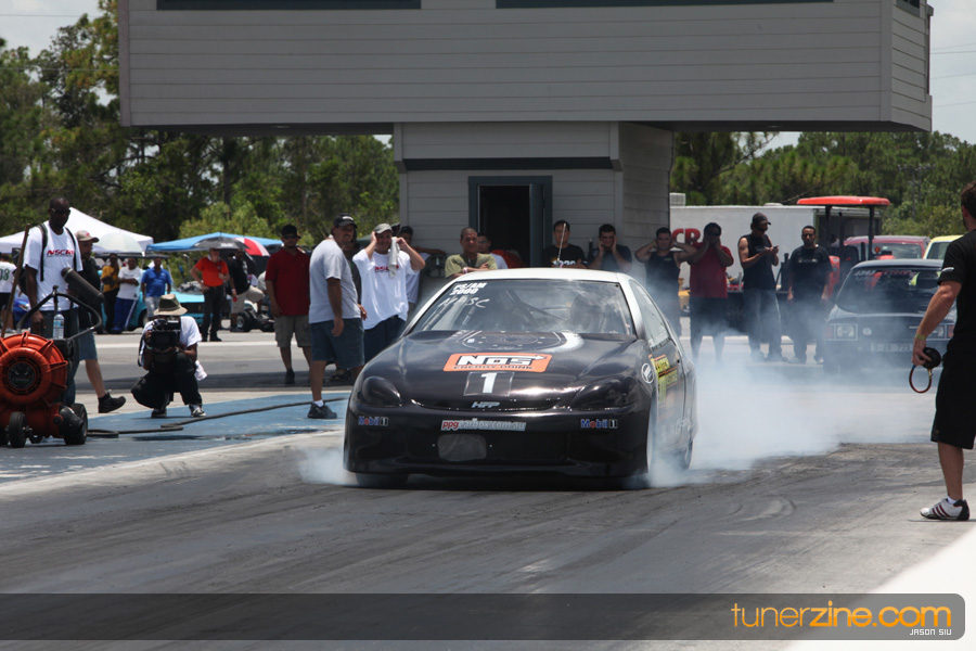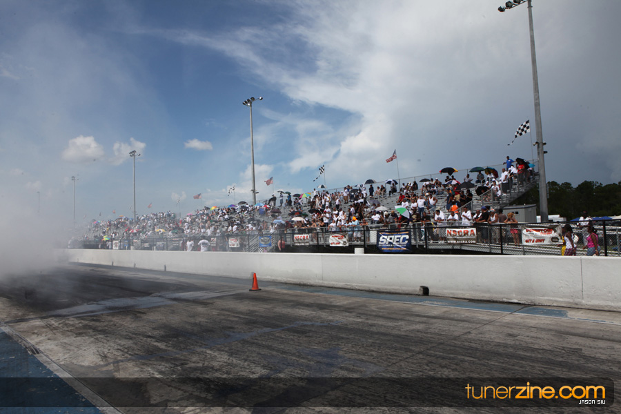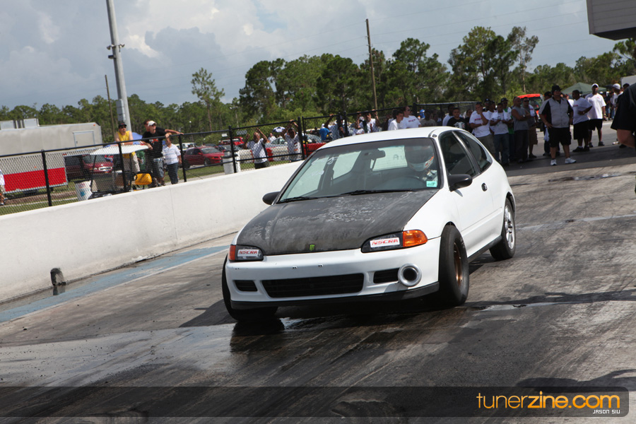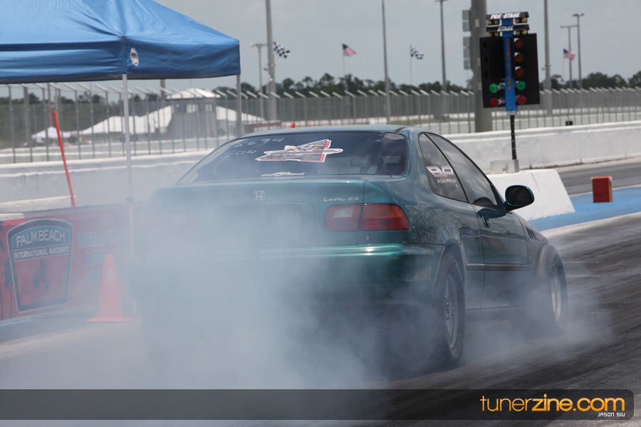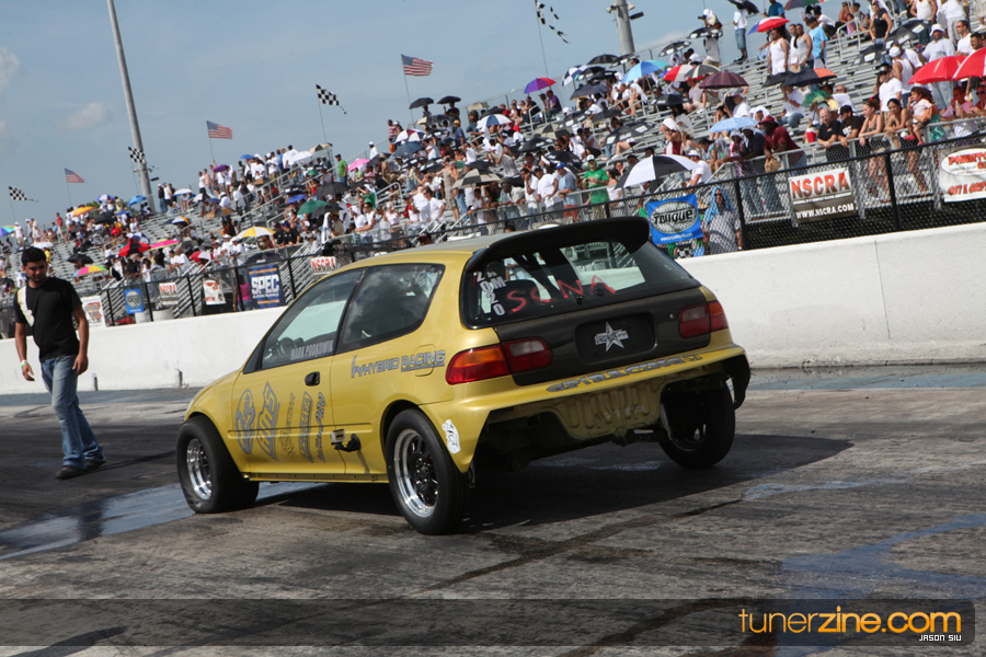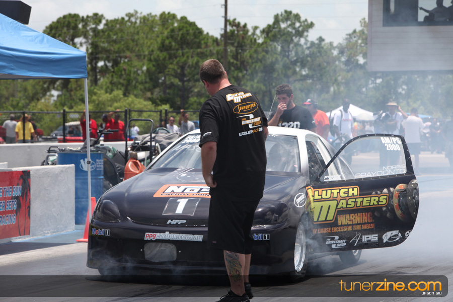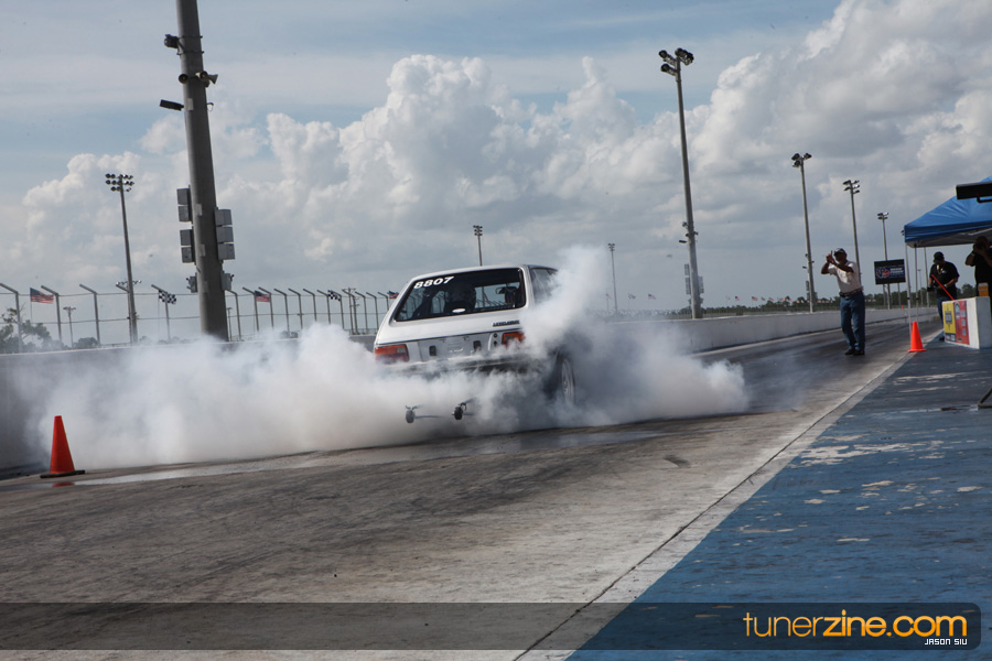 July 6th, 2009 – West Palm Beach, Florida – The NSCRA’s Round 2 event at Palm Beach International Raceway was a huge success despite harsh weather conditions and a slight rain delay. Racers from all across the country showed up to battle it out including the Clutch Masters team of Norris Prayoonto, Loan Nguyen and Jonathan Reynolds. All seven heads-up classes featured some of the world’s fastest sport compacts as new NSCRA records were set and shattered throughout the hot day. Racers also looked towards the bounties that were placed on each of the winners from Round 1 as an added payout for each class. Across the way from the drag racing track, local Florida grassroots drifters and time attack racers were out putting on a show in between drag racing rounds.