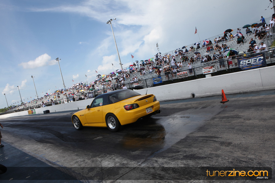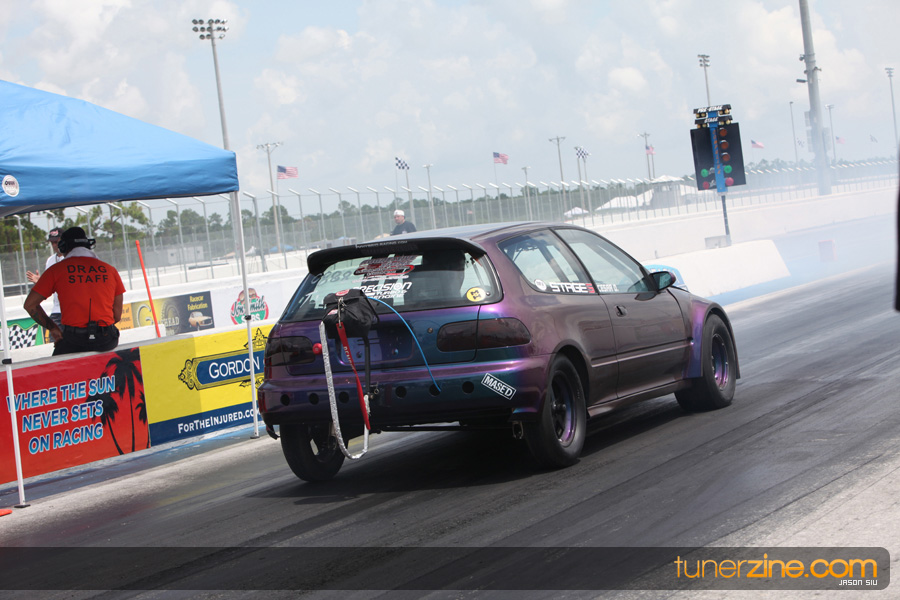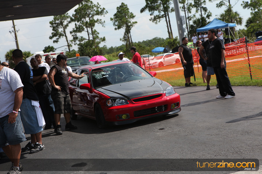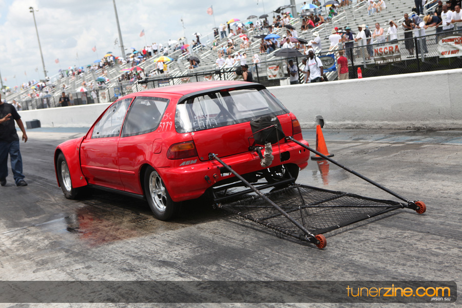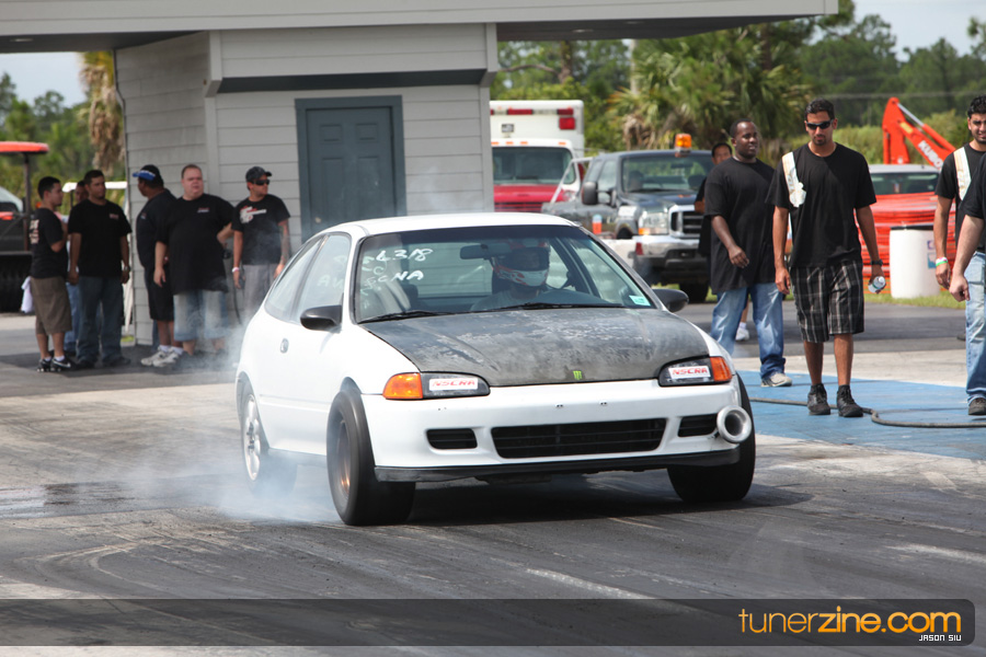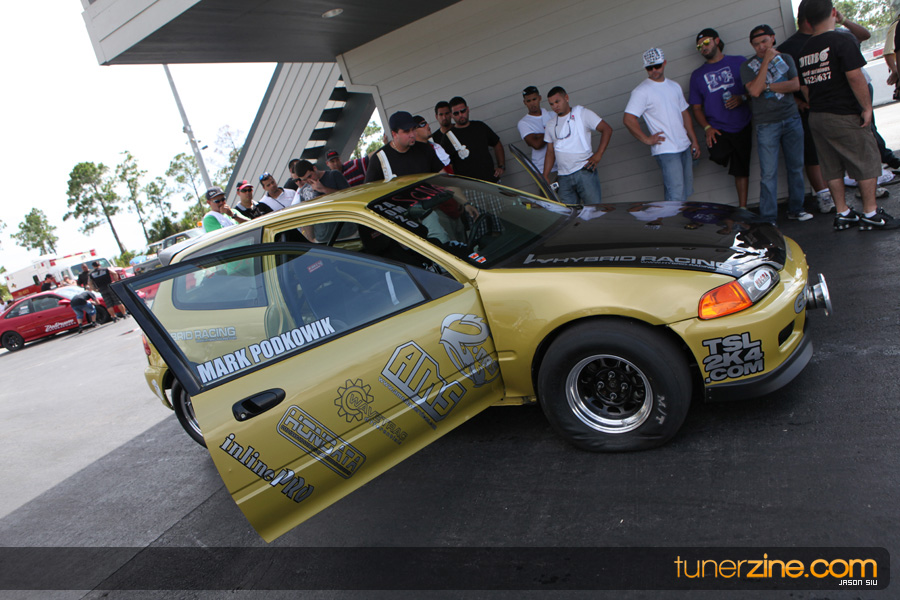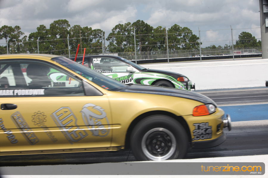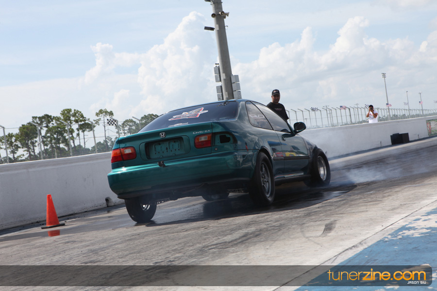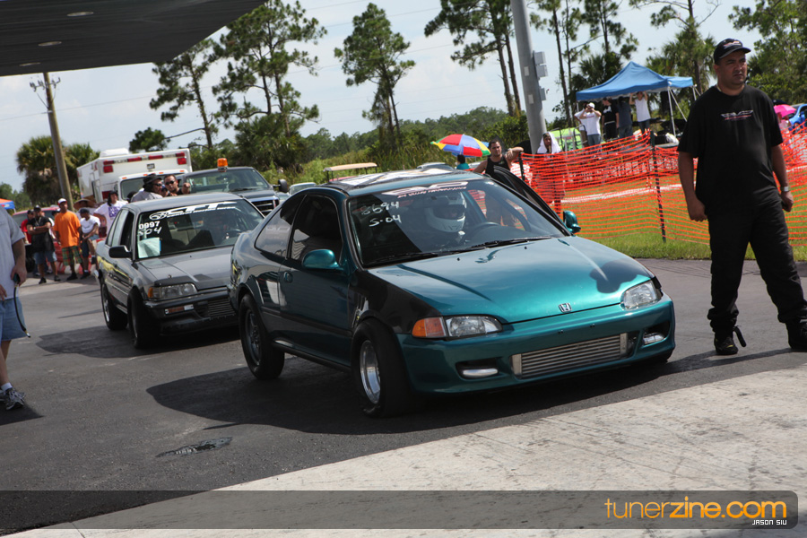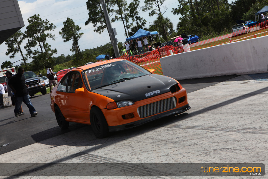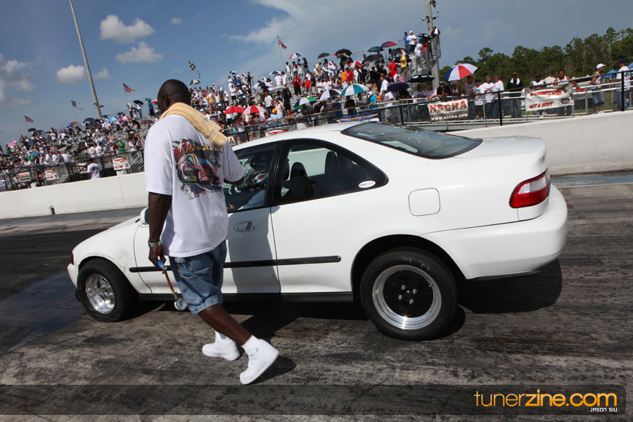 July 6th, 2009 – West Palm Beach, Florida – The NSCRA’s Round 2 event at Palm Beach International Raceway was a huge success despite harsh weather conditions and a slight rain delay. Racers from all across the country showed up to battle it out including the Clutch Masters team of Norris Prayoonto, Loan Nguyen and Jonathan Reynolds. All seven heads-up classes featured some of the world’s fastest sport compacts as new NSCRA records were set and shattered throughout the hot day. Racers also looked towards the bounties that were placed on each of the winners from Round 1 as an added payout for each class. Across the way from the drag racing track, local Florida grassroots drifters and time attack racers were out putting on a show in between drag racing rounds.