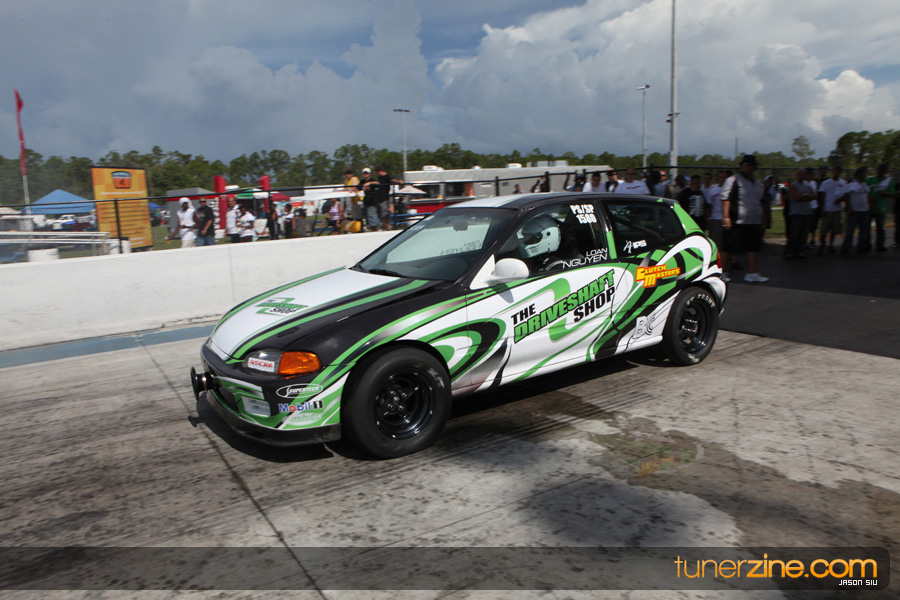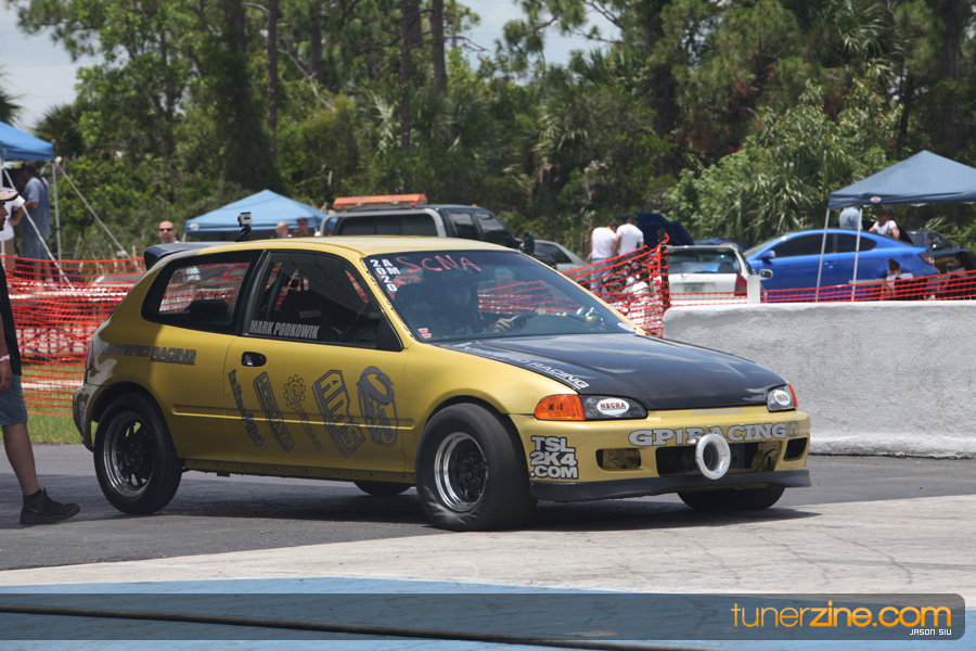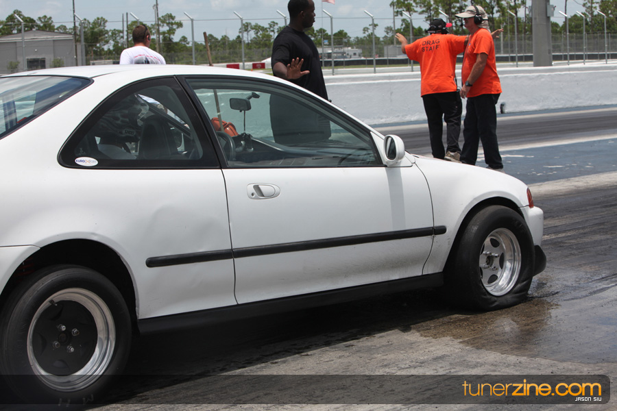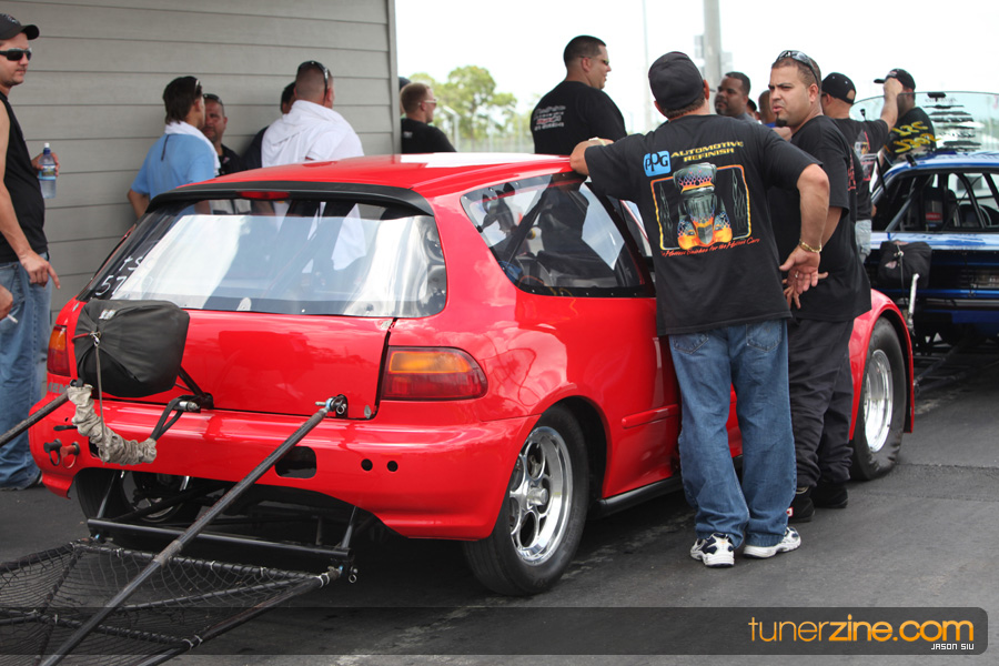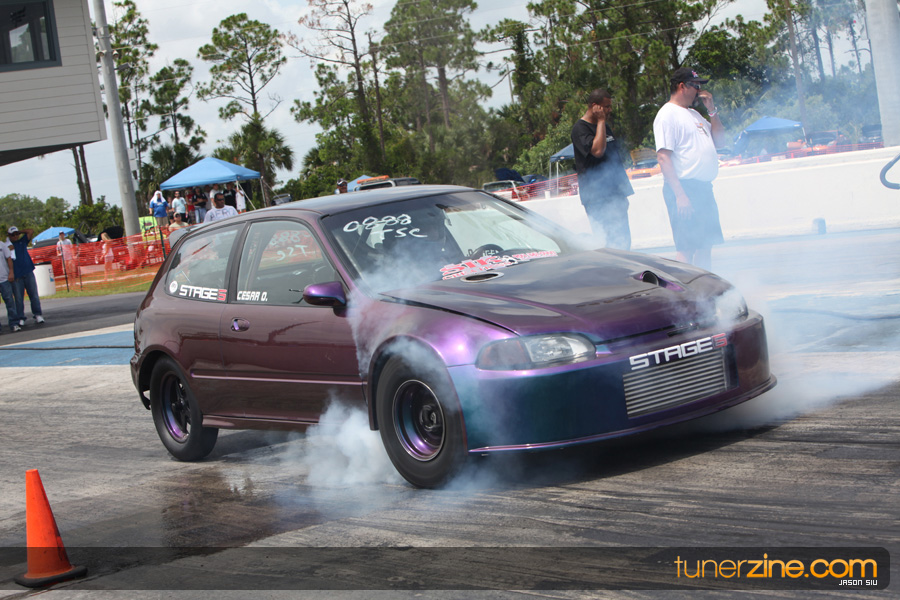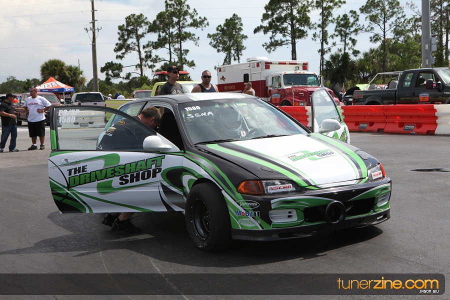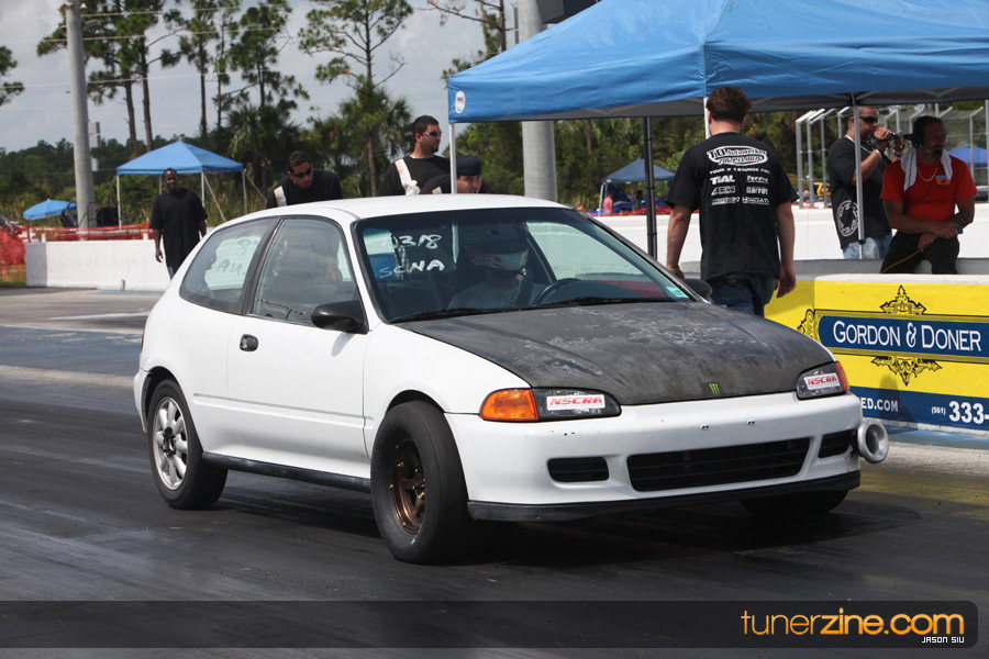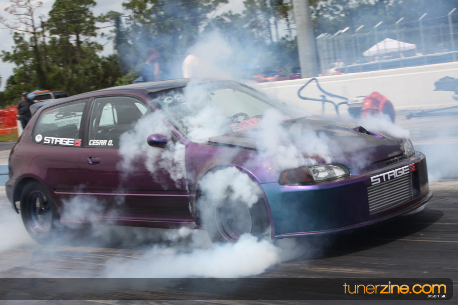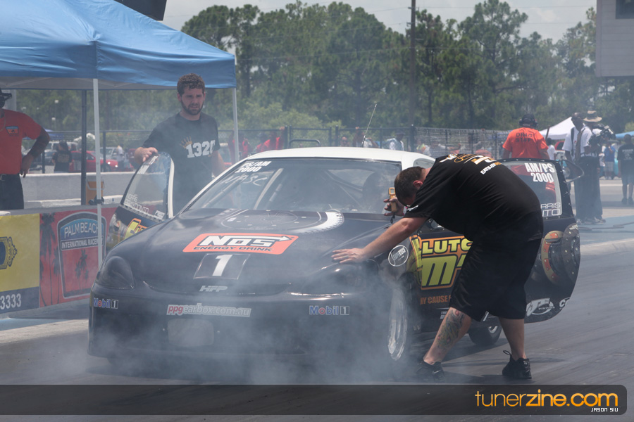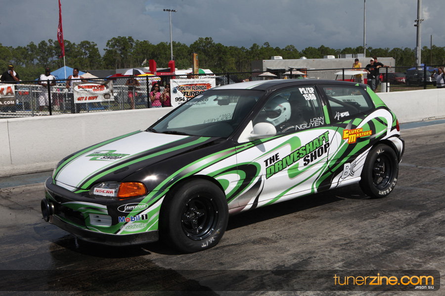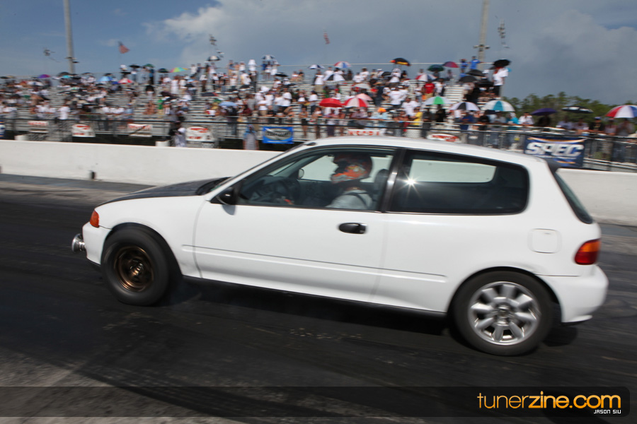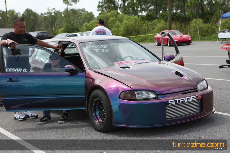 July 6th, 2009 – West Palm Beach, Florida – The NSCRA’s Round 2 event at Palm Beach International Raceway was a huge success despite harsh weather conditions and a slight rain delay. Racers from all across the country showed up to battle it out including the Clutch Masters team of Norris Prayoonto, Loan Nguyen and Jonathan Reynolds. All seven heads-up classes featured some of the world’s fastest sport compacts as new NSCRA records were set and shattered throughout the hot day. Racers also looked towards the bounties that were placed on each of the winners from Round 1 as an added payout for each class. Across the way from the drag racing track, local Florida grassroots drifters and time attack racers were out putting on a show in between drag racing rounds.