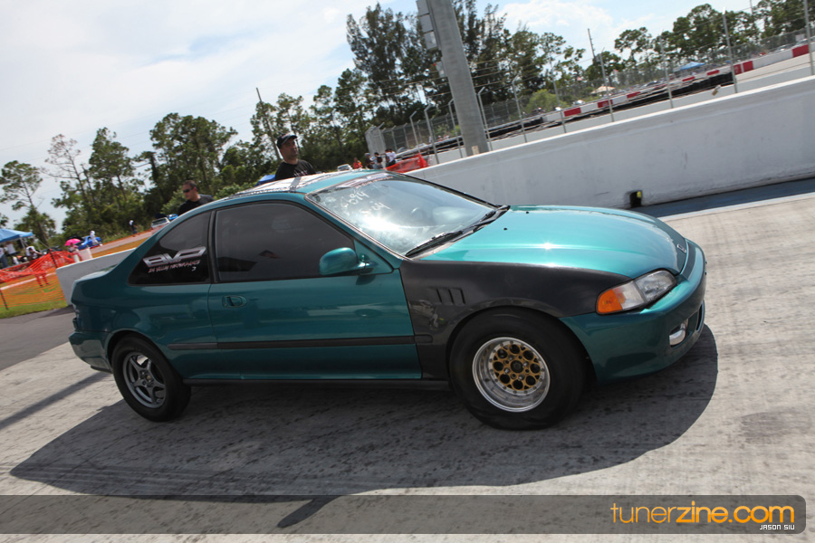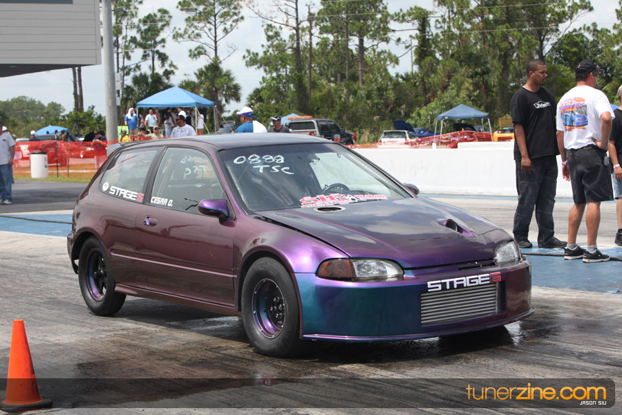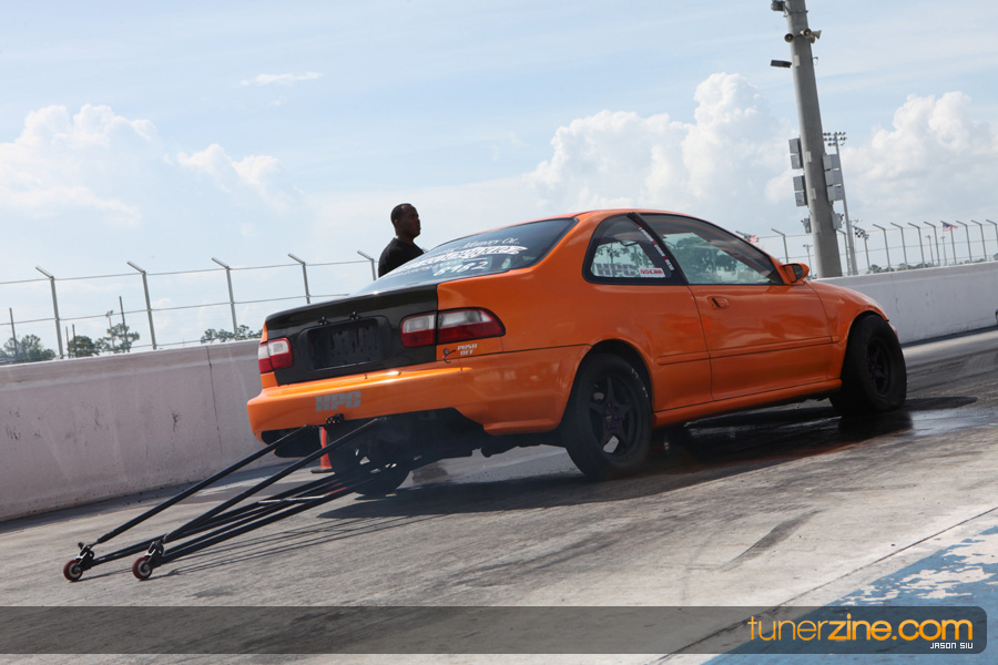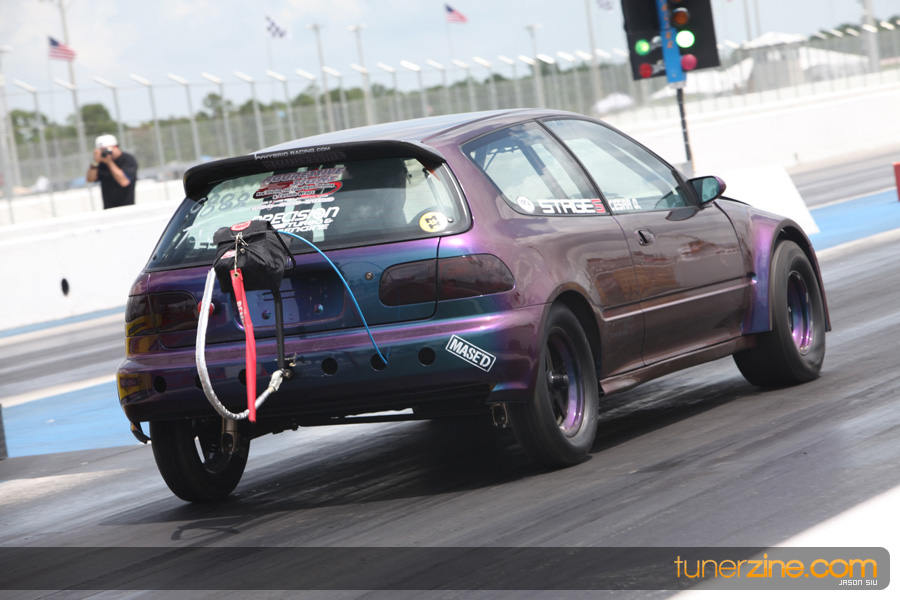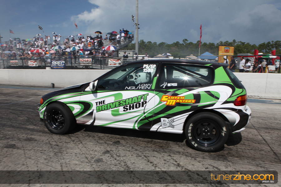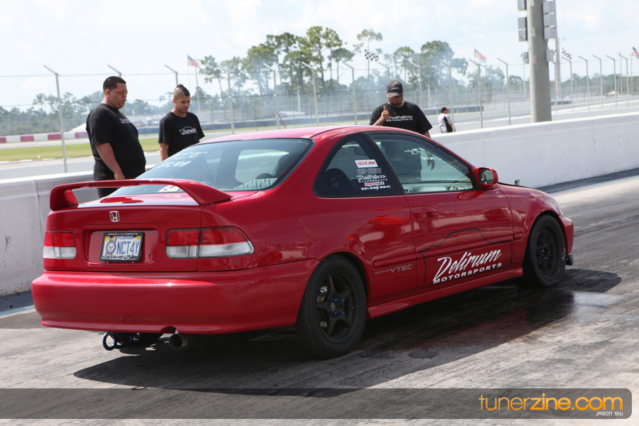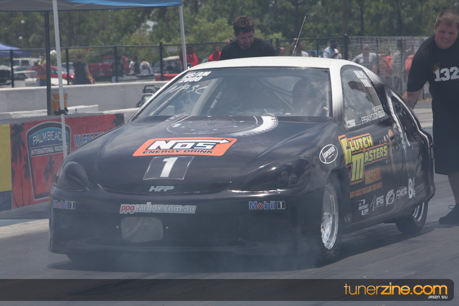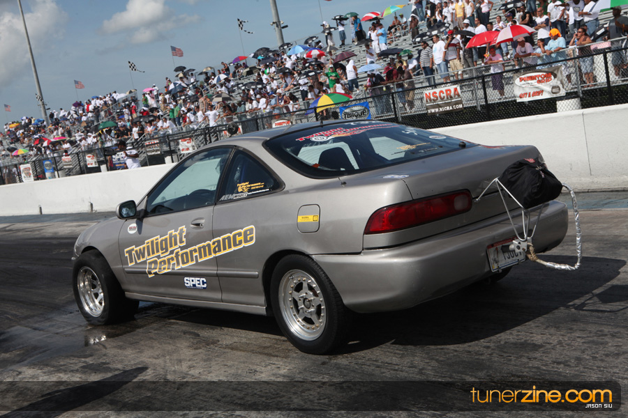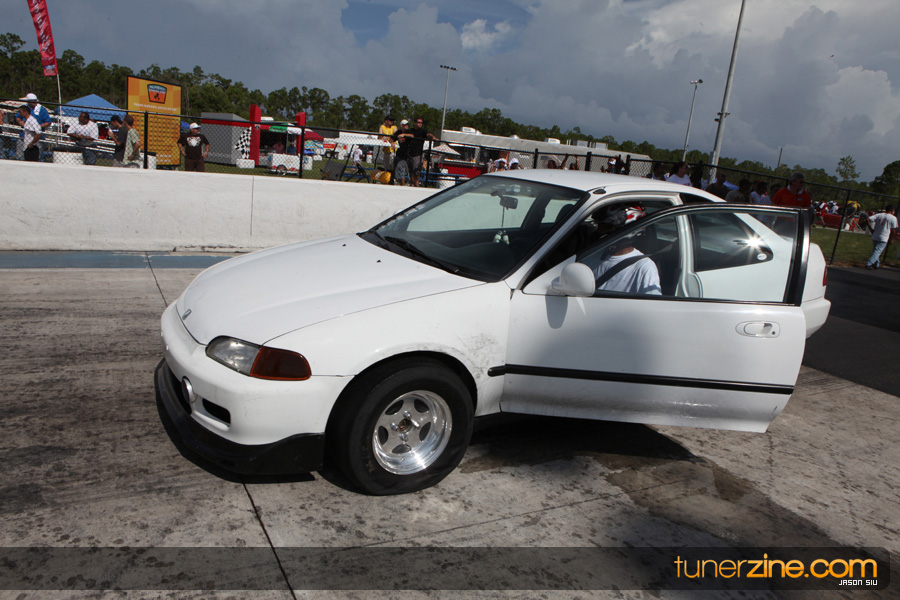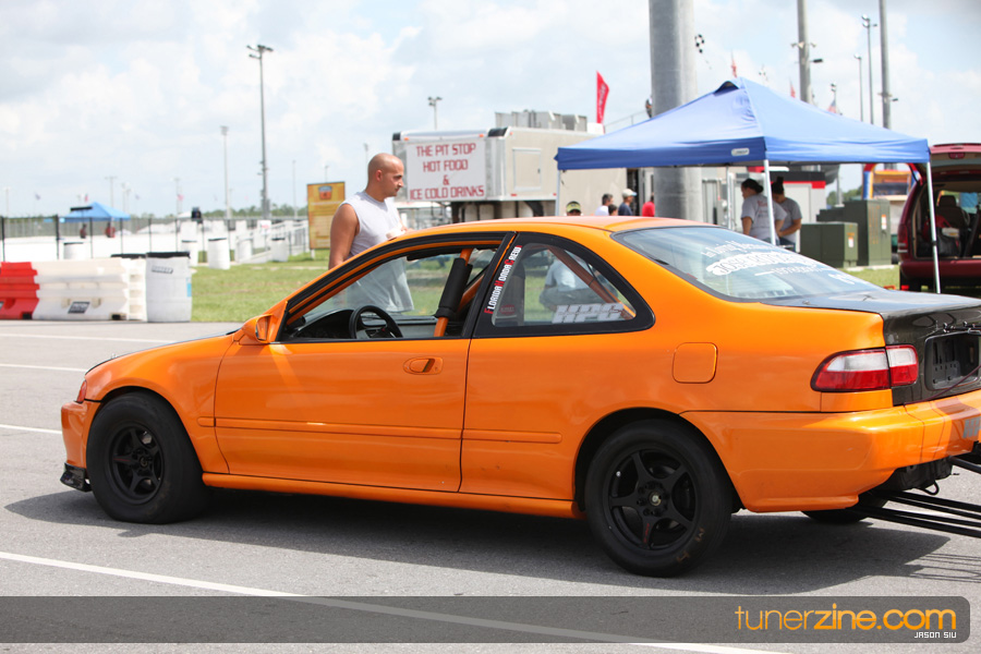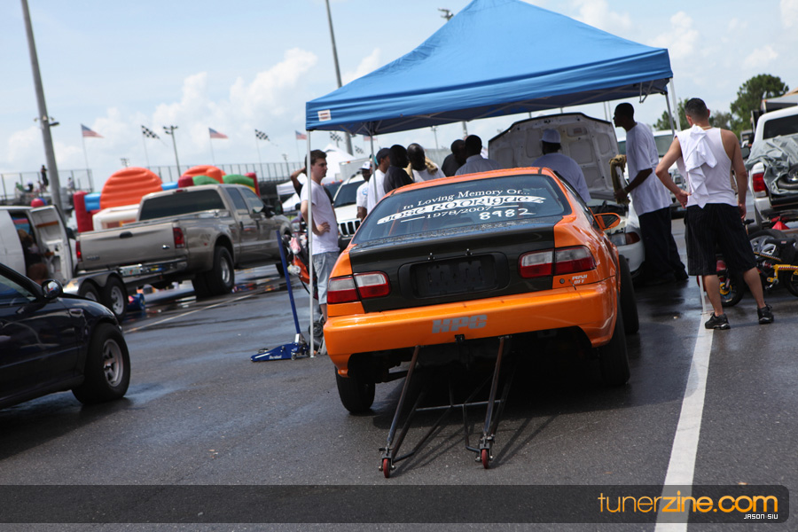 July 6th, 2009 – West Palm Beach, Florida – The NSCRA’s Round 2 event at Palm Beach International Raceway was a huge success despite harsh weather conditions and a slight rain delay. Racers from all across the country showed up to battle it out including the Clutch Masters team of Norris Prayoonto, Loan Nguyen and Jonathan Reynolds. All seven heads-up classes featured some of the world’s fastest sport compacts as new NSCRA records were set and shattered throughout the hot day. Racers also looked towards the bounties that were placed on each of the winners from Round 1 as an added payout for each class. Across the way from the drag racing track, local Florida grassroots drifters and time attack racers were out putting on a show in between drag racing rounds.