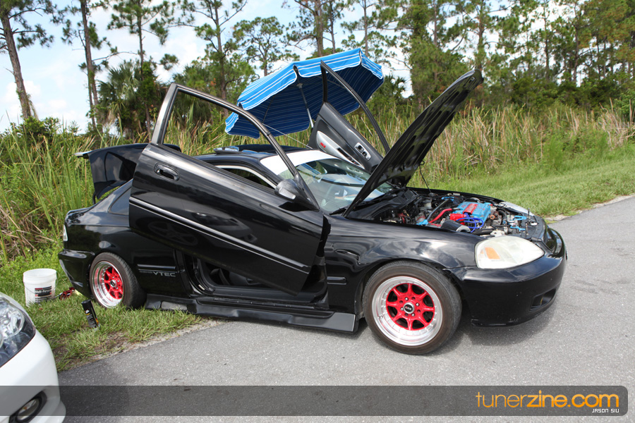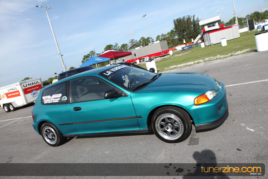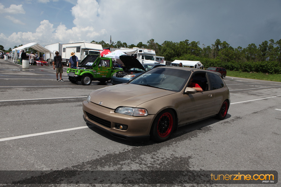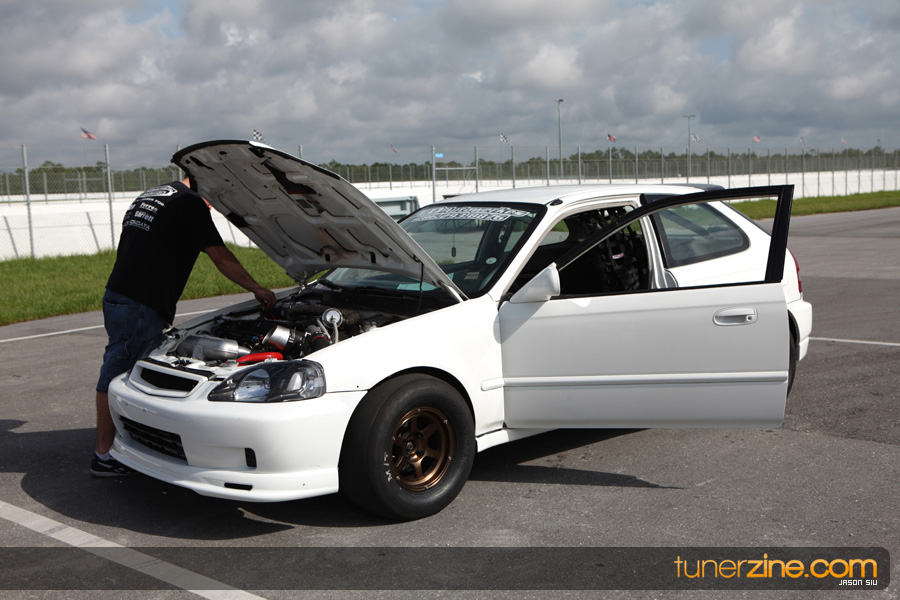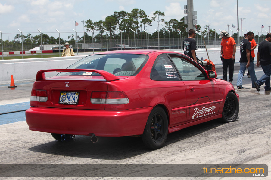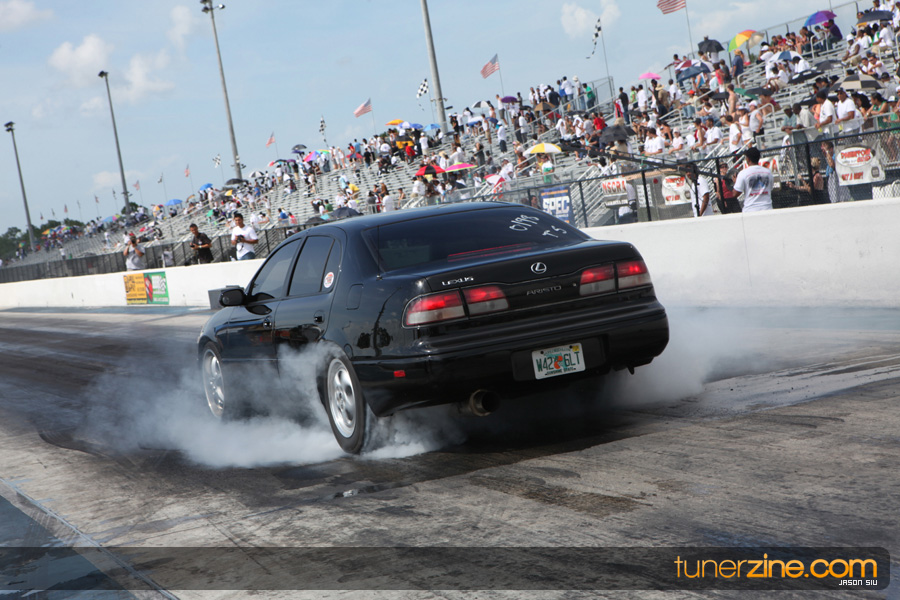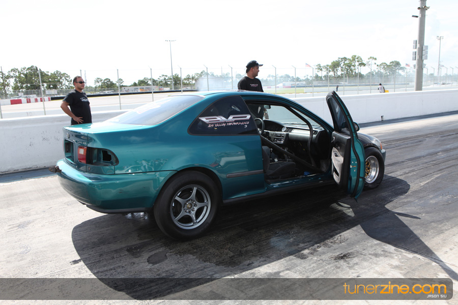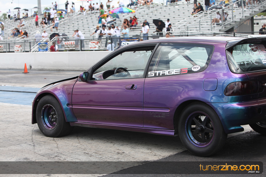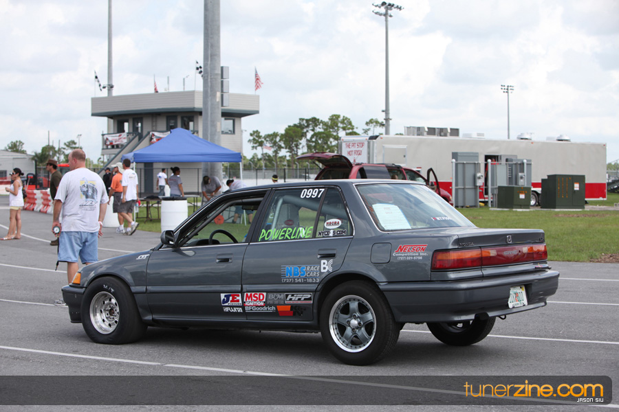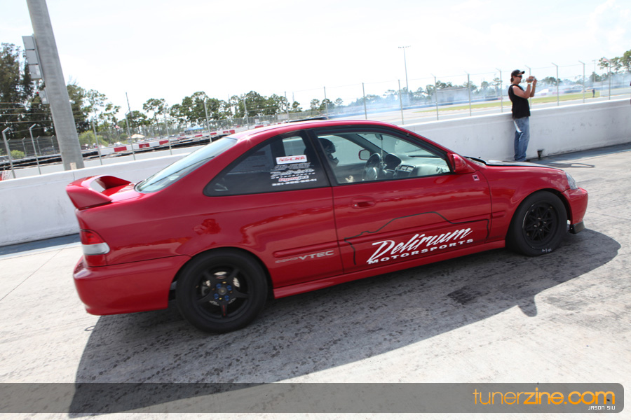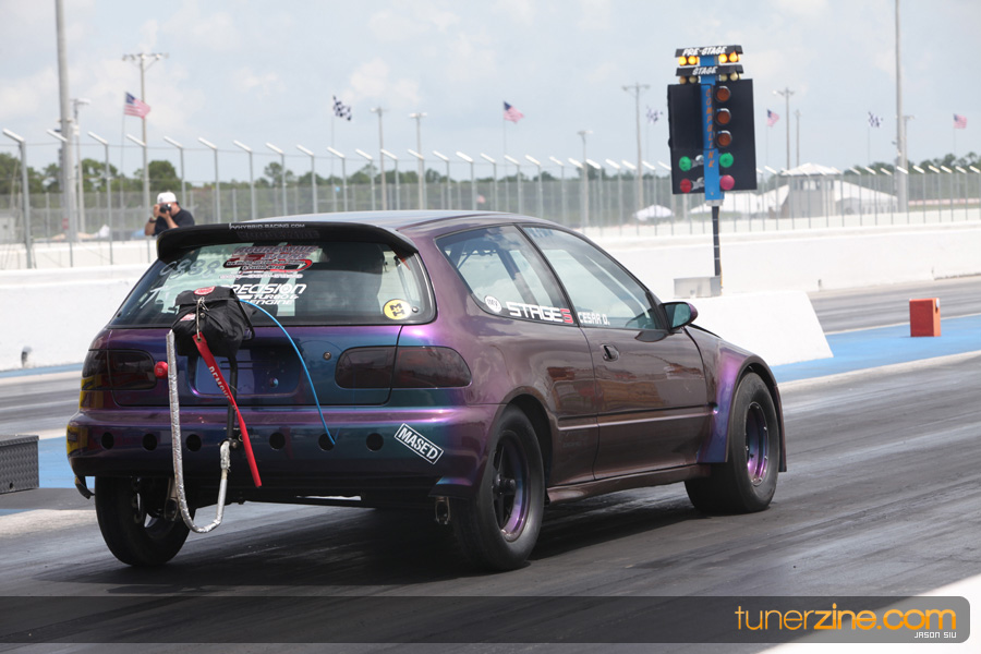 July 6th, 2009 – West Palm Beach, Florida – The NSCRA’s Round 2 event at Palm Beach International Raceway was a huge success despite harsh weather conditions and a slight rain delay. Racers from all across the country showed up to battle it out including the Clutch Masters team of Norris Prayoonto, Loan Nguyen and Jonathan Reynolds. All seven heads-up classes featured some of the world’s fastest sport compacts as new NSCRA records were set and shattered throughout the hot day. Racers also looked towards the bounties that were placed on each of the winners from Round 1 as an added payout for each class. Across the way from the drag racing track, local Florida grassroots drifters and time attack racers were out putting on a show in between drag racing rounds.