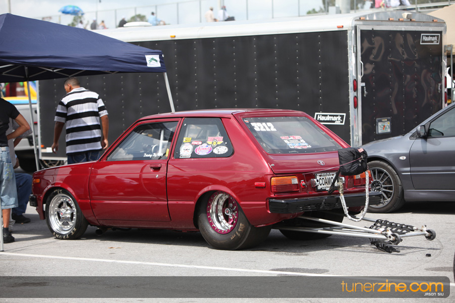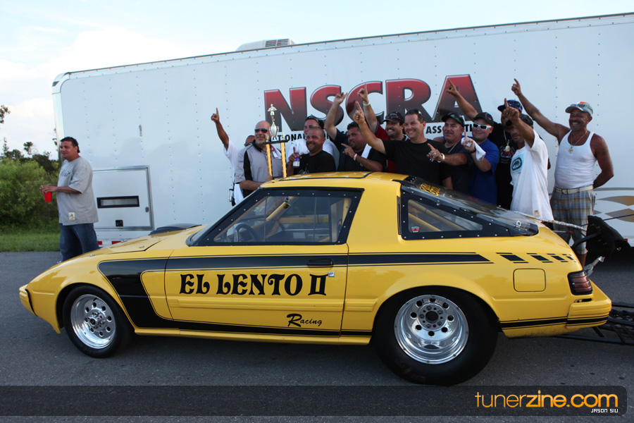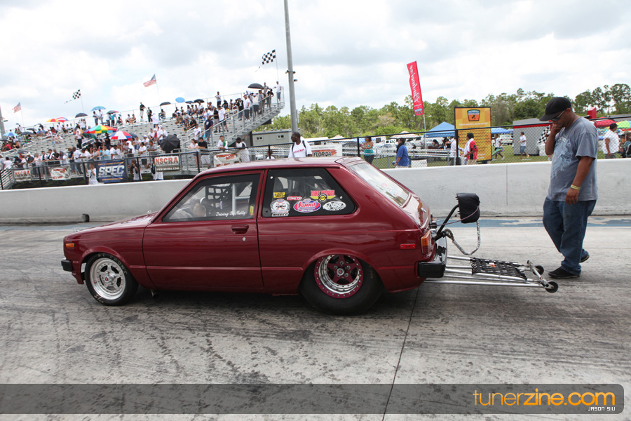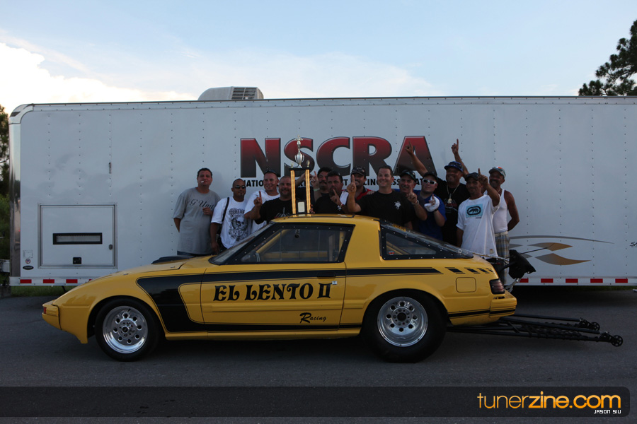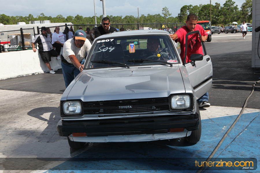 Lastly, the Modified Sport Compact class was filled with eight racers from ’94 Mazda RX-7s of Boris Rojas to Luis Ferrer Jr.’s ’07 Scion tC and Jaime Rodriguez Jr.’s old school Toyota. The story of the day would be Rodriguez Jr.’s resume for the day. Round one would show a 7.481 @ 179.42 mph over Ferrer Jr.’s troubled Scion tC, taking the $500.00 bounty. Round two would bring a 7.477 @ 178.97 mph pass over Boris Rojas’ 9.994 @ 134.24 mph. In the finals, Rodriguez Jr. would continue to impress finishing off what would seem a bracket -racing day for him with a 7.472 @ 178.52 mph pass over Alex Dieguez’s 10.426 @ 101.06 mph. Was he racing ET1 or Modified Sport Compact?! Congratulations to the team from West Palm Beach, Florida!
