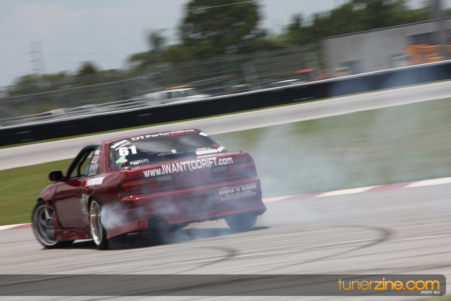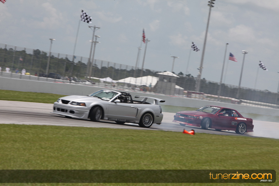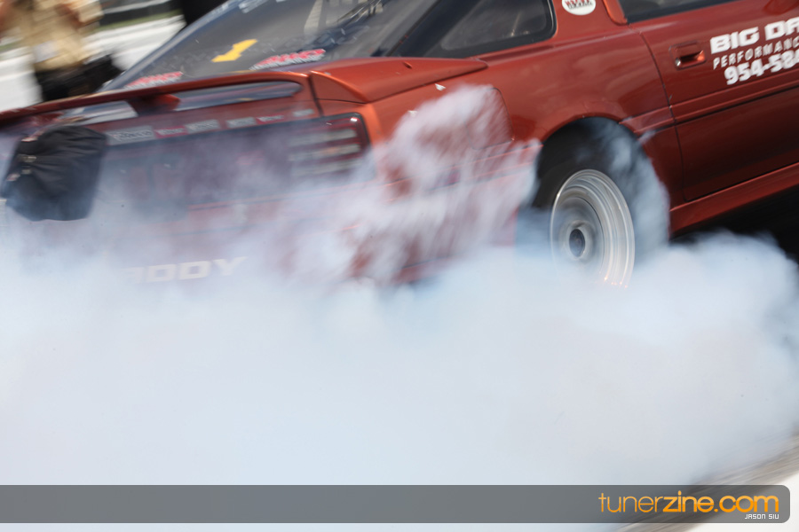 The drifters and time attack racers put on a great show in between downtime and rounds of intense drag racing. Grassroots racers from across Florida showed up including Petit Racing’s RX-7, Japtrix’s Time Attack Evo and P2R’s Accord and Civic. Sean Yearwood shifted gears to attacking the road course this event as he was a drag racing competitor at our previous event – just showing off some of the versatility of what the NSCRA has to offer for all its automotive enthusiasts. The drift demo was well received by the crowd as locals such as Jason Jiovani in his S13 and Bizspeed.net’s sponsored S14 and Mustang went sideways lighting up the tires.