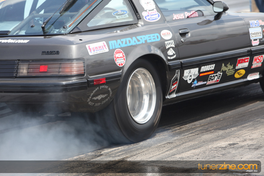 The Naturally Aspirated Sport Compact class saw some fantastic rear wheel drive rotary vs. front wheel drive piston racing. Norris Prayoonto in the Clutch Masters Insight would qualify first with a blazing 9.605 @ 141.88 mph pass, but would run consistent 9.5’s all day long while battling it out with the rear-wheel drive rotary-powered vehicles. Prayoonto would claim the bounty on Armando Melendez in the semi-finals round with a 9.525 @ 146.32 mph pass to Melendez’s 10.334 @ 128.32 mph. The finals would pit Prayoonto with Jesus Padilla Jr., but Padilla’s Jr.’s ’85 Mazda would have trouble getting down the track. Prayoonto finished off the day with a 9.534 @ 145.99 mph. Congratulations to the team from Virginia on claiming two of the three class wins.
