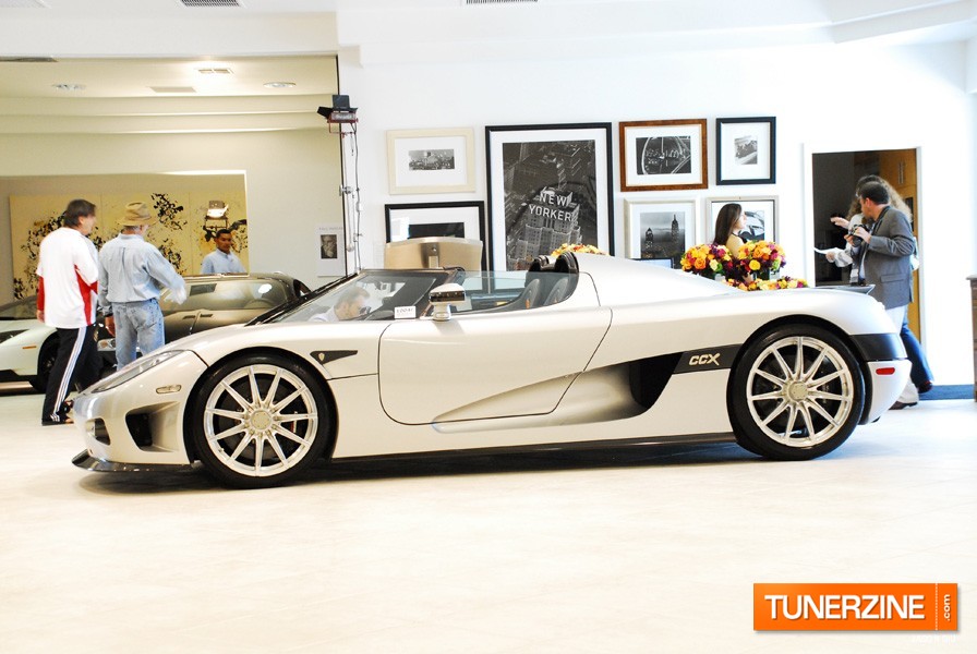 On Friday May 21st, 2010, O’Gara Coach Company in Beverly Hills, CA put on a media-only event that feasted our eyes on the world’s most expensive supercars. This exclusive showcase also featured Christian Koenigsegg, founder of Koenigsegg Automobiles, and Horacio Pagani, founder of Pagani Automobili S.p.A. If a photo is worth a thousand words, then we’re not sure what these photos are worth – considering there are millions of dollars’ worth of vehicles in one single photo. We were able to enjoy the sights and sounds of Pagani’s Zonda R, Koenigsegg’s CCX, Lamborghini’s Reventon and Bugatti’s Grandsport. If that wasn’t enough, a fleet of Aston Martins, Rolls-Royces and Lamborghinis were parked outside. Other representatives in attendance included Andreas Petre, Sales Director of Koenigsegg, Albert Giovanelli, Sales and Marketing Manager of Pagani, John Hill, Sales Director of Bugatti USA and Wolfgang Hoffmann, COO of Lamborghini, North America.