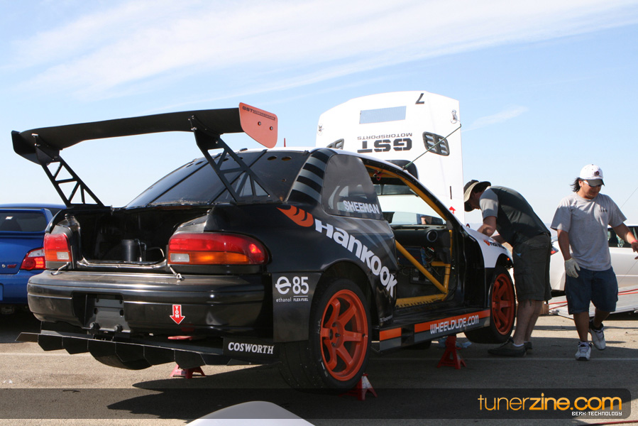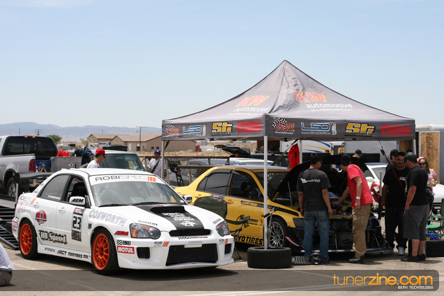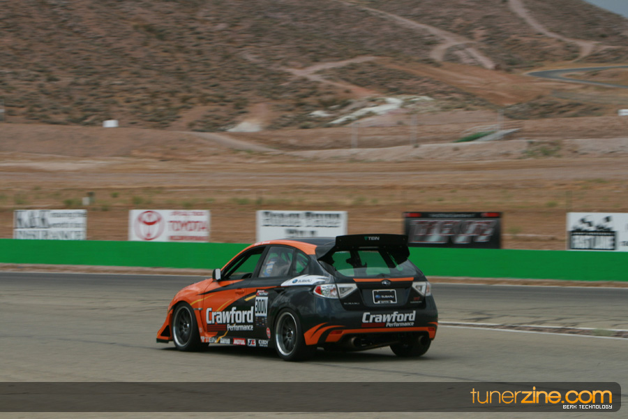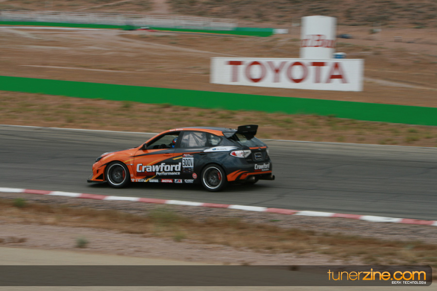 Tarzan Yamada, driving the Crawford Performance Subaru STI landed in 4th position overall with a time of 1:22.097, knocking a couple seconds off the teams previous best lap time, securing 2nd place in Unlimited AWD. In what is quite possibly one of the most significant accomplishments in motorsports history, let alone time attack history, Chris Rado, driver of the World Racing Scion tC ran a blazing lap time of 1:22.623 in his FRONT WHEEL DRIVE vehicle. As of the writing of this press release, RTA officials have been unable to find a faster lap time recorded by a FWD vehicle in the history of Willow Springs Raceway. No doubt, the substantial re-work of the World Racing Scion tC during the offseason, including the massive front wing, put Chris Rado in a position to utilize is skill, piloting the car to a lap time that NOBODY that was physically possible.
