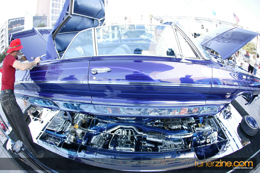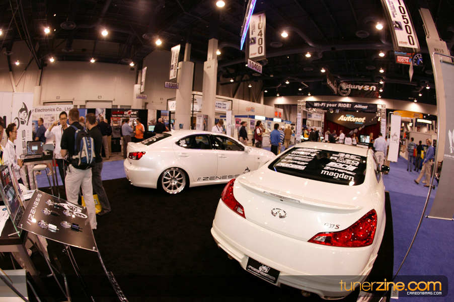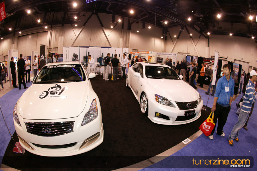 Each year in Las Vegas members of the automotive community and industry gather together in Las Vegas for one of the largest conventions in the world. Hundreds of thousands of people gather around the large halls looking at project vehicles, new products and talk to potential clients and manufacturers. For some it’s all about fun and games. Take a look around, browse the booths, check out the cars, take pictures with the hot girls and go on and party it out the rest of the day/night. For others it’s all about standing there and watching over your booth trying to attract as much potential sales as possible. No matter whom you are though, when the convention closes each day SEMA turns into a blistering hurricane of night life activities, events and more business. Whether it is parties or OE-hosted leisure dinners, there’s always something to do the second you leave the floor of the convention center. For us however, it’s all about capturing what SEMA is and taking a close good look at where our industry is heading for 2009. As many of us know, the declining economy has startled the automotive aftermarket with many manufacturers pulling out of the show last minute, as well as declining sales resulting in some, let’s say, less than favorable decisions. Regardless though, we were excited to see what the industry had in store for us and see how they were going to fight back against the economy and help ride the wave and keep our industry thriving and growing. The first thing we noticed was definitely the re-emergence of domestic vehicles in overwhelming the presence of the show floor as well as the outside vehicles. The new Nissan GT-R were a plentiful, in fact they became borderline mundane at SEMA. But then again, if it is anywhere in the world where the GT-R would be commonplace it would be at this show. The presence of luxury and high end automobiles was overwhelming. It almost seems like many of the companies are progressing through showcasing the ‘bling’ along with their products. This was especially true in the wheel and tire hall, where it often was a mixture of sport compact and luxury and high end automobiles. While we missed one of our favorite manufacturers, GReddy, at the show, other dominant partners including HKS and AEM were on hand. AEM continued to show their excellence in product development and marketing by showcasing their two-time Formula D championship 350Z and Stephan Papadakis’ own S2000. By now many of you have heard through the rumor mill that Tanner Foust will be piloting an AEM converted Scion tC for next year’s season. We can’t wait to see it. The Hyundai Genesis also received plenty of buzz over the year and we were happy to see some of them come to fruition, especially in the HKS booth. Their red Hyundai was absolutely stunning and killer, something we thought we’d never associate to a vehicle sporting that moniker. Nonetheless we’re excited to see how Rhys Millen’s Genesis fares in Formula D competition, and there was plenty of coverage from that vehicle. Leading up to the show, we followed around the boys from Theory Communications and got the inside look at the Tjin Edition Pontiac G8 and Tjin Edition Honda Fit. Both were respectively showcased in their booths with the Pontiac G8 winning Best Exterior Design Award from GM. Congratulations to the Tjin Edition team on another year well done with projects. NOS Energy Drink continued to impress with their Naughty NOS Girls Alicia Whitten and Corissa Furr on display. They weren’t the only beautiful girls to be on the show floor however. Falken Tires as always was one of our favorite booths to visit; this year showcasing a wide range of vehicles and plenty of models for us to ogle over. We’d like to leave thinking that the industry is doing well and thriving, but our gut instinct was that this year was a cautious year for many. Some were extra careful in not spending the funds necessary for an entire week at SEMA, while others made a strong push during the weaker economy. You know what they say: those that advertise during a recession win out at the other end. So tons of respect goes out to the companies that continued to pursue and support the industry despite hard and trying financial times for many. We definitely didn’t feel the same buzz and excitement as usual, and while the new products were plentiful, nothing was ground breaking. This is on par with the entire industry wanting to play it safe and make what works, what sells, not what innovates. The overwhelming presence of 30k-40k European automobiles tuned to perfection however is definitely a sign of things to come. It’s no longer a Japanese-made model world out there, Europeans are becoming extremely popular, especially with the E92 335i and M3 on the market, affordable C-class with stylish lines and Porsches aplenty. The new Evo X has already made a strong mark with the aftermarket, and the 350Z/G35/G37 continues to stay strong. Nevertheless we were excited to put an end to another arduous week at SEMA and we hope you enjoy the coverage photos. We’ll keep an ear to the ground and report back as much as we can over the course of the next couple of days as we continue to update with more and more coverage.