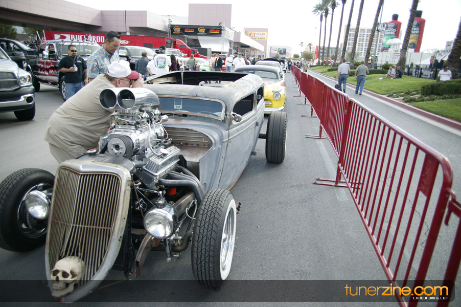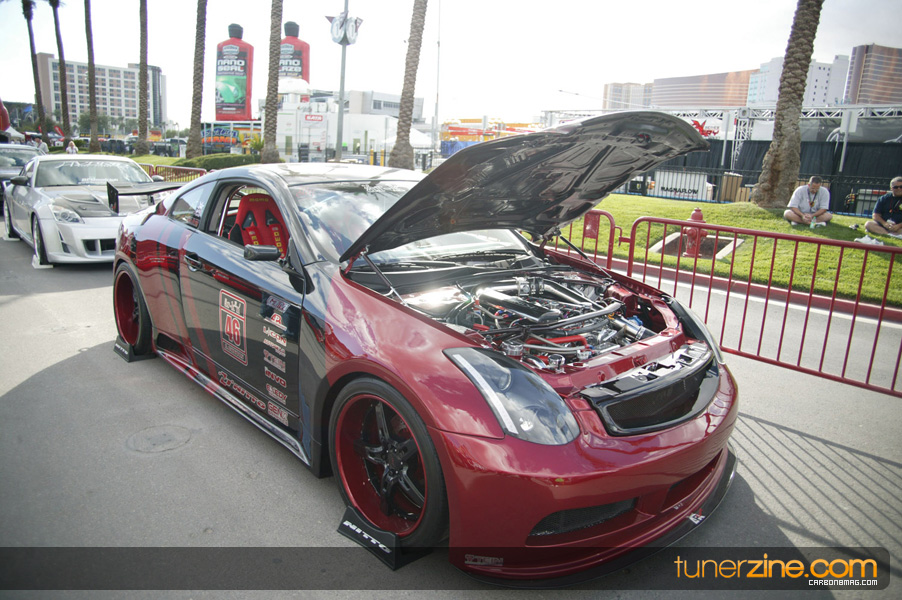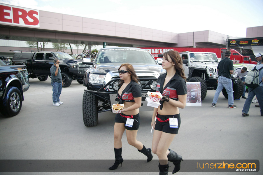 Each year in Las Vegas members of the automotive community and industry gather together in Las Vegas for one of the largest conventions in the world. Hundreds of thousands of people gather around the large halls looking at project vehicles, new products and talk to potential clients and manufacturers. For some it’s all about fun and games. Take a look around, browse the booths, check out the cars, take pictures with the hot girls and go on and party it out the rest of the day/night. For others it’s all about standing there and watching over your booth trying to attract as much potential sales as possible. No matter whom you are though, when the convention closes each day SEMA turns into a blistering hurricane of night life activities, events and more business. Whether it is parties or OE-hosted leisure dinners, there’s always something to do the second you leave the floor of the convention center. For us however, it’s all about capturing what SEMA is and taking a close good look at where our industry is heading for 2009. As many of us know, the declining economy has startled the automotive aftermarket with many manufacturers pulling out of the show last minute, as well as declining sales resulting in some, let’s say, less than favorable decisions. Regardless though, we were excited to see what the industry had in store for us and see how they were going to fight back against the economy and help ride the wave and keep our industry thriving and growing. The first thing we noticed was definitely the re-emergence of domestic vehicles in overwhelming the presence of the show floor as well as the outside vehicles. The new Nissan GT-R were a plentiful, in fact they became borderline mundane at SEMA. But then again, if it is anywhere in the world where the GT-R would be commonplace it would be at this show. The presence of luxury and high end automobiles was overwhelming. It almost seems like many of the companies are progressing through showcasing the ‘bling’ along with their products. This was especially true in the wheel and tire hall, where it often was a mixture of sport compact and luxury and high end automobiles. While we missed one of our favorite manufacturers, GReddy, at the show, other dominant partners including HKS and AEM were on hand. AEM continued to show their excellence in product development and marketing by showcasing their two-time Formula D championship 350Z and Stephan Papadakis’ own S2000. By now many of you have heard through the rumor mill that Tanner Foust will be piloting an AEM converted Scion tC for next year’s season. We can’t wait to see it. The Hyundai Genesis also received plenty of buzz over the year and we were happy to see some of them come to fruition, especially in the HKS booth. Their red Hyundai was absolutely stunning and killer, something we thought we’d never associate to a vehicle sporting that moniker. Nonetheless we’re excited to see how Rhys Millen’s Genesis fares in Formula D competition, and there was plenty of coverage from that vehicle. Leading up to the show, we followed around the boys from Theory Communications and got the inside look at the Tjin Edition Pontiac G8 and Tjin Edition Honda Fit. Both were respectively showcased in their booths with the Pontiac G8 winning Best Exterior Design Award from GM. Congratulations to the Tjin Edition team on another year well done with projects. NOS Energy Drink continued to impress with their Naughty NOS Girls Alicia Whitten and Corissa Furr on display. They weren’t the only beautiful girls to be on the show floor however. Falken Tires as always was one of our favorite booths to visit; this year showcasing a wide range of vehicles and plenty of models for us to ogle over. We’d like to leave thinking that the industry is doing well and thriving, but our gut instinct was that this year was a cautious year for many. Some were extra careful in not spending the funds necessary for an entire week at SEMA, while others made a strong push during the weaker economy. You know what they say: those that advertise during a recession win out at the other end. So tons of respect goes out to the companies that continued to pursue and support the industry despite hard and trying financial times for many. We definitely didn’t feel the same buzz and excitement as usual, and while the new products were plentiful, nothing was ground breaking. This is on par with the entire industry wanting to play it safe and make what works, what sells, not what innovates. The overwhelming presence of 30k-40k European automobiles tuned to perfection however is definitely a sign of things to come. It’s no longer a Japanese-made model world out there, Europeans are becoming extremely popular, especially with the E92 335i and M3 on the market, affordable C-class with stylish lines and Porsches aplenty. The new Evo X has already made a strong mark with the aftermarket, and the 350Z/G35/G37 continues to stay strong. Nevertheless we were excited to put an end to another arduous week at SEMA and we hope you enjoy the coverage photos. We’ll keep an ear to the ground and report back as much as we can over the course of the next couple of days as we continue to update with more and more coverage.