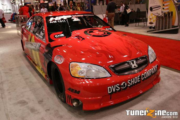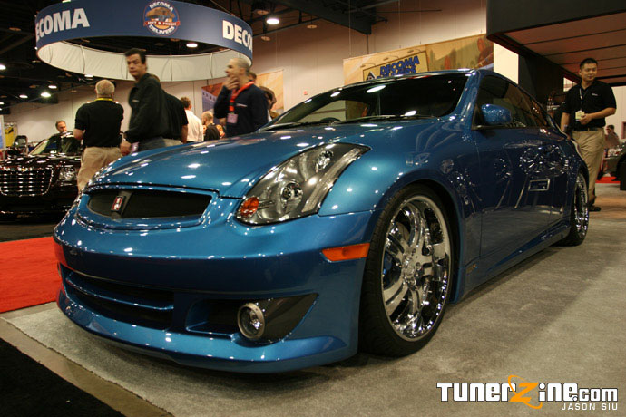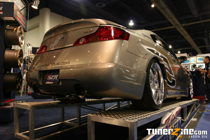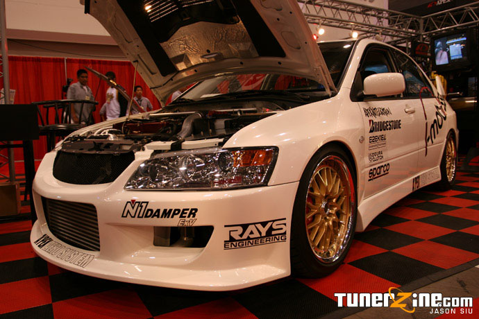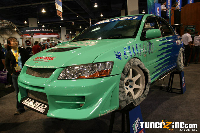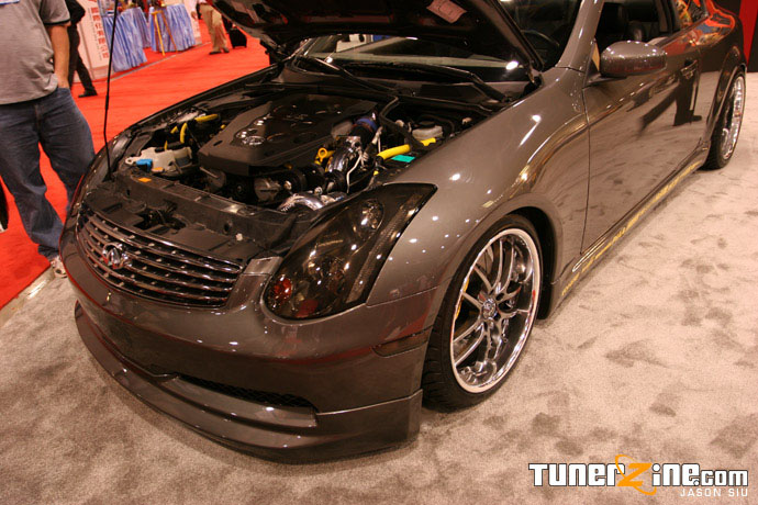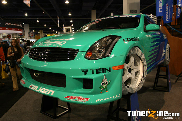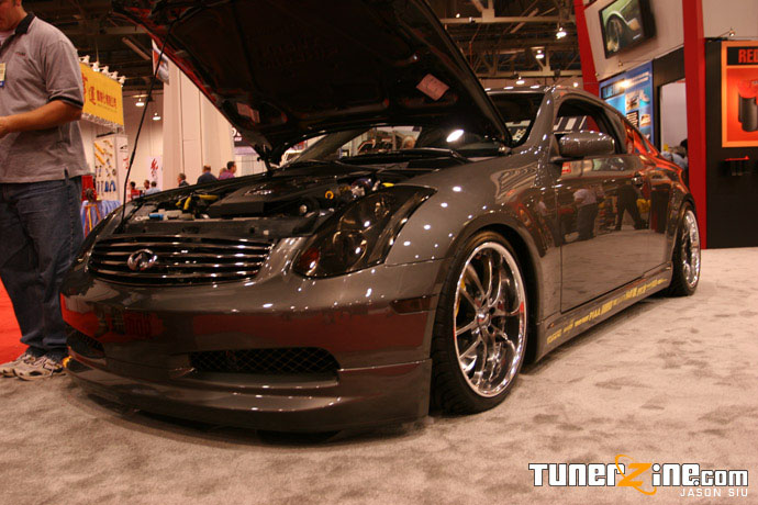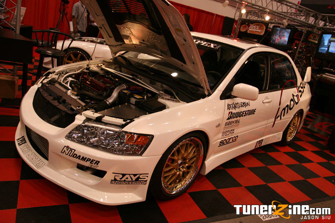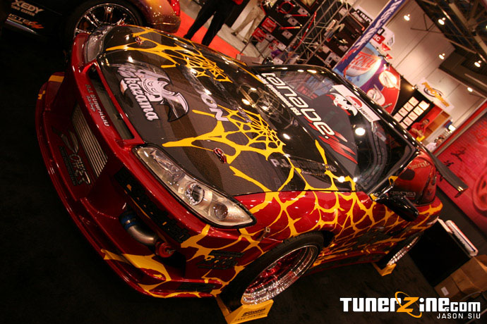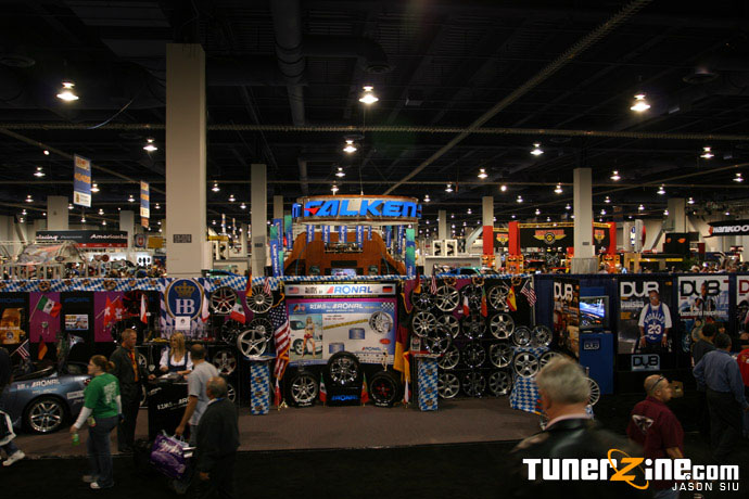 Starting off on Tuesday, I walked around just to breathe in the entire show and scout out which halls to shoot. I ended up running into a lot of people, and that took up most of my time, including meetings. Once I got the ball rolling and started shooting, I kept circling the same areas, getting lost within the same hall. It was just crazy how big it was. Mackin made a huge impression with their new line of Volk wheels, including the GT-V displayed on their 350Z. Speaking of 350Zs, they were definitely one of the more popular vehicles present. The G35s made their stance, as did the Evolution 8s and Subaru WRXs. Long gone is the once-dominant scene of Hondas. AWD and RWD now take up the floor. The Scion tC was a huge hit, as were the xBs. The tuner hall was packed with new toys and builds.