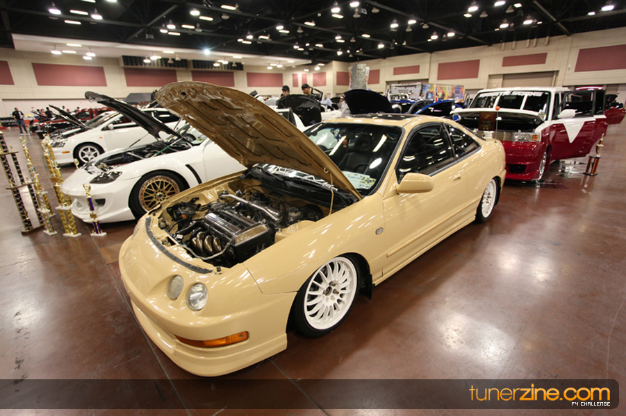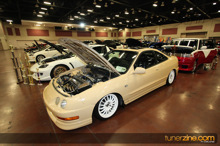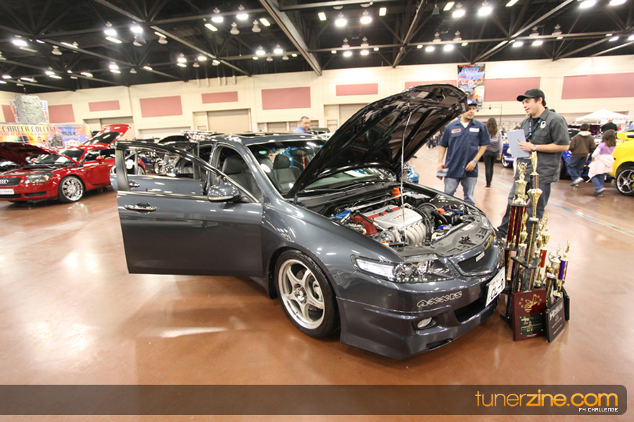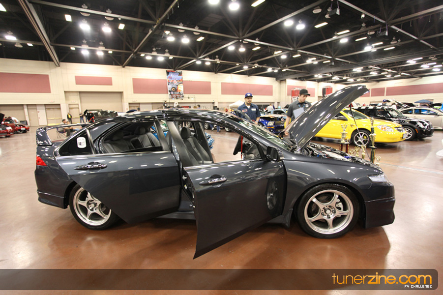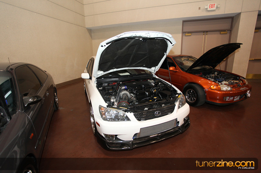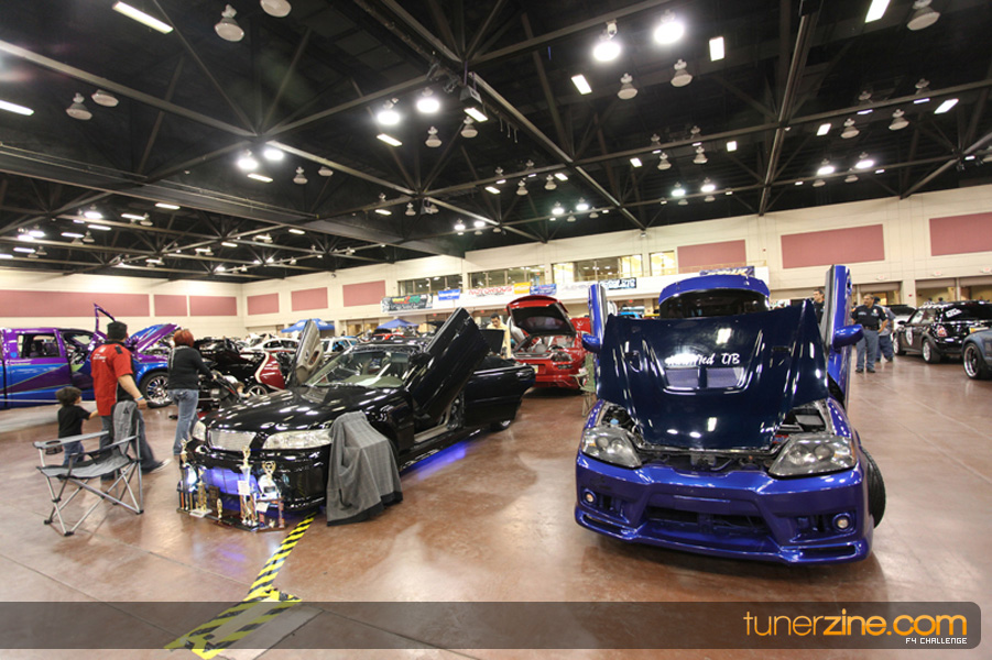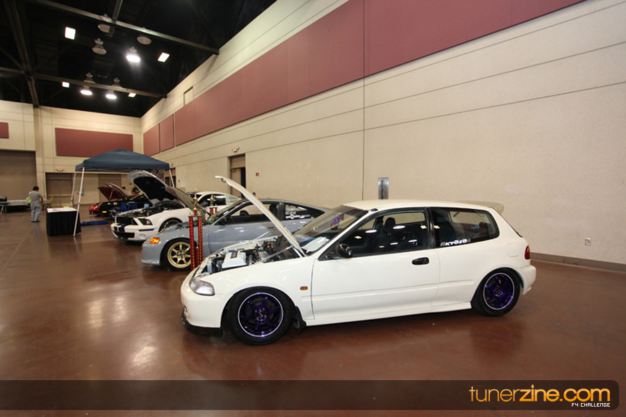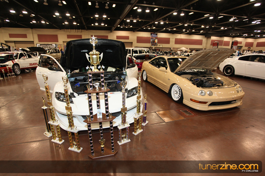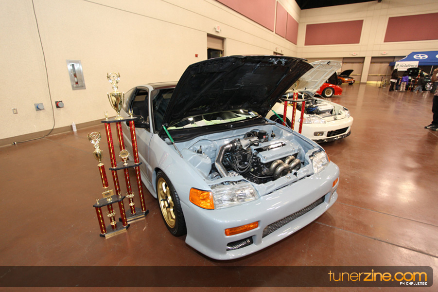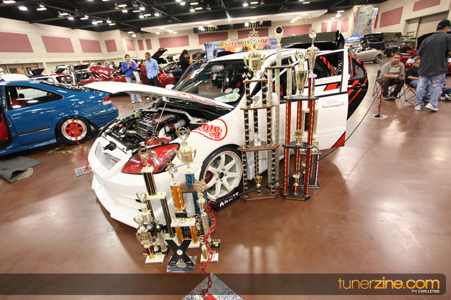 This event was the kick off of the F4 Challenge Chase to the series’ finale. Making a big presence was Team Notorious showcasing 25 of their members’ rides; including a Wild Chevy Cobalt owned by William Elmer. Team Elite Fusion also brought out their wild Mercedes 430 owned by Jason Hazelton and their wide body BMW owned by Bert Lazaras. Teams RPM and SVS Performance made their presence know too, and to our surprise, hiding on the far wall was a steel blue CRX owned by Ramone Briones – that to most looked basic but with its shaved and tucked engine bay, molded kit and every nut and bolt having been replaced with Mugen counterparts, it was easy to see who was taking home top honors of the event and recipient of the first ever Experienced Diamond Chase Plaque. Also let’s not forget one of the cleanest TSX’s ever seen owned by Joe Cruz winner of the Amateur Diamond Award. If you missed Super Tunerz Showoff, be sure to keep an eye out on their website as F4 Challenge will be teaming up with them again in 2009.