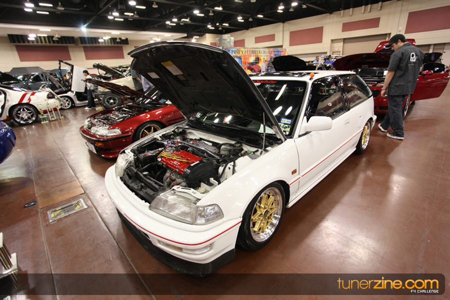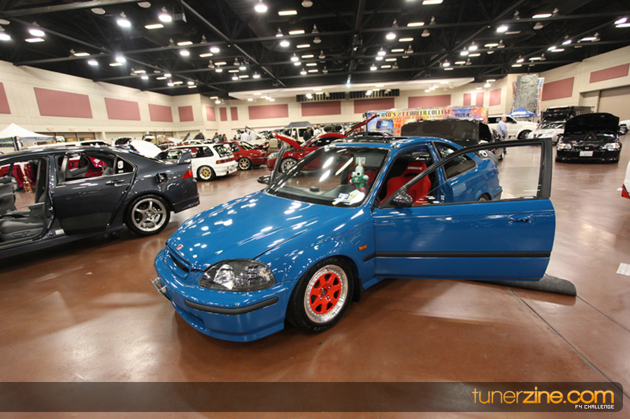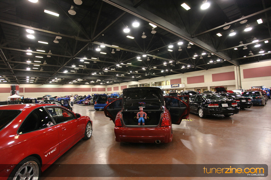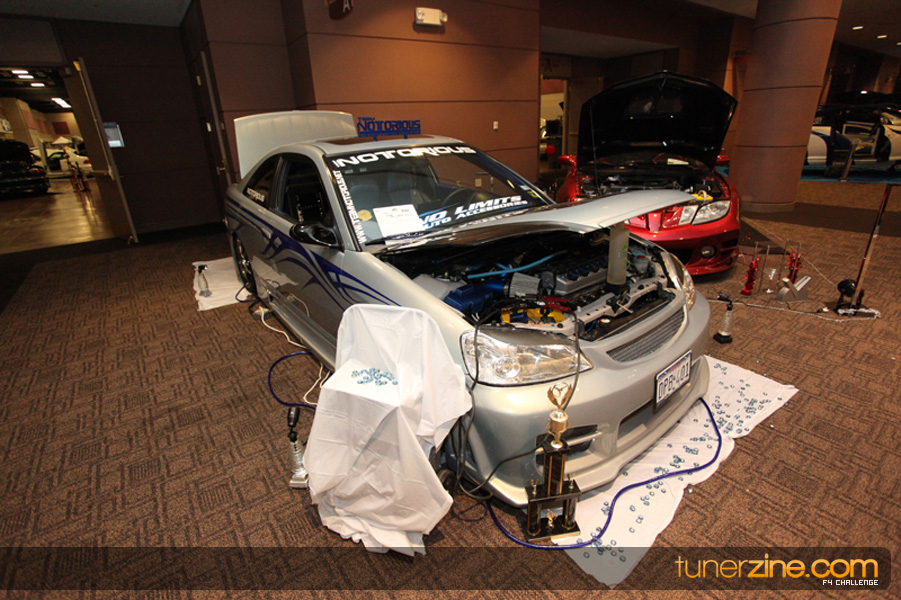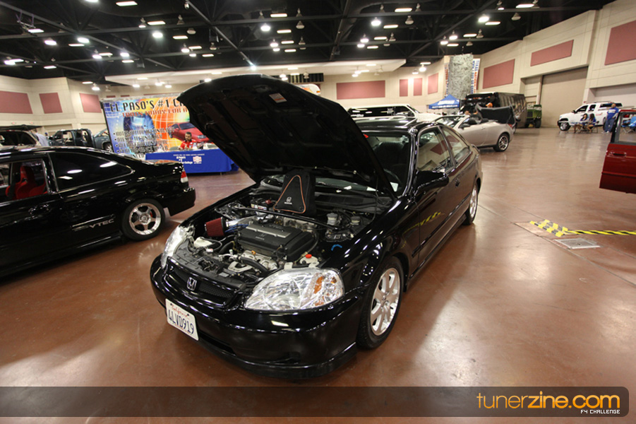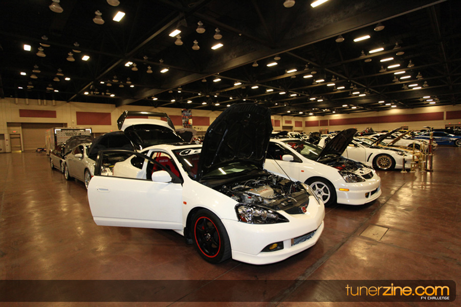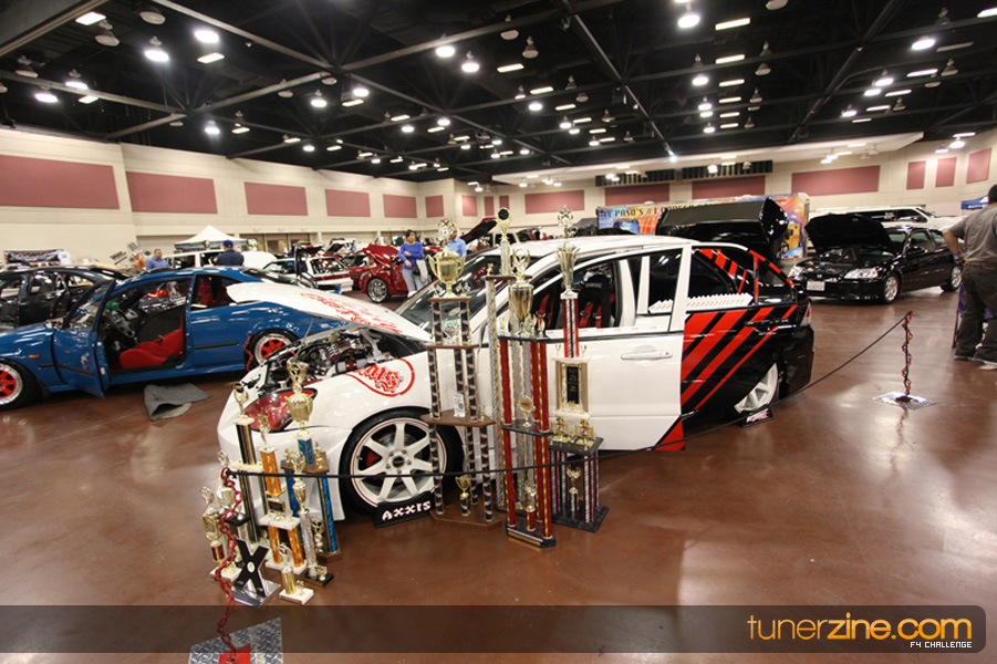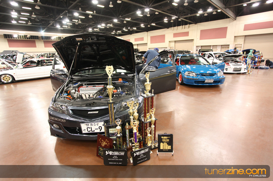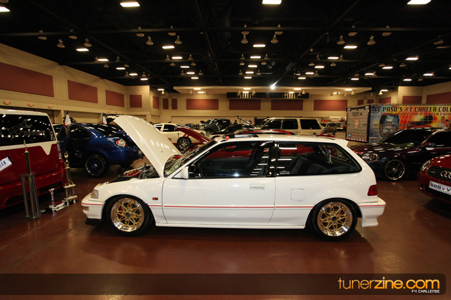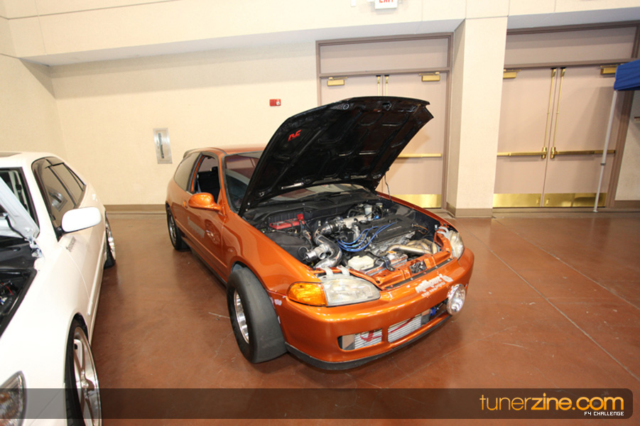 This event was the kick off of the F4 Challenge Chase to the series’ finale. Making a big presence was Team Notorious showcasing 25 of their members’ rides; including a Wild Chevy Cobalt owned by William Elmer. Team Elite Fusion also brought out their wild Mercedes 430 owned by Jason Hazelton and their wide body BMW owned by Bert Lazaras. Teams RPM and SVS Performance made their presence know too, and to our surprise, hiding on the far wall was a steel blue CRX owned by Ramone Briones – that to most looked basic but with its shaved and tucked engine bay, molded kit and every nut and bolt having been replaced with Mugen counterparts, it was easy to see who was taking home top honors of the event and recipient of the first ever Experienced Diamond Chase Plaque. Also let’s not forget one of the cleanest TSX’s ever seen owned by Joe Cruz winner of the Amateur Diamond Award. If you missed Super Tunerz Showoff, be sure to keep an eye out on their website as F4 Challenge will be teaming up with them again in 2009.
