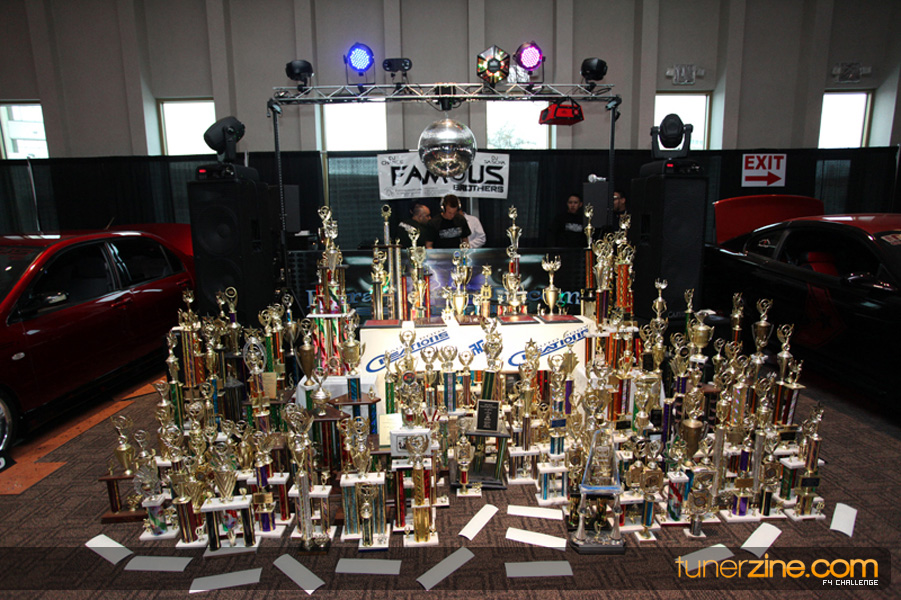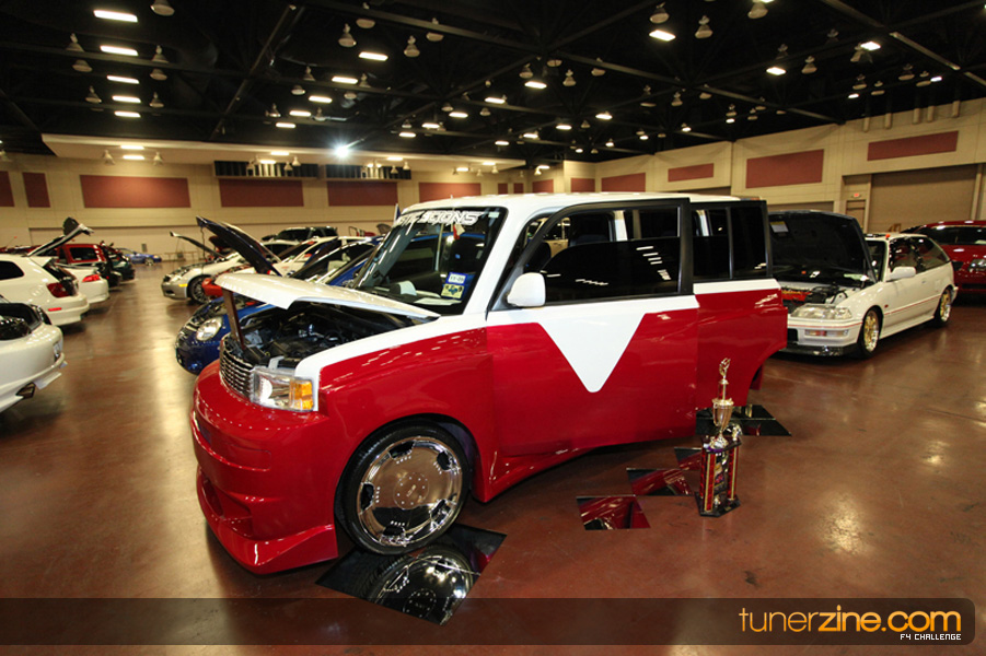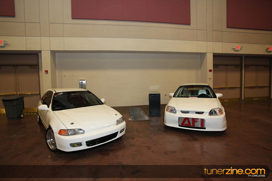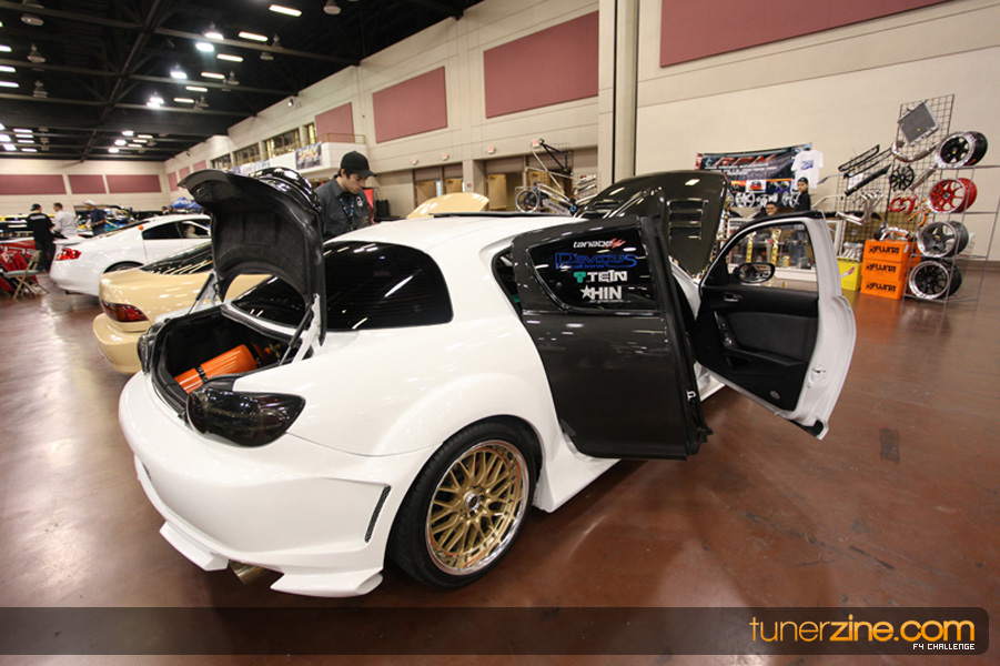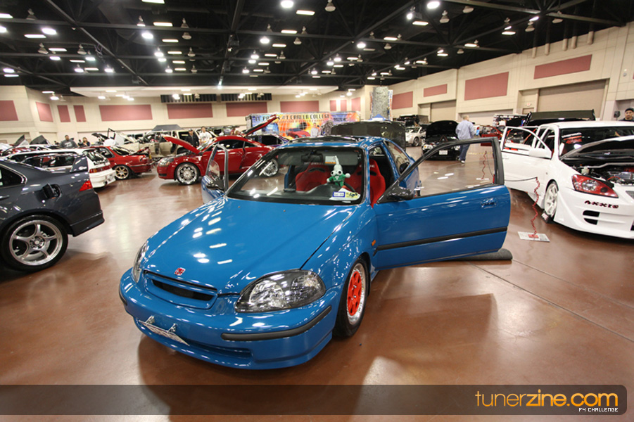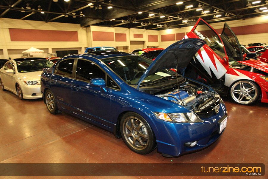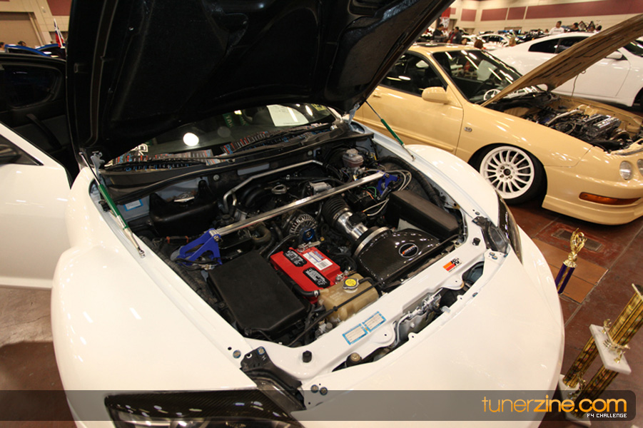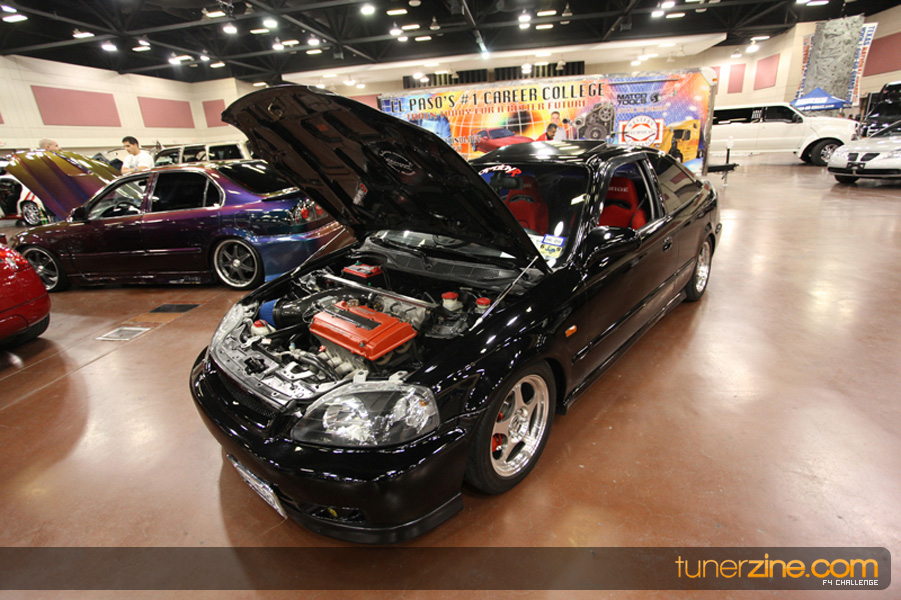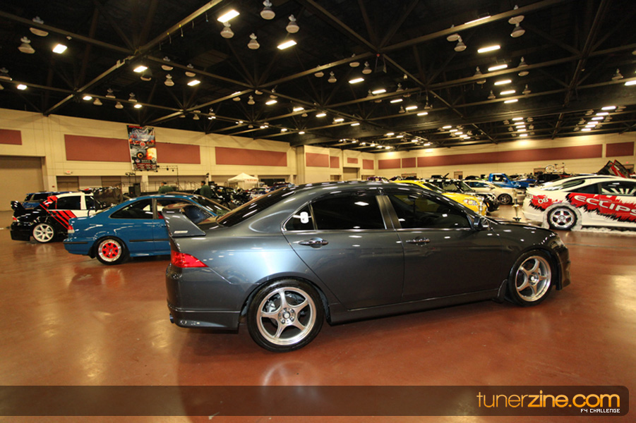 This event was the kick off of the F4 Challenge Chase to the series’ finale. Making a big presence was Team Notorious showcasing 25 of their members’ rides; including a Wild Chevy Cobalt owned by William Elmer. Team Elite Fusion also brought out their wild Mercedes 430 owned by Jason Hazelton and their wide body BMW owned by Bert Lazaras. Teams RPM and SVS Performance made their presence know too, and to our surprise, hiding on the far wall was a steel blue CRX owned by Ramone Briones – that to most looked basic but with its shaved and tucked engine bay, molded kit and every nut and bolt having been replaced with Mugen counterparts, it was easy to see who was taking home top honors of the event and recipient of the first ever Experienced Diamond Chase Plaque. Also let’s not forget one of the cleanest TSX’s ever seen owned by Joe Cruz winner of the Amateur Diamond Award. If you missed Super Tunerz Showoff, be sure to keep an eye out on their website as F4 Challenge will be teaming up with them again in 2009.