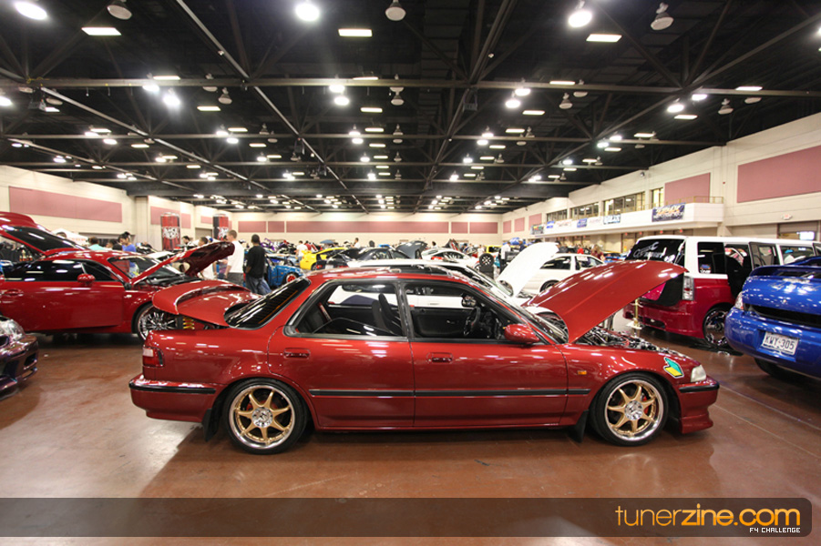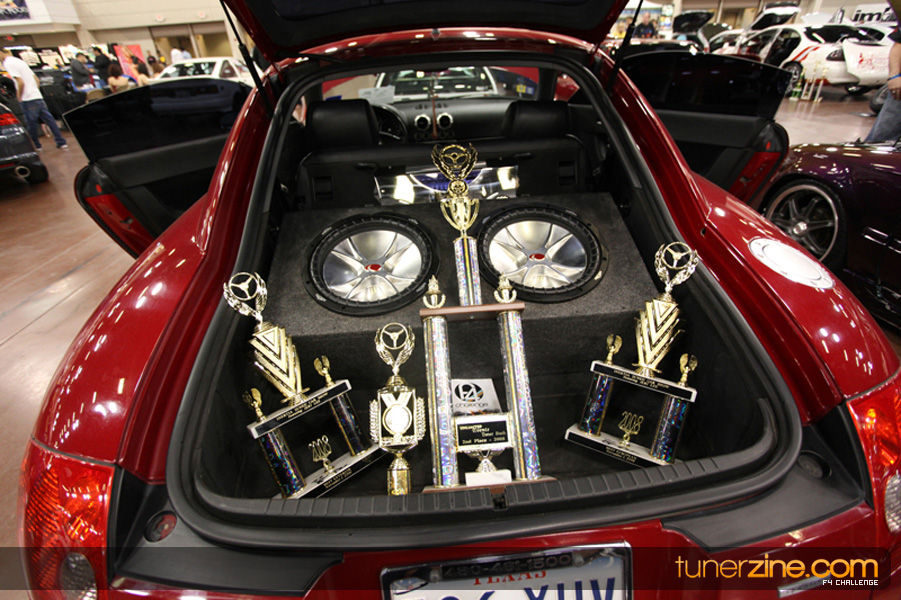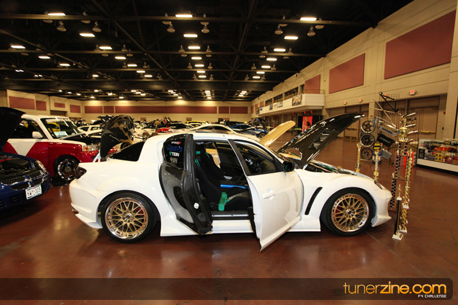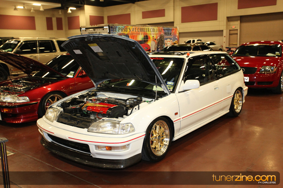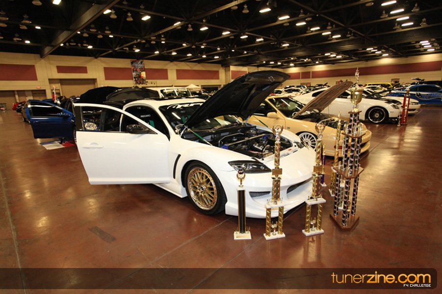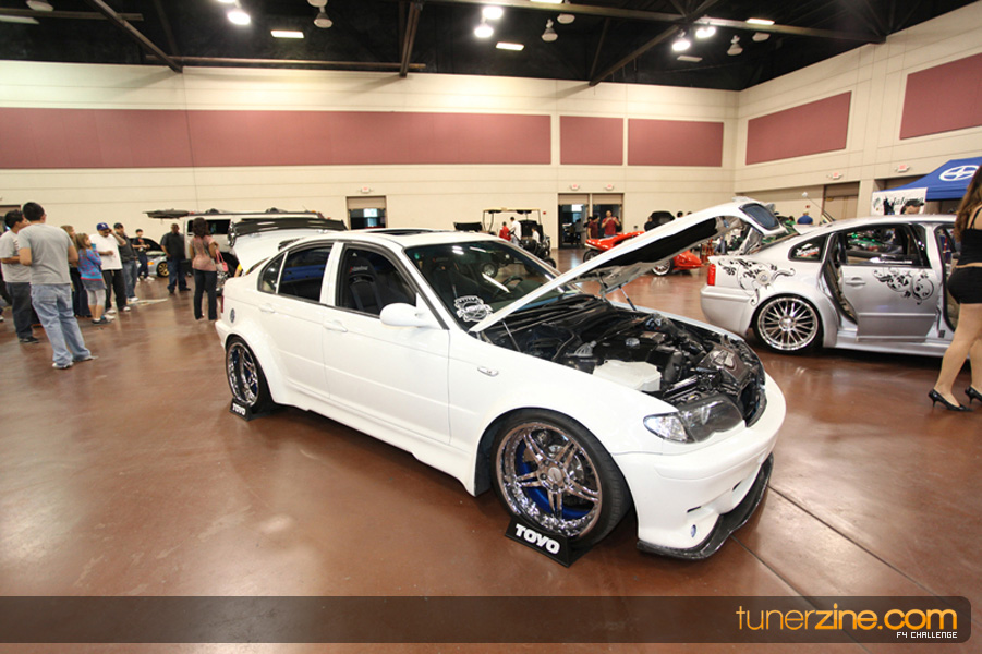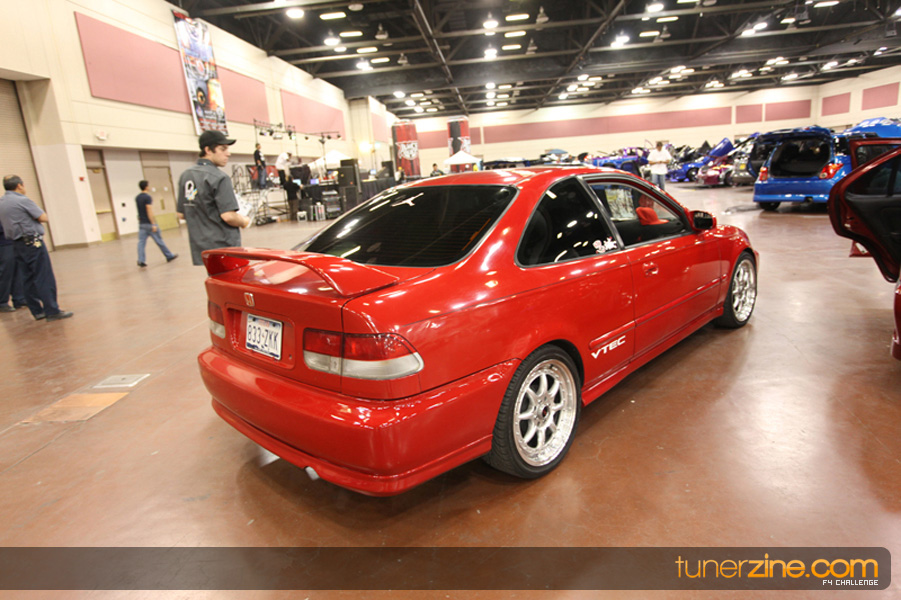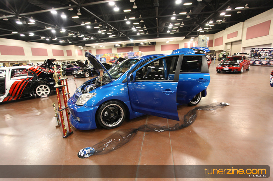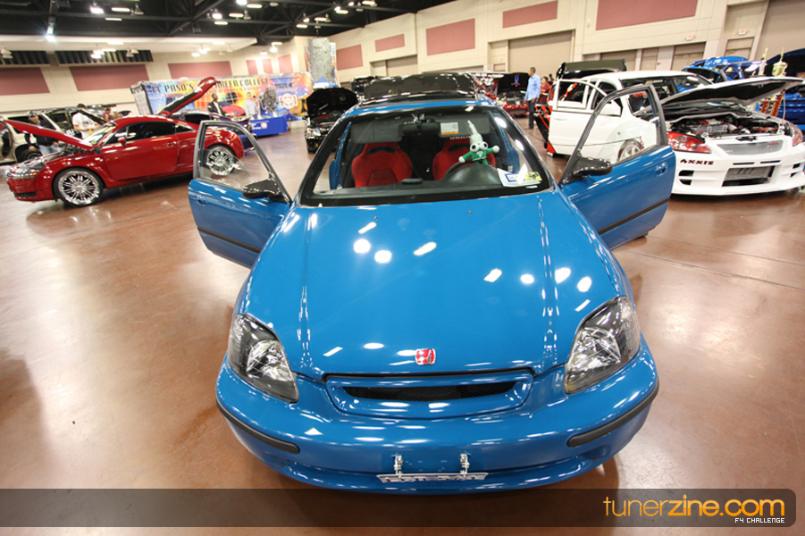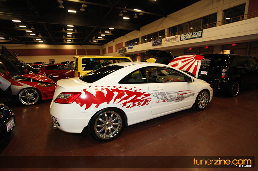 This event was the kick off of the F4 Challenge Chase to the series’ finale. Making a big presence was Team Notorious showcasing 25 of their members’ rides; including a Wild Chevy Cobalt owned by William Elmer. Team Elite Fusion also brought out their wild Mercedes 430 owned by Jason Hazelton and their wide body BMW owned by Bert Lazaras. Teams RPM and SVS Performance made their presence know too, and to our surprise, hiding on the far wall was a steel blue CRX owned by Ramone Briones – that to most looked basic but with its shaved and tucked engine bay, molded kit and every nut and bolt having been replaced with Mugen counterparts, it was easy to see who was taking home top honors of the event and recipient of the first ever Experienced Diamond Chase Plaque. Also let’s not forget one of the cleanest TSX’s ever seen owned by Joe Cruz winner of the Amateur Diamond Award. If you missed Super Tunerz Showoff, be sure to keep an eye out on their website as F4 Challenge will be teaming up with them again in 2009.