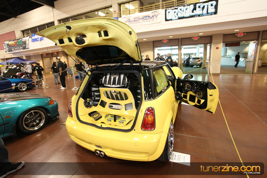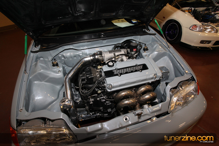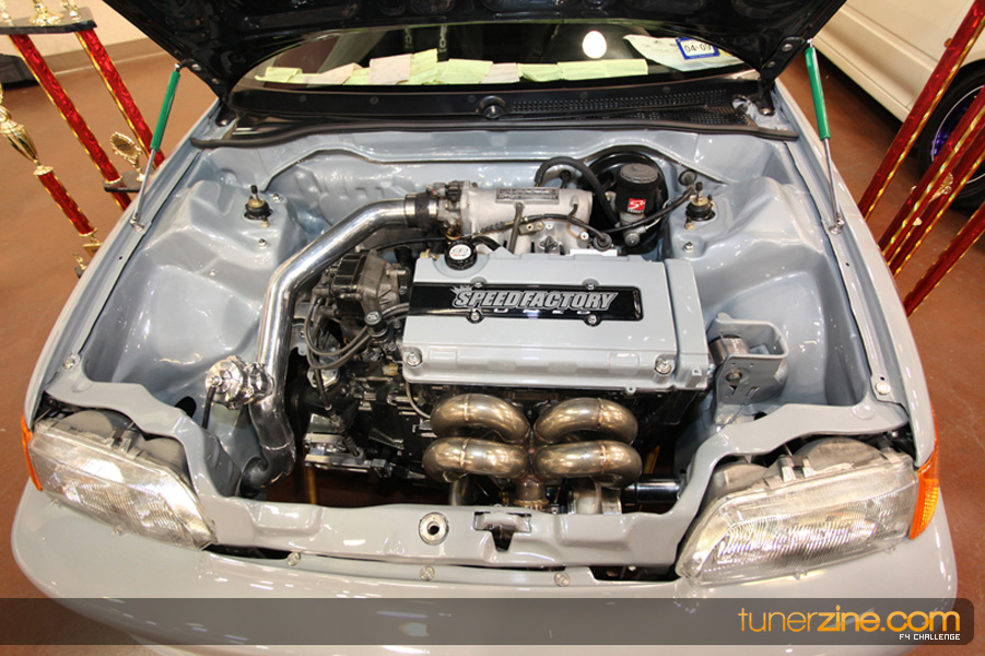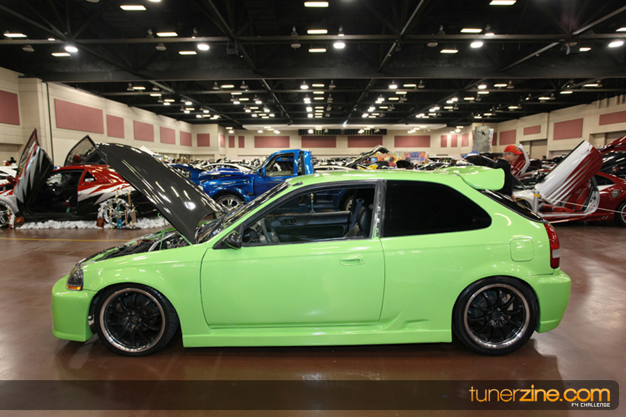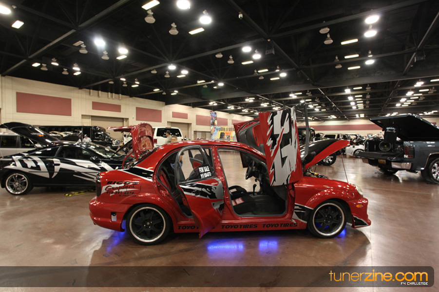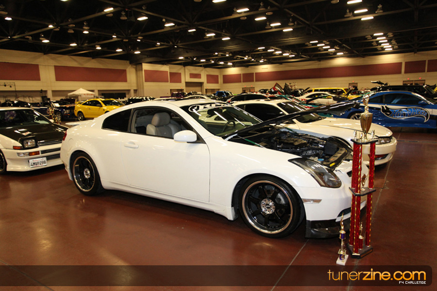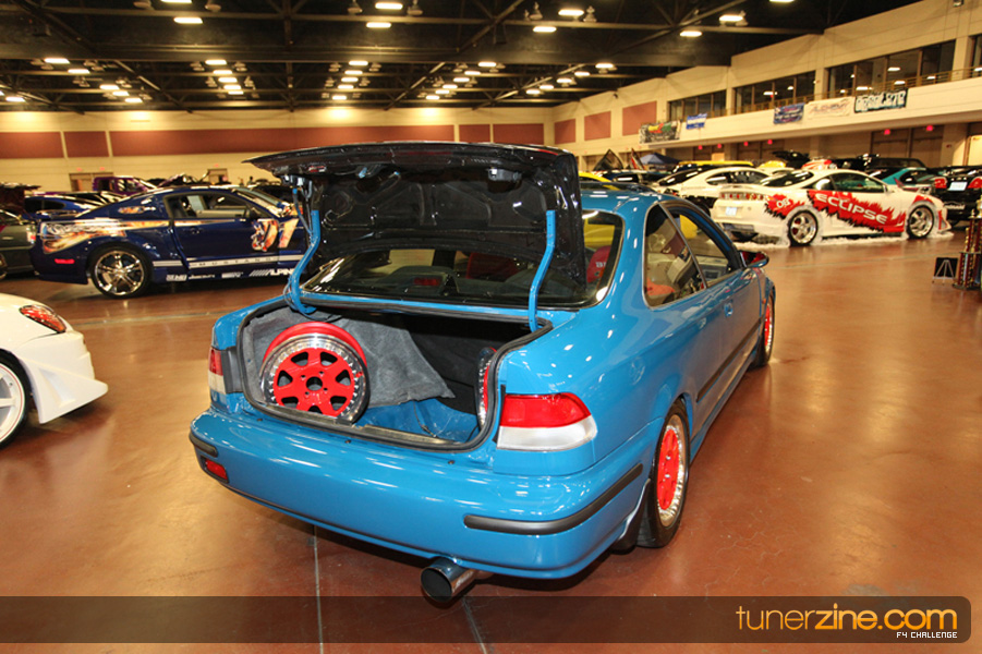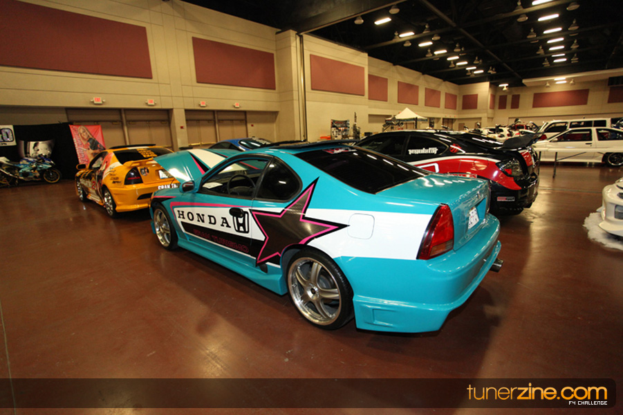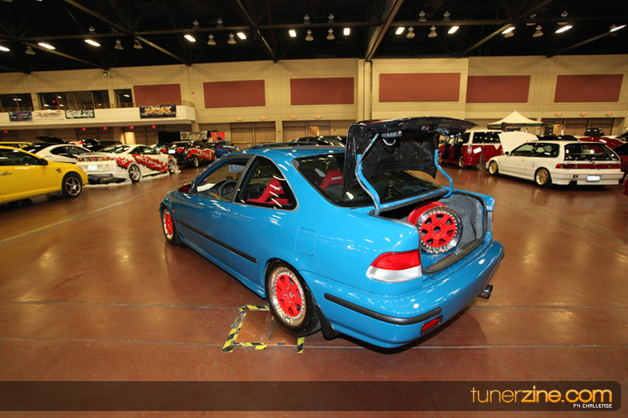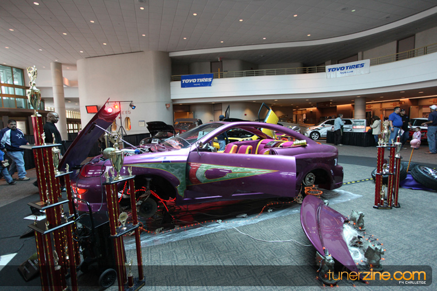 This event was the kick off of the F4 Challenge Chase to the series’ finale. Making a big presence was Team Notorious showcasing 25 of their members’ rides; including a Wild Chevy Cobalt owned by William Elmer. Team Elite Fusion also brought out their wild Mercedes 430 owned by Jason Hazelton and their wide body BMW owned by Bert Lazaras. Teams RPM and SVS Performance made their presence know too, and to our surprise, hiding on the far wall was a steel blue CRX owned by Ramone Briones – that to most looked basic but with its shaved and tucked engine bay, molded kit and every nut and bolt having been replaced with Mugen counterparts, it was easy to see who was taking home top honors of the event and recipient of the first ever Experienced Diamond Chase Plaque. Also let’s not forget one of the cleanest TSX’s ever seen owned by Joe Cruz winner of the Amateur Diamond Award. If you missed Super Tunerz Showoff, be sure to keep an eye out on their website as F4 Challenge will be teaming up with them again in 2009.