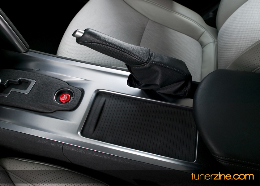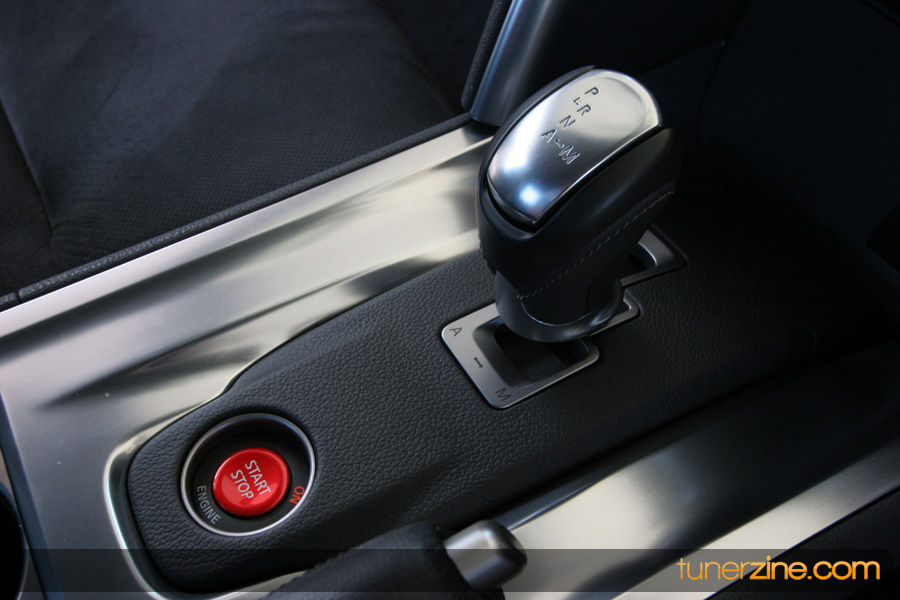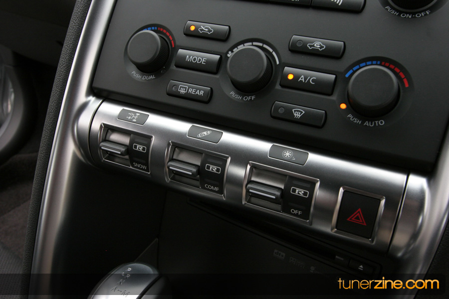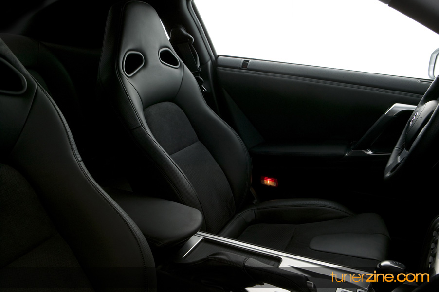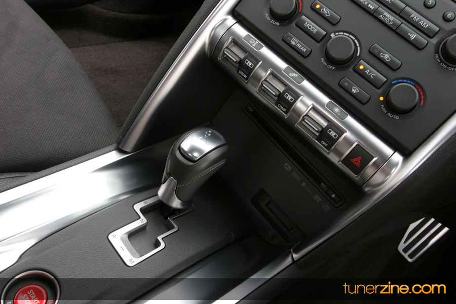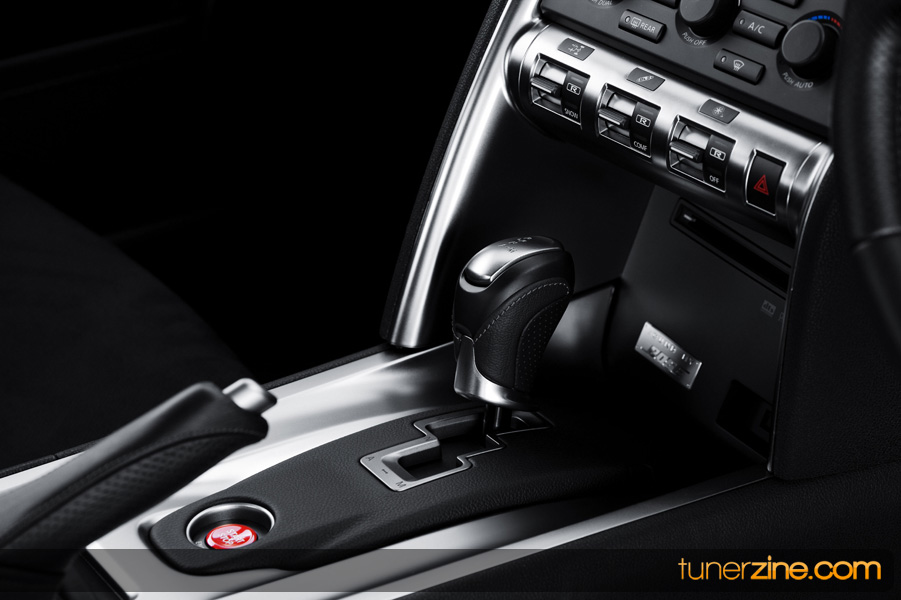 Sculpted performance bucket seats give the driver and passenger a comfortable driving experience, and soft pads are utilized on the dash in front of the passenger and both doors to give an extra level of comfort. The rear transaxle layout of GT-R, with a flat floor and narrow center tunnel, allows GT-R to have an optimal driving position.