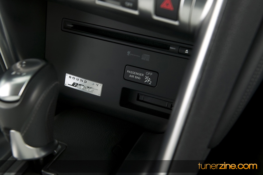 An available specially-designed 11-speaker Bose® audio system features two forward-facing woofers in the rear center armrest area. Rigid aluminum die cast panel-mounting of all speakers allowed Bose engineers to perfect the acoustical performance of the GT-R sound system.