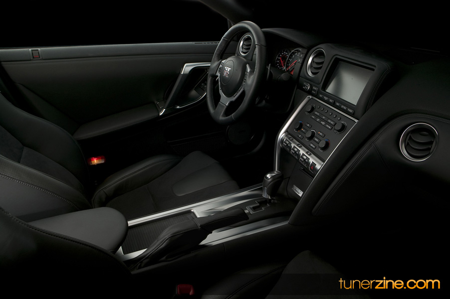 Under the hood, the Nissan GT-R features an all-new hand-built VR series 3.8-liter twin turbo V6 producing 480 horsepower @ 6,400 rpm and 430 lb-ft of torque @ 3,200 to 5,200 rpm, while meeting ultra-low emission vehicle (ULEV) standards.
