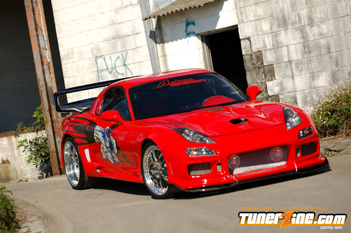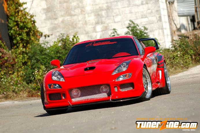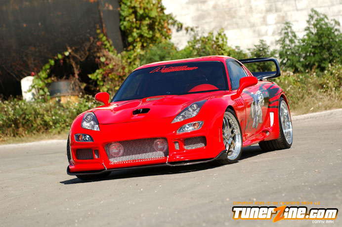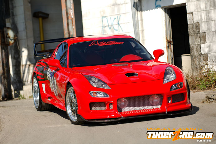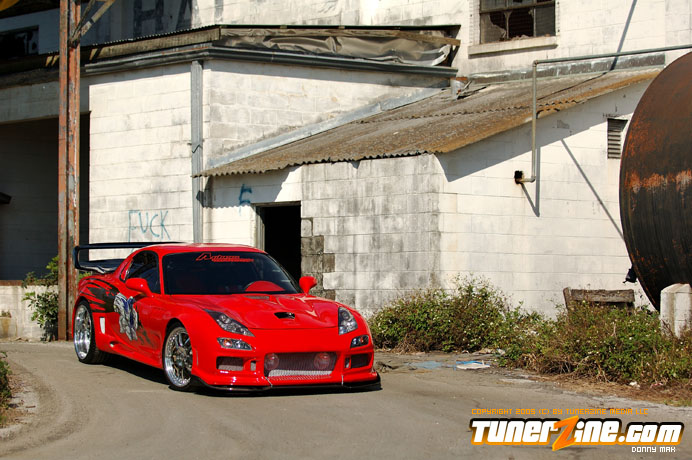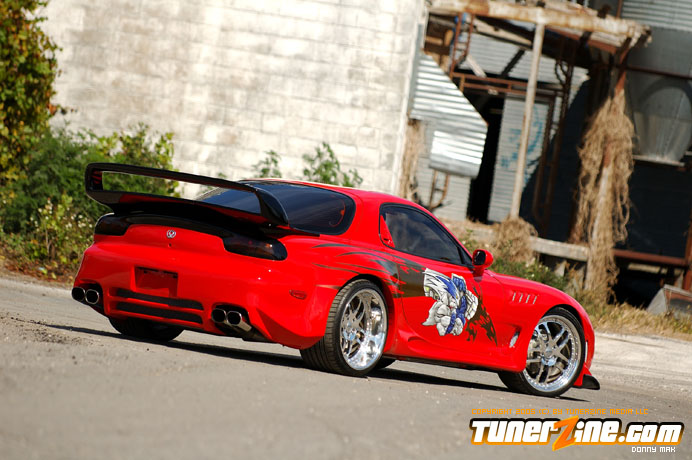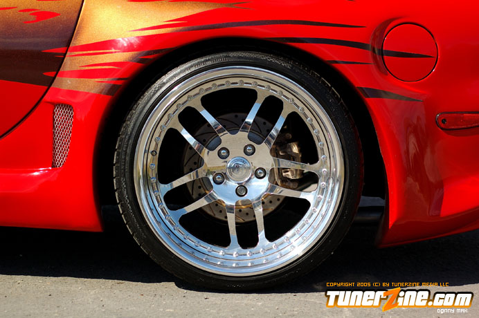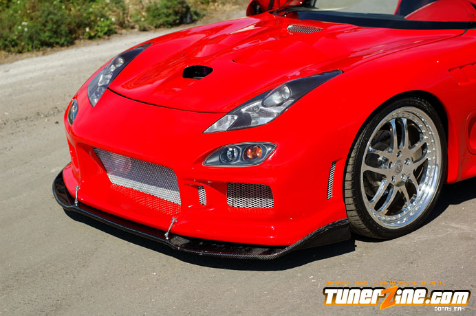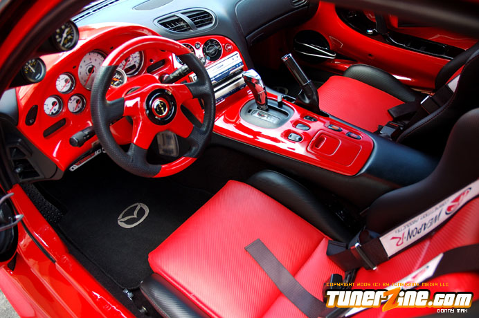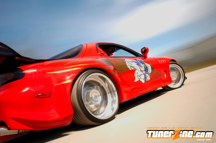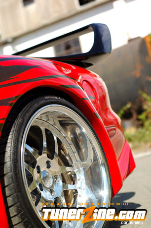 Contrasting the look of the Endless RX-7 that we’re also featuring this month is a Florida conversion that really drove the crowd wild at the shows this year. With its Viper Red paint and Toyota Celica headlight conversion, this RX-7 set the tone for personal customization. Plenty of custom body work including a molded on C-West front bumper, molded on Erebuni side skirts, and molded on Erebuni rear bumper, this RX-7’s body is as sleek and smooth as they get. Finishing it off with a custom rear widebody kit, a vertical door kit and graphics, it’s a no surprise people couldn’t keep their eyes off.