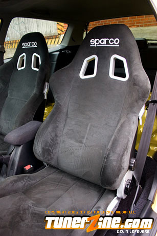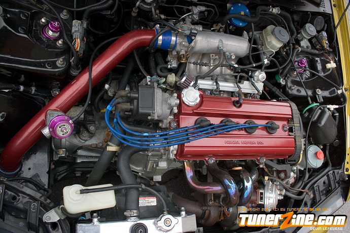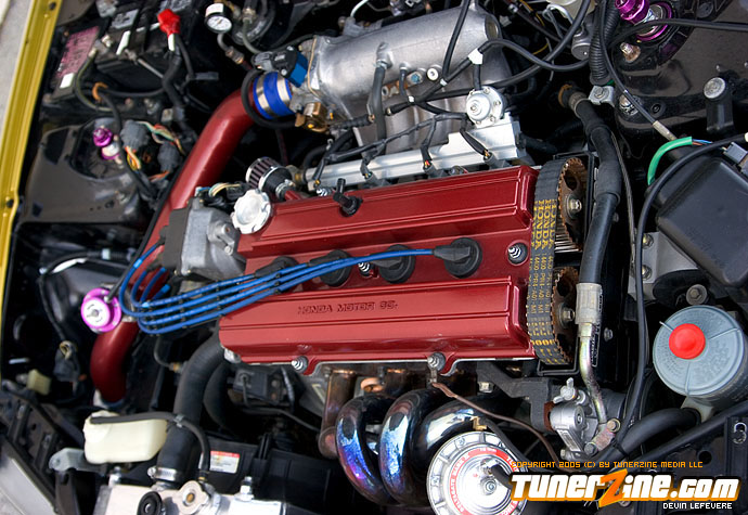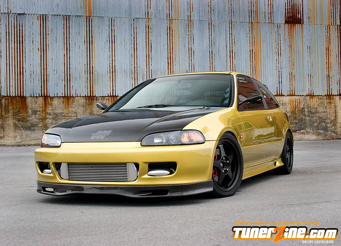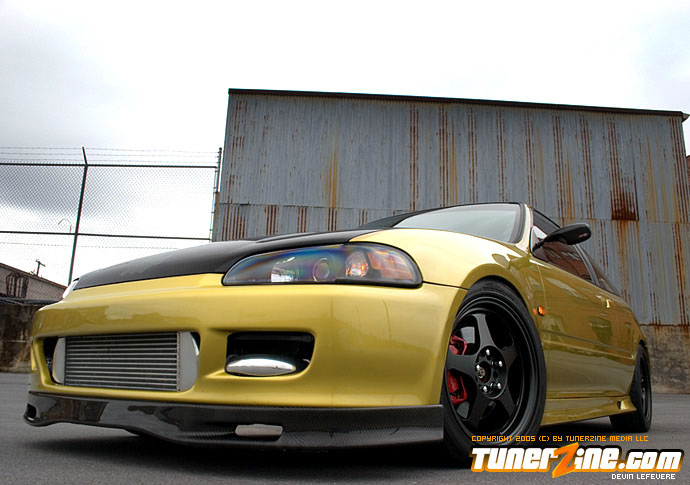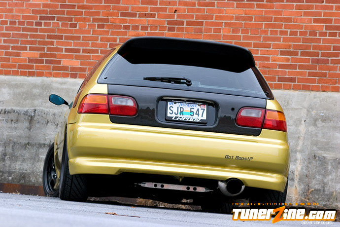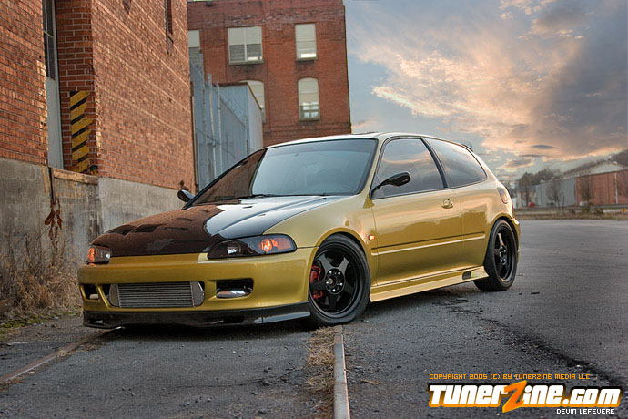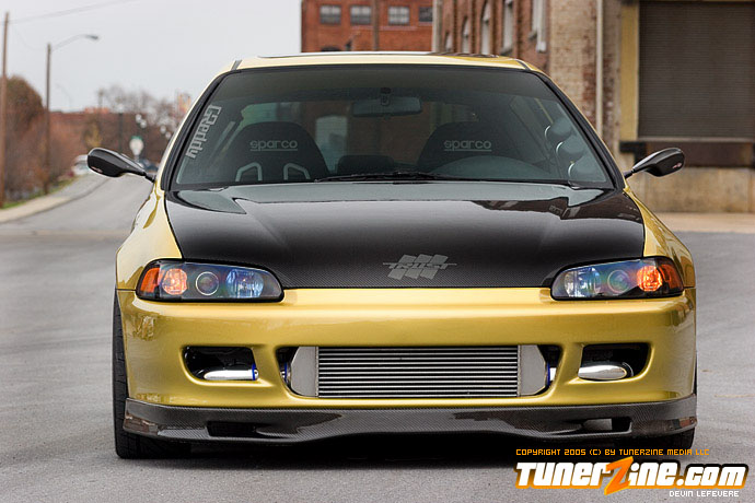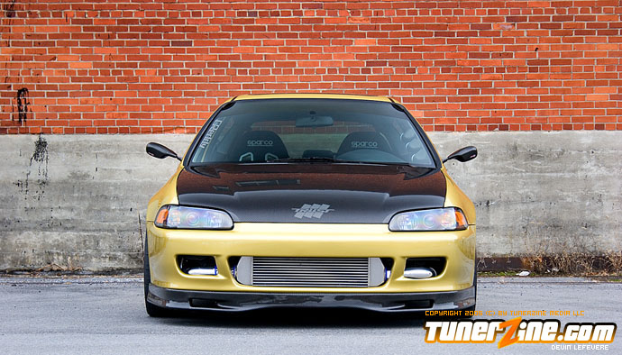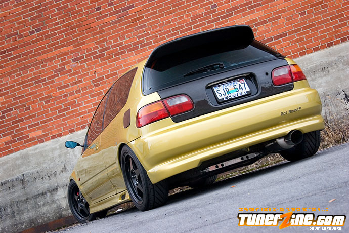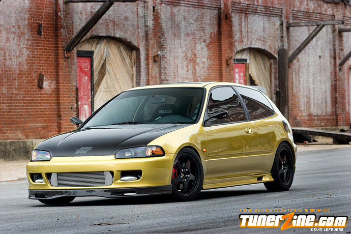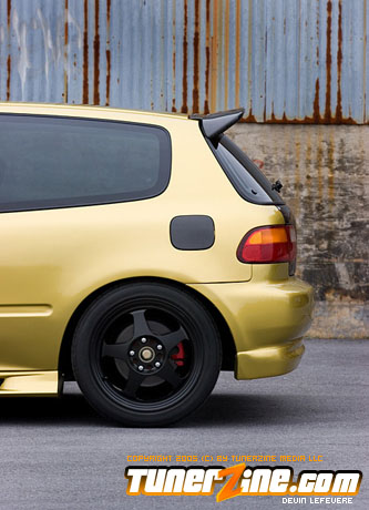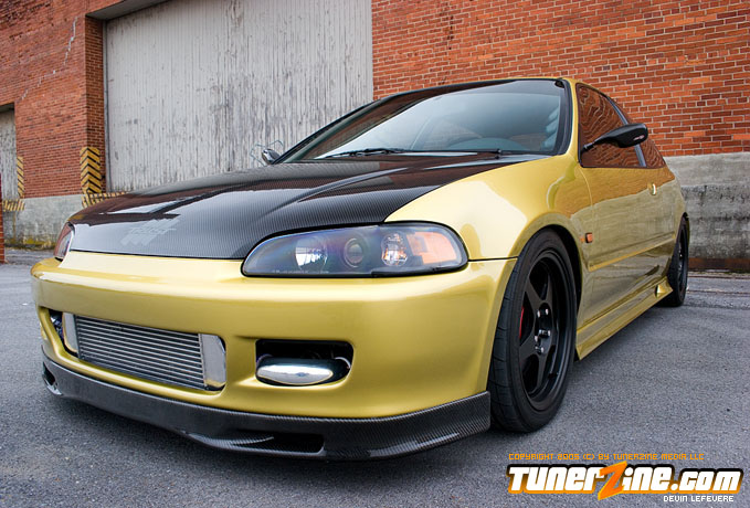 Let’s face it, no matter how many EG hatchbacks we see and how many we feature, there will always be more that are done in a fashion that we just have to give them the spotlight. This EG had more than just a few things that set it apart from the rest we’ve featured. From the swapped LS motor to the Precision SC61 turbo underneath the hood, there were a few things we wanted to spotlight beyond the exterior. The custom turbo kit consists of the previously mentioned turbo as well as a GReddy blow off valve, AEM fuel rail and fuel pressure regulator, Walbro 255lph fuel pump and Crower stage 2 turbo cams. A large Spearco front mount intercooler can be spied behind the front bumper that is if you can take your eyes off the unique gold finish of the car.