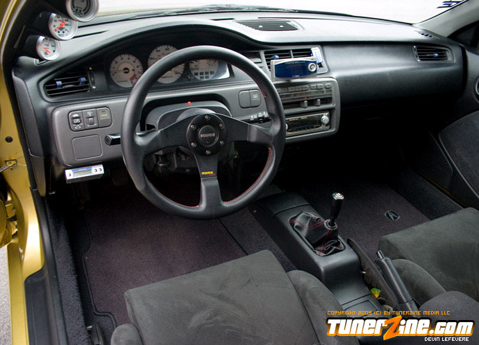 The exterior of the car has been enhanced with Mugen style side skirts and rear lip. VIS carbon fiber goods come in the form of a Spoon Sports style front lip, trunk and duck bill wing. The paint itself is a unique combination of colors mixed together until the owner was content. Needless to say it’s one of a kind and we absolutely dig it.