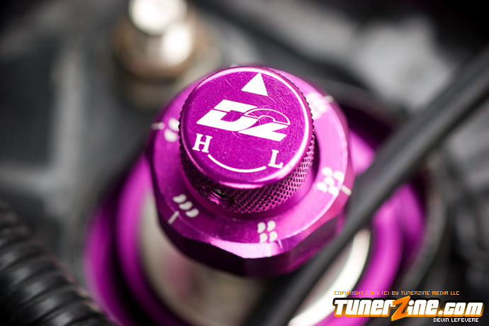 Suspension, wheel and tire wise this EG sticks to its roots. A Type-R 5 lug conversion is mated to a set of 16-inch Rota Slipstream wheels in a flat black finish. D2 equips the hatch with 16-way adjustable coilovers as the stiffer suspension helps put the Yokohama Parada tires to good usage on the track.