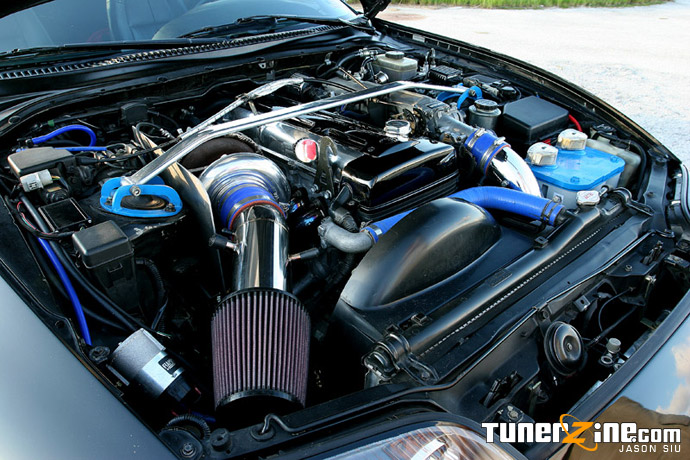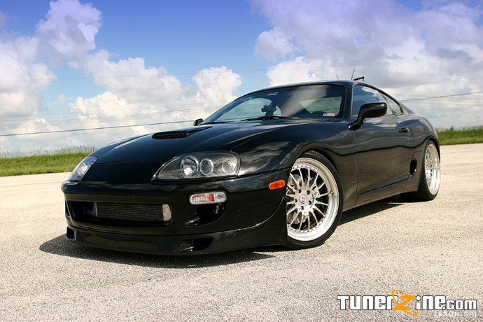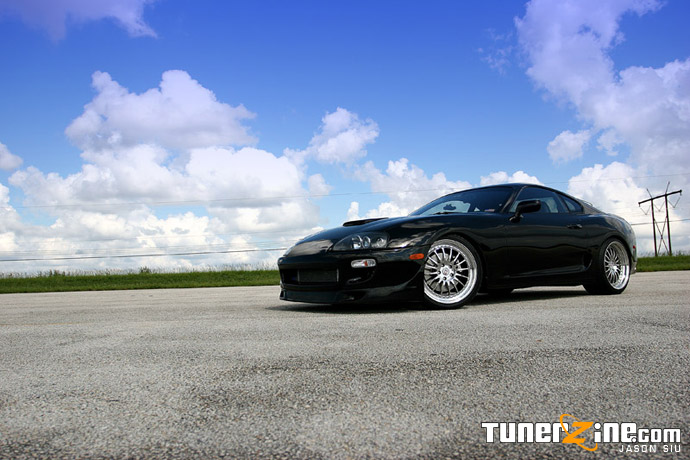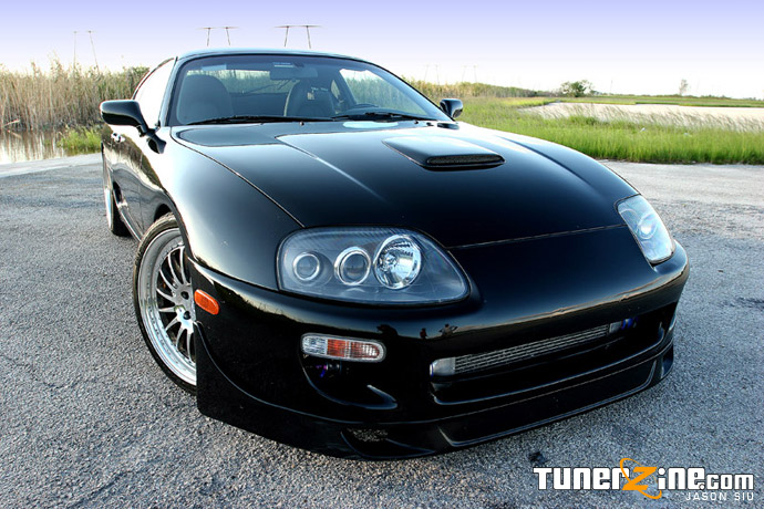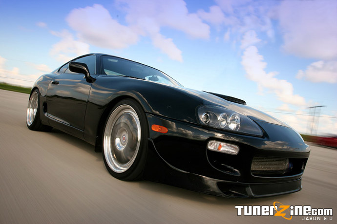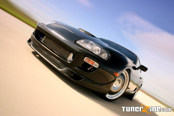 When the Supra first debuted in the States, many people made snide remarks about the spoiler it sported on the rear. To this day, people can still argue about the high spoiler, but there’s no argument here on Danny’s Supra. Danny opted to remove it, giving the Supra a menacing and sleek style throughout the entire car. Accenting the front end is a Wings West lip and a Euro Spec Supra factory hood scoop that just gives a slight hint of what’s underneath in the bay.