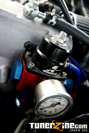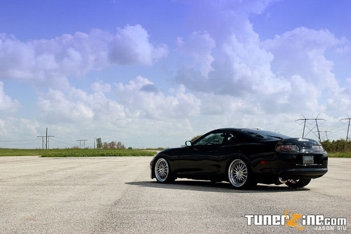 With the exoticness of a Supra, Danny couldn’t settle for any wheels less than HRE’s. Up front are 19×9 HRE 549’s in a fine polished finish, and in the rear is a nice wide pair of 19×11 549’s in a matching finish. Lowered on Eibach Springs, the car sits perfectly on the 19’s.