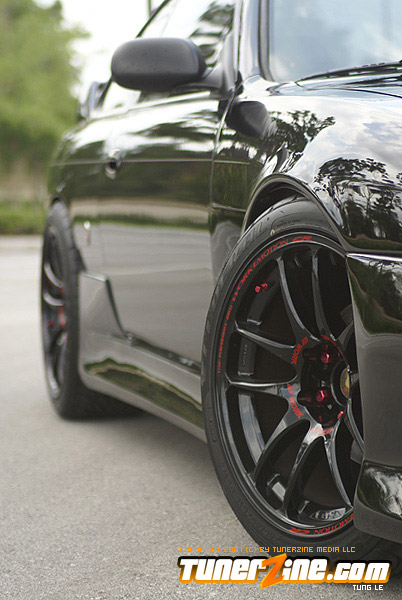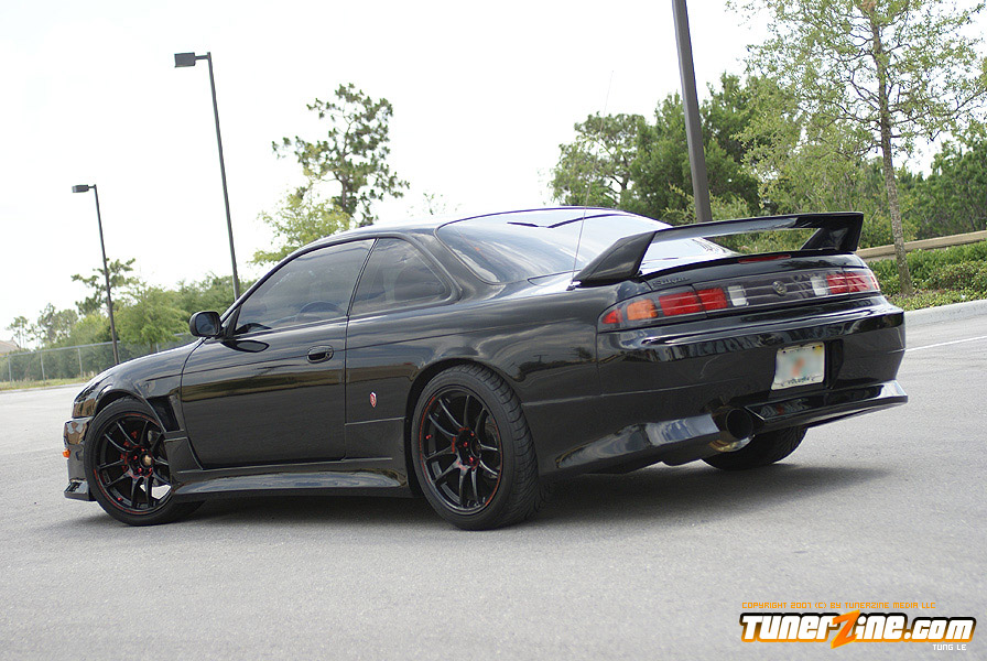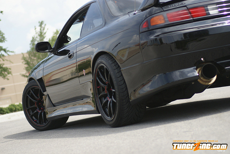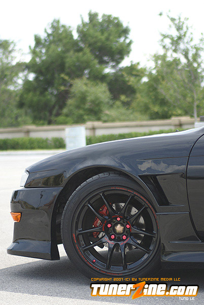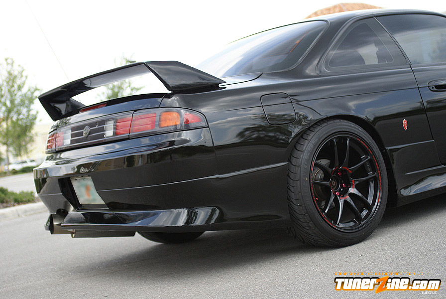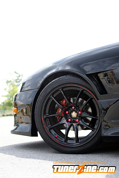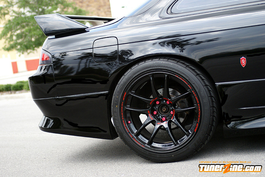 Flying under the radar and producing plenty of power were the main traits of a Black Bomber fighter. This S14 that we were able to capture carries those same traits, having plenty of power with stylish exterior modifications that doesn’t exactly make it scream to the general, unsuspecting public. The exterior has been decked out with an Origin Lab Stylish full body kit including Origin Lab’s 20mm front fenders. The rear fenders were rolled to make way for an aggressive set of 18×9.5 +12 offset Work Emotion CR Kai wheels in a gloss black finish. The wheels are accented with Work red lug nuts, valve stems and stickers. The rest of the exterior has been finished off with JDM Silvia Kouki’s goods: wing, grill and turn signal lamps.