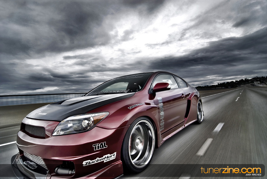 From the factory, the 2005 Scion tC was a great car. Priced well under $20,000 with plenty of options, the tC was the new “starter” car for anyone looking to get into the customization world. Its coupe design and stylish lines made for an attractive car off the lot, but the fact that Scion promoted customization within their brand name made it even better for the world. The aftermarket embraced the tC with open arms and before we could blink an eye tons of manufacturers were pushing parts out for the car. From body kits to wheel setups to suspension and ultimately hardcore engine performance, the tC has probably received the most aftermarket support for any model in recent years.
