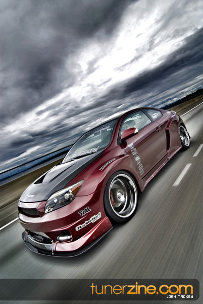In an industry strongly dominated by a male presence, females are often mocked at when they get involved. Though it’s changed in the last few years, there are many that still raise an eyebrow when a project is claimed to be female own and built. With the introductions of the various Scion models to our customization world, it was only a matter of time before its stylish lines would attract the female tuners, and in masses. The Scion models have become notorious for females to purchase, build and customize to become their own. This widebody tC is a great example of that, as owner Cynce Tester teamed up with Teske Design to build one of the finest tC’s our industry has ever seen. It’s already graced the cover of Performance Auto and Sound Magazine and collected its fair share of awards across the country. We got to take a closer look at this beautiful piece of artwork for Tunerzine.com.
