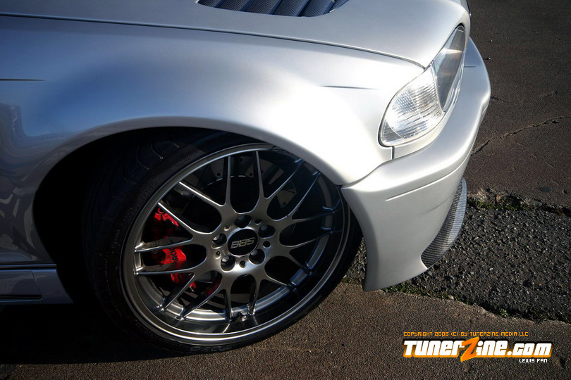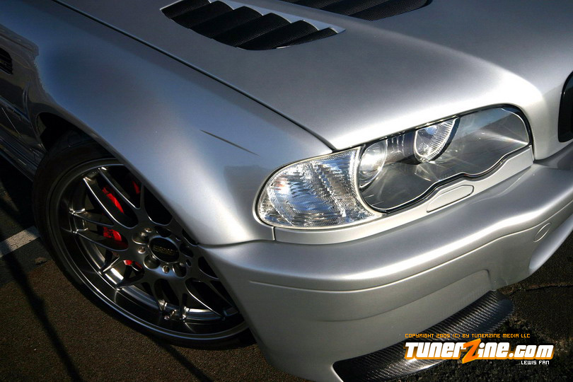 The exterior is the area where the theme of simplicity begins. It sports a CSL front bumper, carbon fiber sides, mirrors, and grills. The rear features an ACS diffuser with an ACS rear spoiler. A Vorsteiner GTR hood adds an aggressive look that helps accentuate the CSL front bumper. And that’s about it for the exterior body modifications. So how does this car roll?