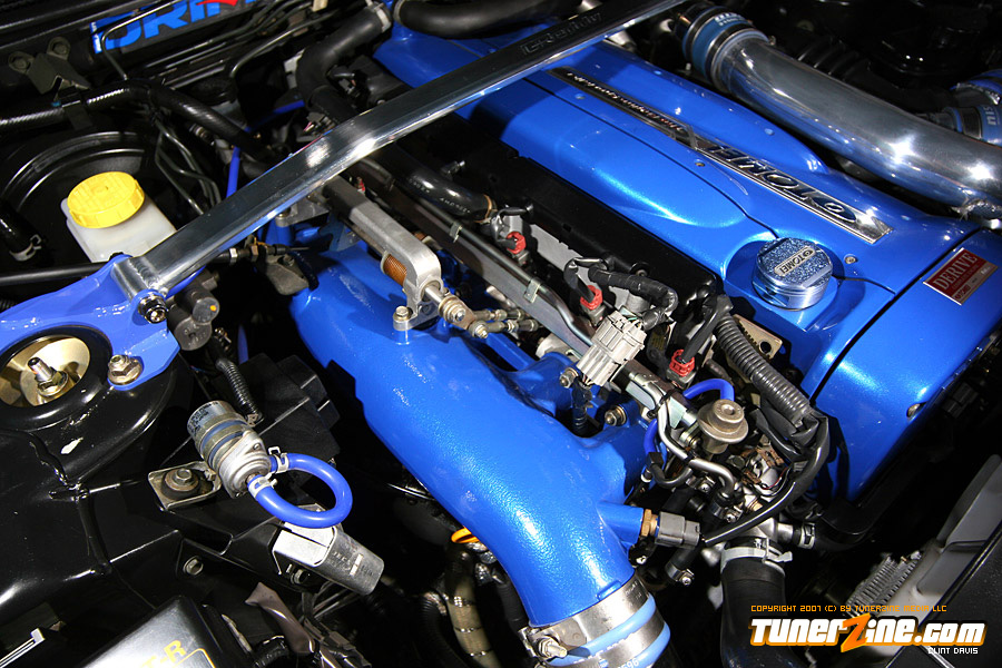 The VspecII Nur is a gem in stock trim, but like all Skyline owners, they lust for even more power and speed. One glimpse under the hood and you will soon realize this is no ordinary RB26DETT. Shoved under the huge hood is a fully built balanced and blueprinted Tomei motor featuring forged pistons, rods, camshafts, springs, and many many many other tarmac shredding essentials. An A’PEXi Power FC standalone ECU keeps the combustion flowing in beautiful rhythm like it should, and a Blitz boost controller reluctantly reduces the amount of force-fed air going into the motor.