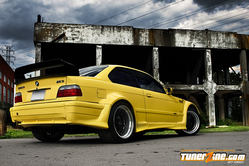 In the import world, most people realize that there is a large amount of work needed to separate yourself from the crowd. No one is more aware of this, then the owner of this 1999 E36 M3. As a striving actor trying to make it big, Sean Heumann, understands that boldness, beauty, and brawn are characteristics that get one noticed and he implemented these qualities into his car. One trait, acting schools won’t teach you, however, is that bright yellow paint not only gets you noticed, but also has the unique ability to break necks of passing drivers.