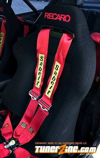 Speeds on the track can reach the triple digits and safety starts to become a primary concern. That is why this Bimmer’s interior is decked out with a plethora of safety precautions. The chassis is stiffened and made stronger by a Mike McMahon Custom Roll Cage. Even in a worst-case scenario crash, the roof should remain intact, protecting the goods on the inside. By goods, I of course mean, the Recaro SRD Racing seats and Sabelt Six Point Racing harnesses. These race buckets prevent Sean from sliding all over the place as he is hittin’ apexes at local circuits. With power, grace, and nimbleness it is easy to see why BMW’s serve as a great platform for racecars. So if you are on the road and see a glowing yellow M3 as wide as the street, take notice. It’s probably this M3 on its way to set a hot lap at your local track.