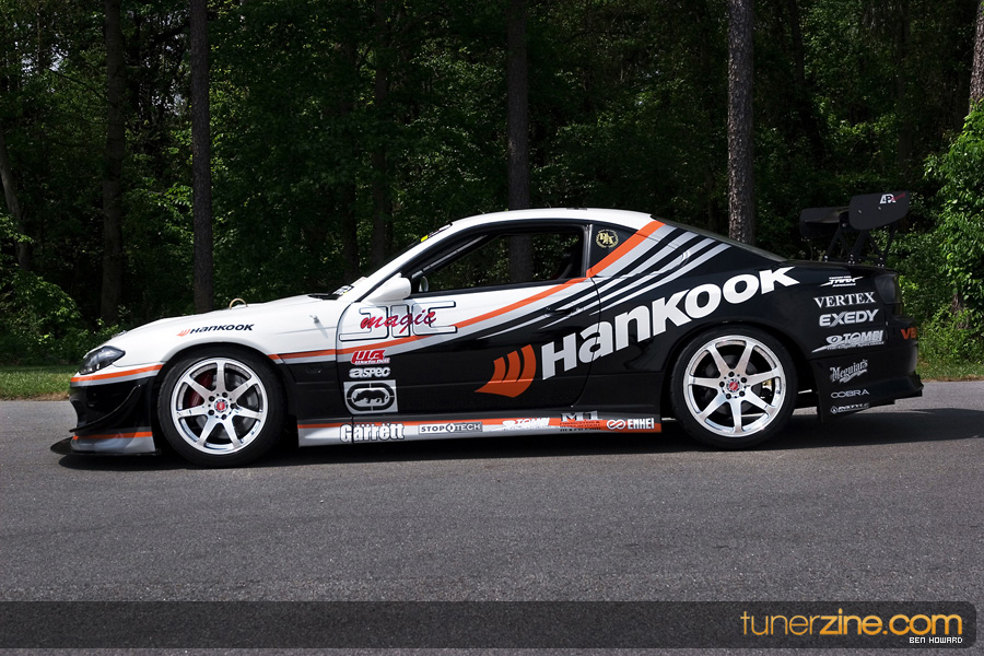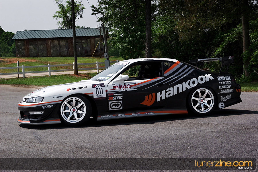 Kenji was awarded with the 3rd place cup and the traditional champagne shower as JIC USA and Hankook Tires celebrated this well deserved victory. JIC USA could have not pulled off this victory without the following support from our sponsors: Hankook Tires USA (http://www.hankooktireusa.com), Vertex T&E, Tomei Powered, Works Bell, Exedy Clutches, Stoptech Brakes, Meguiar’s and to all the fans and teams that cheered us to victory!” From Summit Point, Redline Time Attack: “With temperatures hovering around the 80’s, making it a bit bearable for exciting racing, JIC USA / Hankook Tires made the long journey from Southern California to West Virginia for the Redline Time Attack at Summit Point Raceway, West Virginia. Upon arrival, the Hankook JIC Nissan Silvia S15 had its hands full with a fleet of Evolutions and STi’s to battle against. But as usual, it is hard for the Silvia to back off from some hefty competition. Slapping on the sticky Hankook Ventus Z214 R-compound DOT tires and piloted by Tyler McQuarrie, the S15 made its practice runs on Saturday. Light tweaking and tuning of the suspension was key to the Hankook Tire / JIC Nissan Silvia S15 fast lap times. Throughout the day, Mitsubishi Evolutions were giving the Hankook Tire / JIC Nissan Silvia S15 a run for its money as many came within few seconds of the already fast times of the Silvia. During one of the practice sessions, the limited slip differential and the left axle went out due to the immense grip that the vehicle was experiencing. Going back to the paddock, the team rushed to add a new differential and left axle. The team also discovered that the axles also needed to be replaced. With enough time for another session, the Nissan Silvia was able to make few more laps and called it a day.