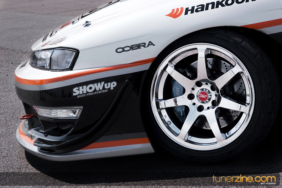 Both cars sport JIC Magic’s JIC J-Force 07 wheels in a ‘blingy’ polished finish. They run a staggered setup with 17’s in the front and 18’s in the rear. In case you haven’t recognized, but JIC Magic also competes in Hankook rubber. Their Ventus Z214 tires is their weapon of choice. The S14 is equipped with a Rotora big brake upgrade in a light blue shade while the S15 sports Stoptech pieces in a red finish.