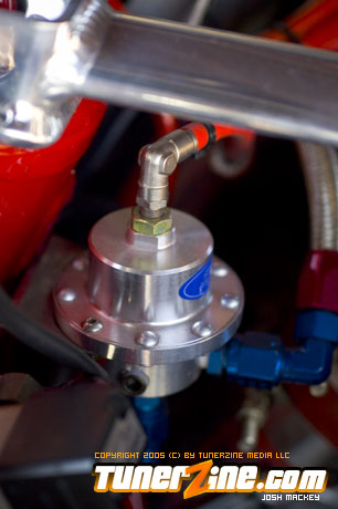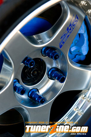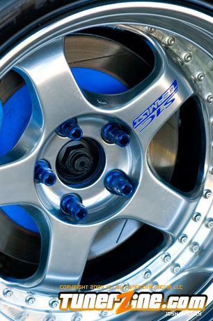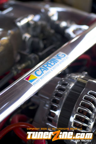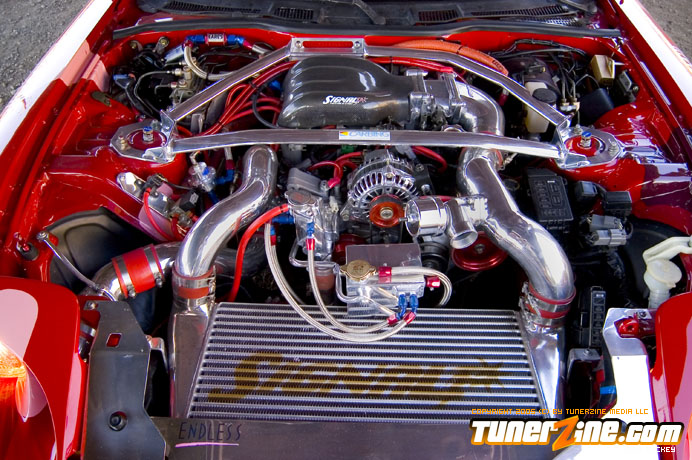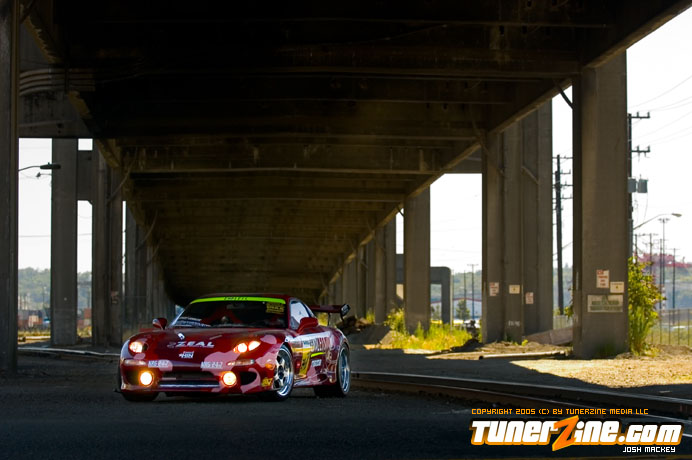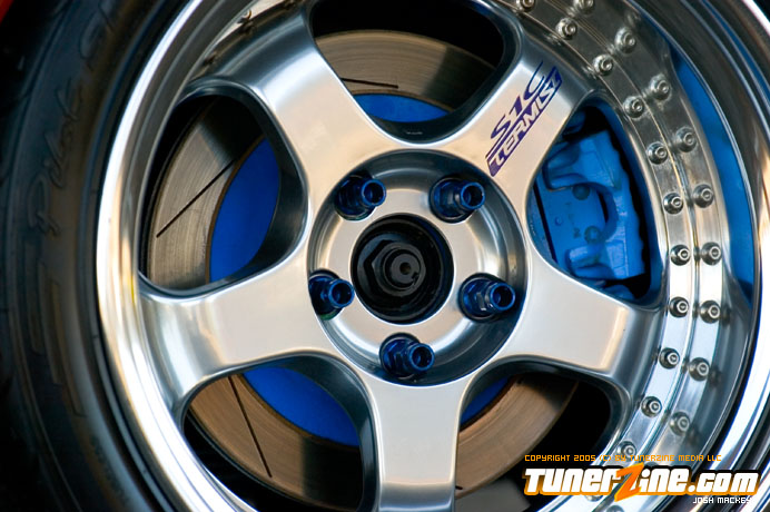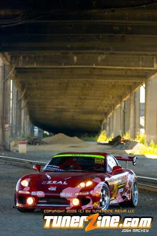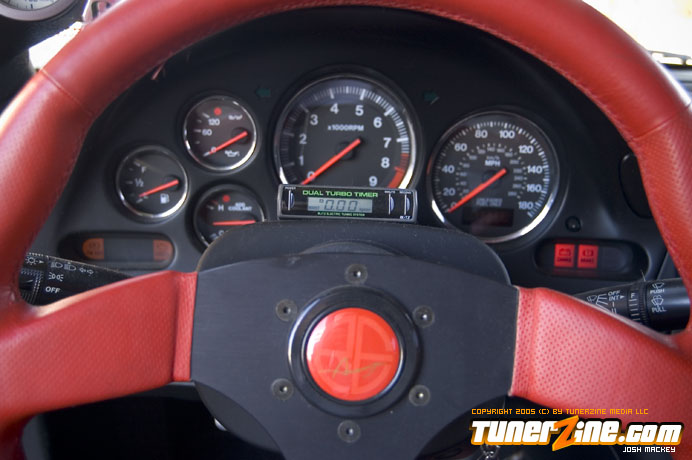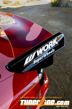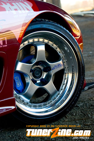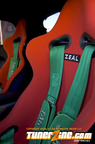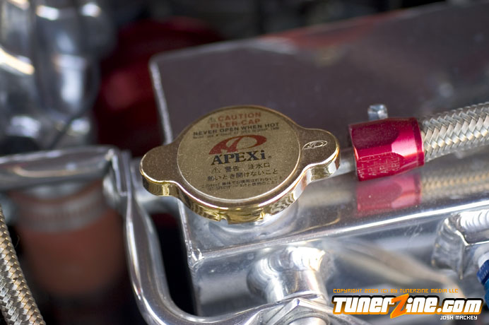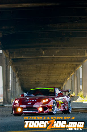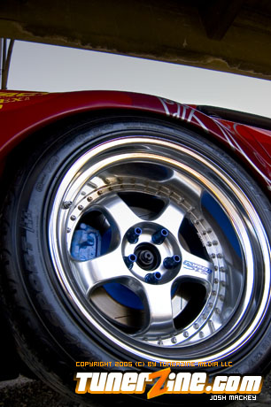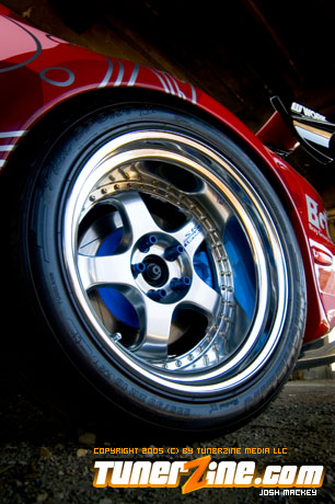 Inspired by Maharashi / Mazda / Bathing Ape, the paint scheme on this RX-7 arguably makes the car what it is. Run Racing converts the headlights and bolts on a new hood to match the styling of the APEXi front bumper. Pettit Racing flares out the rear fenders that were molded on while RE Amemiya side skirts and rear skirts accent the rear. Carbon fiber goods throughout the car as well as the Endless USA graphics designed by Kent Chen are the finishing touches on the exterior.