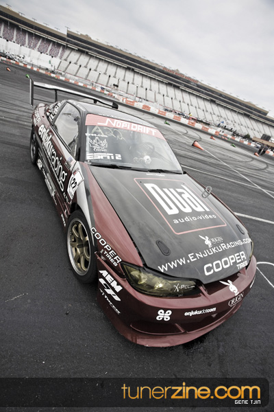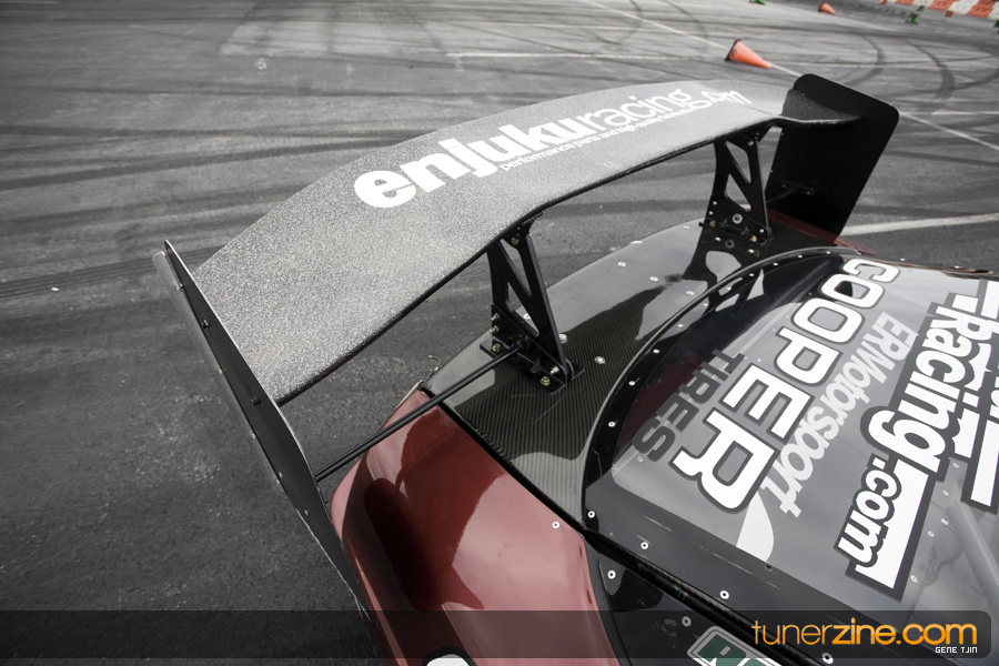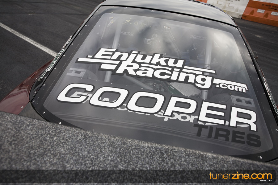 Now many will agree that arguably the most important part of any drift vehicle is the suspension setup. With several years of drifting experience and trying multiple different suspension setups, Enjuku Racing knew what it would take to have a championship caliber car and the suspension components that would have to be pushed to the limits to achieve that goal. Enjuku Racing didn’t cut any corners this time around, equipping their drift car with a set of Stance GR+ coilovers, TEIN tie rods, Peak Performance’s Suspension Arms package and a Nismo Power Brace. Braking duties have been enhanced with Ichiba’s 5 lug hub it, Z32 brakes and Agency Power brake lines. The car drifted in style with A-Tech Weapon and Competition wheels and none other than Cooper Tires’ rubber.