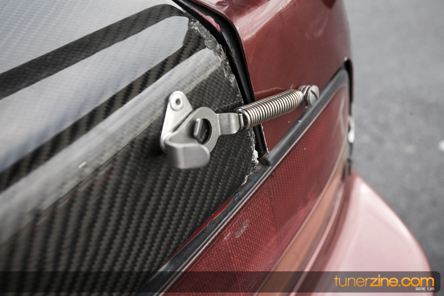 On the exterior, Harrison and Enjuku Racing kept the S13.5 tradition alive but converted the final look to a whole new monster. You see, when the car was originally built it sported a GP Sports body kit which was clean and stylish, but wasn’t optimized for what Enjuku Racing wanted to do. So off that went and on went a complete Origin body kit complete with Origin aS13.5 conversion fenders and Origin Type II rear 50mm fenders. Seibon lightens up the load with their carbon fiber S15 hood. In the rear is a stylish set of 180sx Nismo tail lights and a carbon fiber hatch.