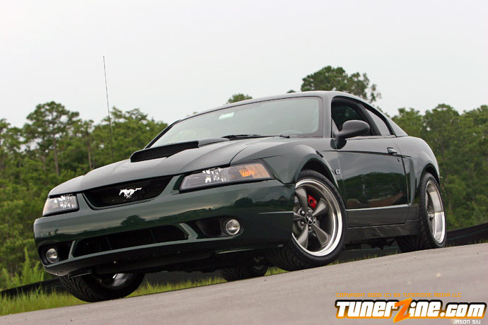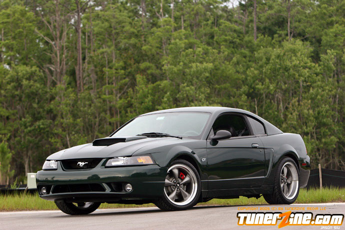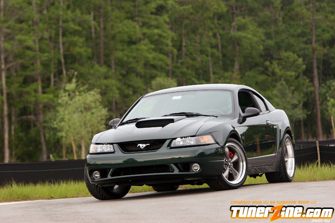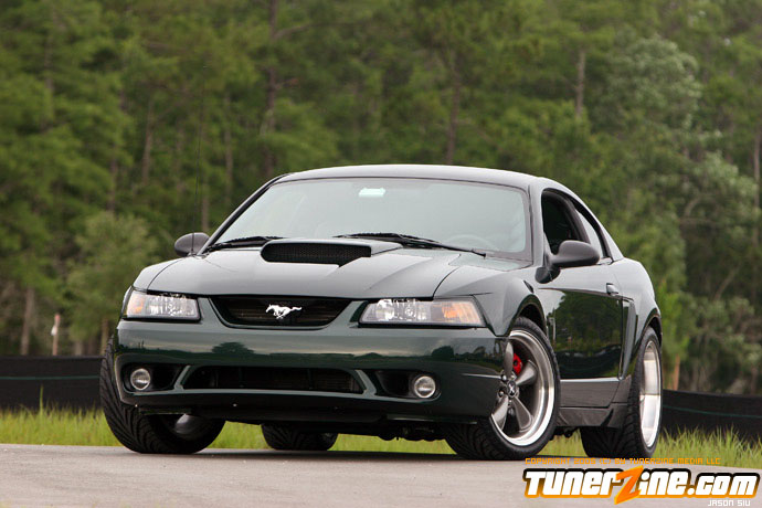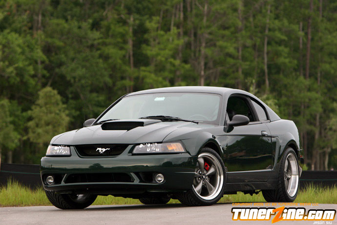 Before 2001, Ford only offered the Mustang Cobra model above the GT, which sold for 20-30% higher premium. Ford realized there was a demand for a Mustang that bridged the gap of the GT and Cobra models in both performance and price, so in 2001, the Mustang Bullitt was born. The name Bullitt comes from the 1968 movie Bullitt starring Steve McQueen. The movie features a car chase scene involving a 1968 Mustang fastback that is still considered impressive for today’s standards. This famous car chase gave Ford the idea of the first “special edition” Mustang. Ford introduced the Bullitt in three colors, the most popular being Dark Highland Green, a near match to the 1968 Mustang from the movie Bullitt. In addition to the unique color, Ford went even further for the unique look by leaving the trunk lid wingless, removing the front fog lights, adding unique rocker panels and C-scoops, 60’s style text format of the gauge cluster, 60’s style stitching on the seats, and aluminum interior accents. To round off the package, they installed a high flow aluminum intake manifold, twin bore throttle body from the Cobra, higher flow mufflers, underdrive alternator and water pump pulleys, subframe connectors, lowering springs with a higher rate, unique sway bars, Tokico shocks, and the Cobra braking system with unique powder coated calipers. Although the changes were subtle, they gave the Bullitt a unique look and performance edge over the GT model. By the end of 2001, Ford had built 5582 Bullitts. Even though the model was popular, they did not continue the Bullitt after 2001. In 2003 Ford released the Mach 1 mustang, which followed the same idea as the Bullitt, just a slightly different combination.